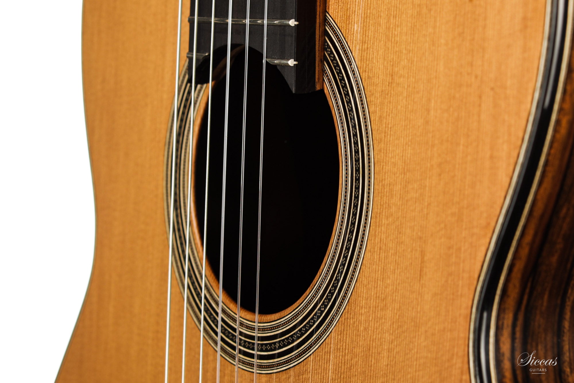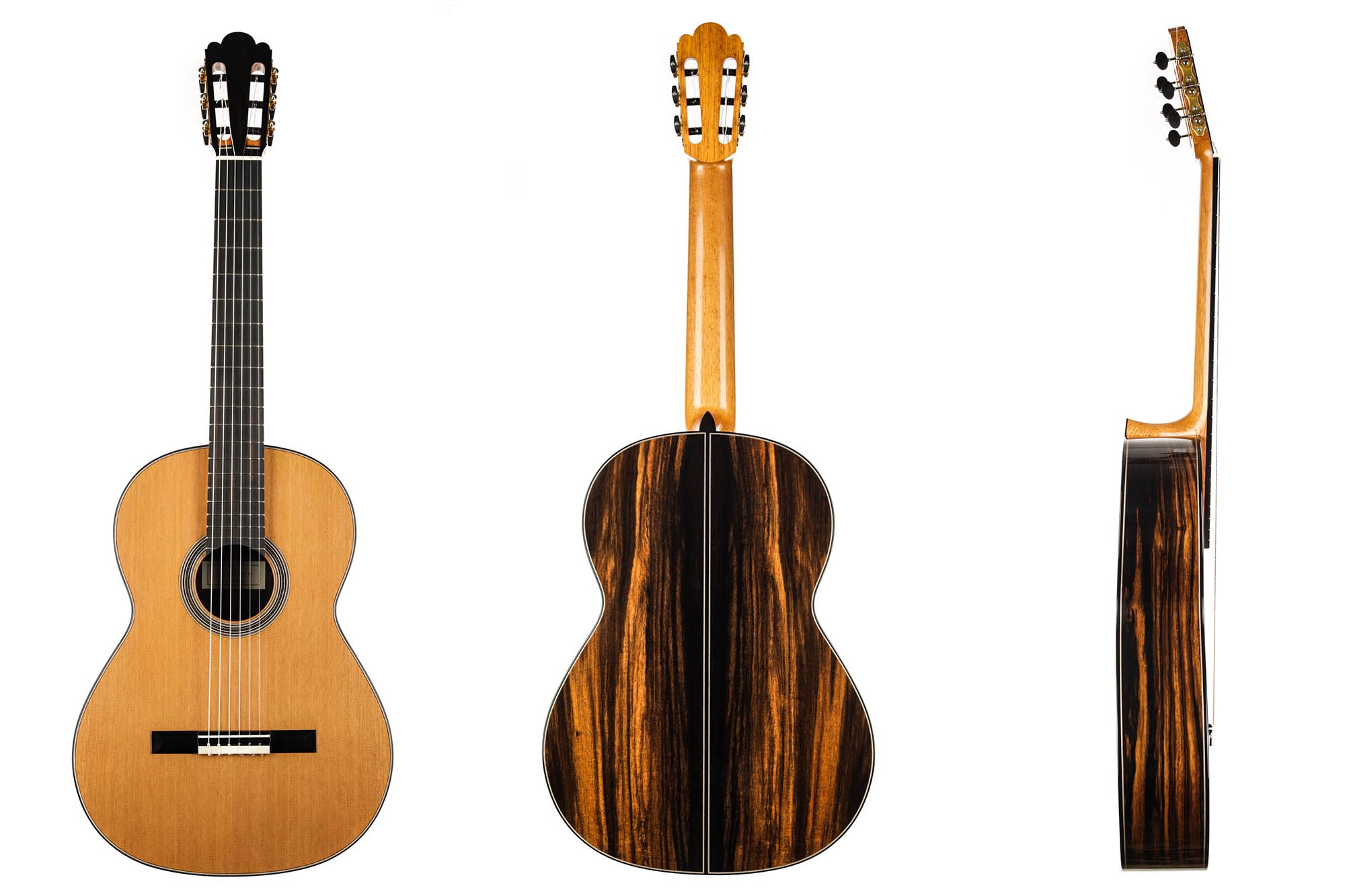 This instrument is surprisingly light considering the wood choice of ebony for the back and sides. The basses are full and round without becoming too heavy or dense, paired with lyrical trebles that have an airy quality to them, makes the guitar a real joy to play. When inspecting the nooks and crannies of the guitar, it is put together with an experts eyes and hands. A clean and charming design is what meets the eye. Easy to play with a superb access to the upper registers, furthermore, just look at that gorgeous back and sides. One could just drown in the well thought of aesthetics of the instrument. We are sure that this instrument will suit anyone who looks for a great sounding guitar within a very reasonable price range.