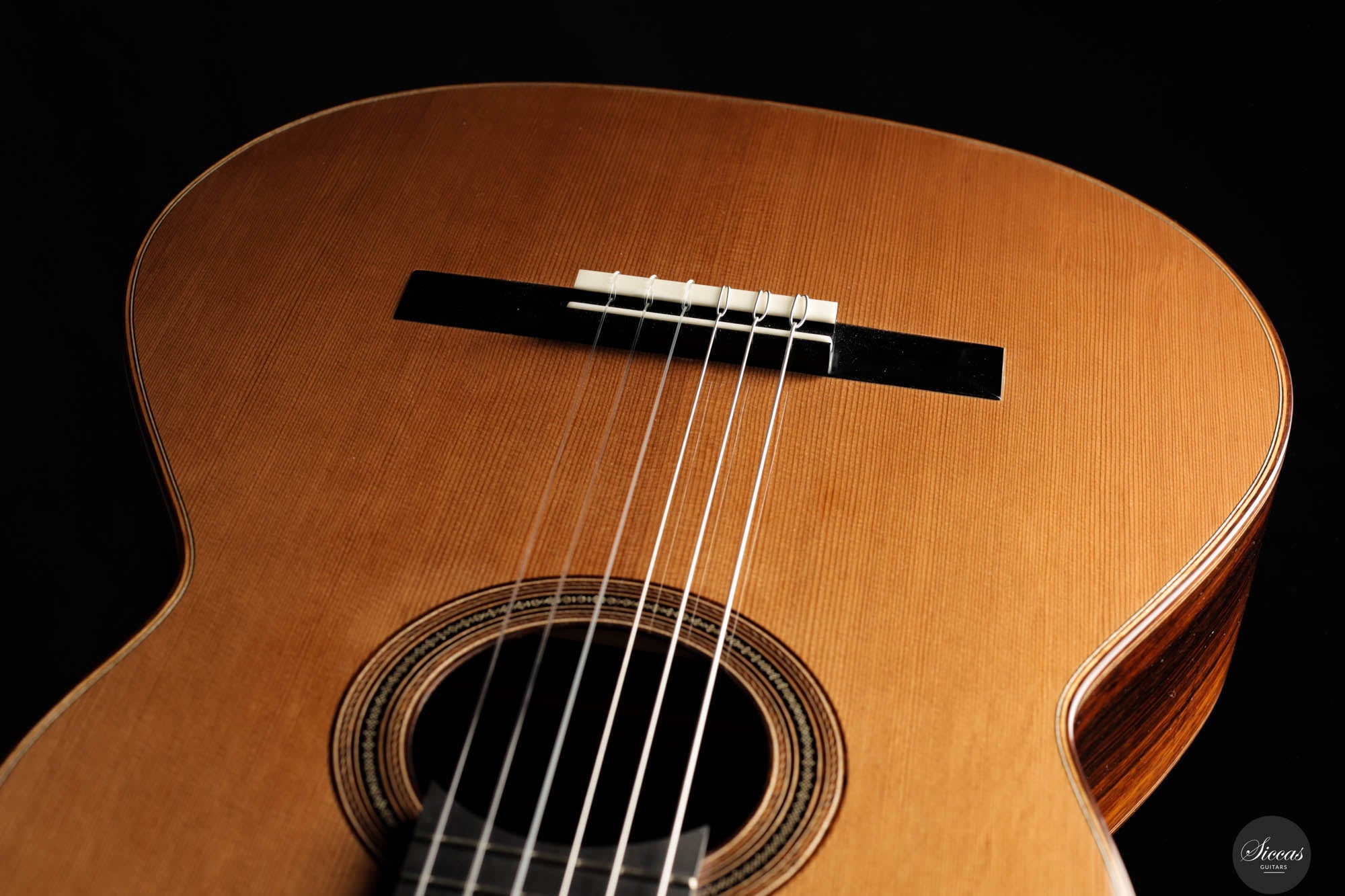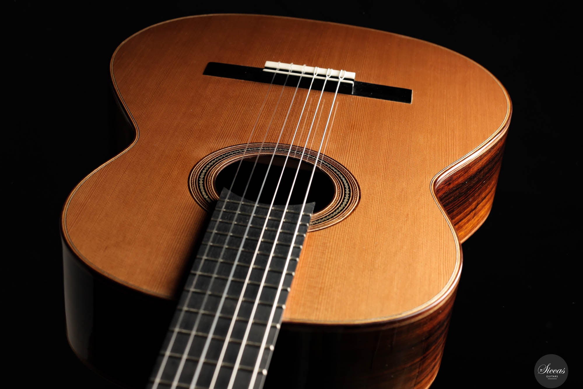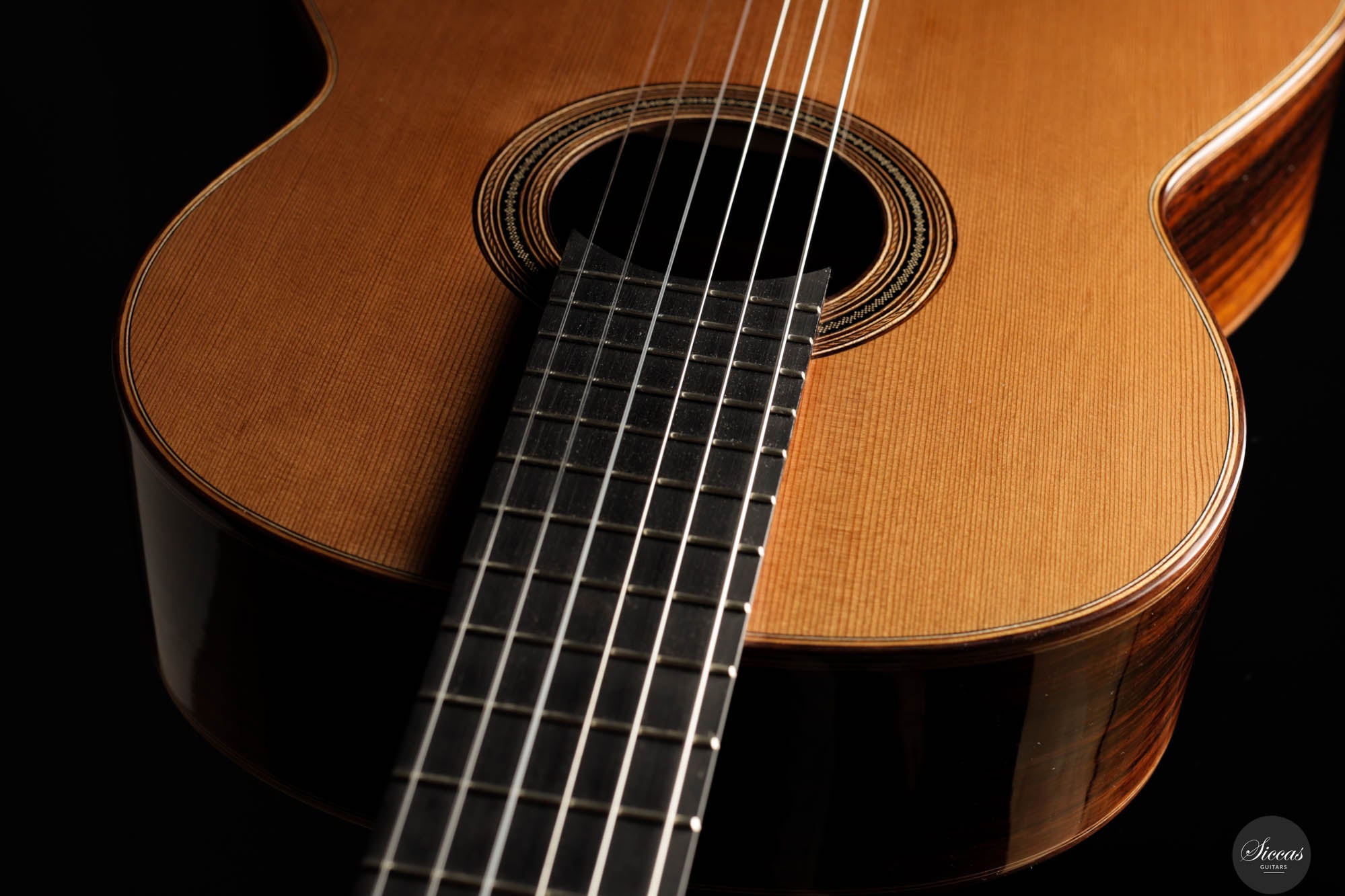Die klassische Gitarre mit ihren weichen Nylonsaiten und ihrem charakteristischen Timbre ist zum Symbol der Kammermusik, der spanischen Tradition und des Konzertrepertoires geworden. Ihre moderne Form prägte Antonio de Torres im 19. Jahrhundert, indem er den Standard für Korpus, Fächerbeleistung und die 65-Zentimeter-Mensur setzte, die bis heute verwendet werden. Instrumente dieser Kategorie eröffnen eine reiche Palette von den feinen romantischen Miniaturen Tárregas bis zu den majestätischen Konzerten Rodrigos. Hier finden Sie Gitarren, die historische Kontinuität bewahren und zugleich zu neuen Interpretationen anregen.