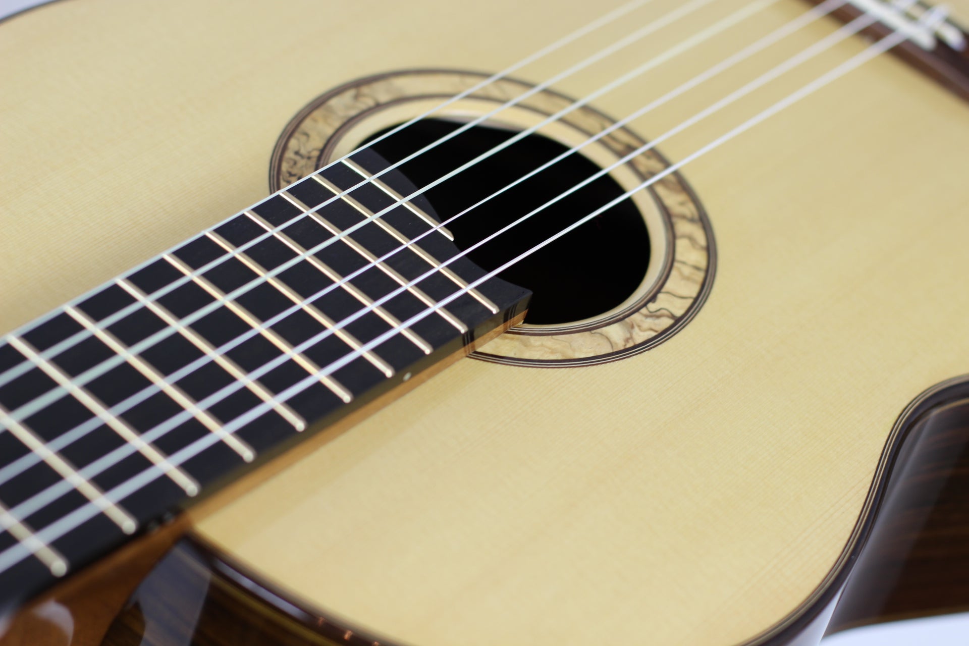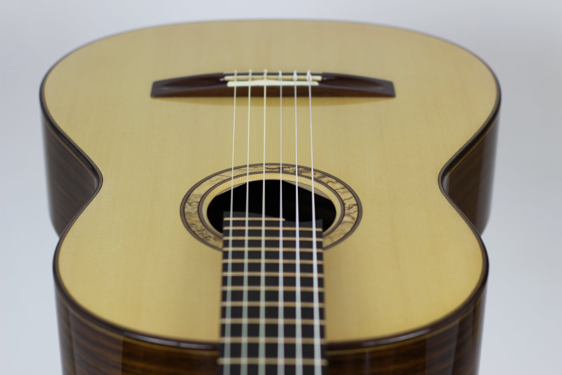 Die klassische Gitarre mit ihren weichen Nylonsaiten und ihrem charakteristischen Timbre ist zum Symbol der Kammermusik, der spanischen Tradition und des Konzertrepertoires geworden. Ihre moderne Form prägte Antonio de Torres im 19. Jahrhundert, indem er den Standard für Korpus, Fächerbeleistung und die 65-Zentimeter-Mensur setzte, die bis heute verwendet werden. Instrumente dieser Kategorie eröffnen eine reiche Palette von den feinen romantischen Miniaturen Tárregas bis zu den majestätischen Konzerten Rodrigos. Hier finden Sie Gitarren, die historische Kontinuität bewahren und zugleich zu neuen Interpretationen anregen.Alle Gitarren der Kollektion ansehen -