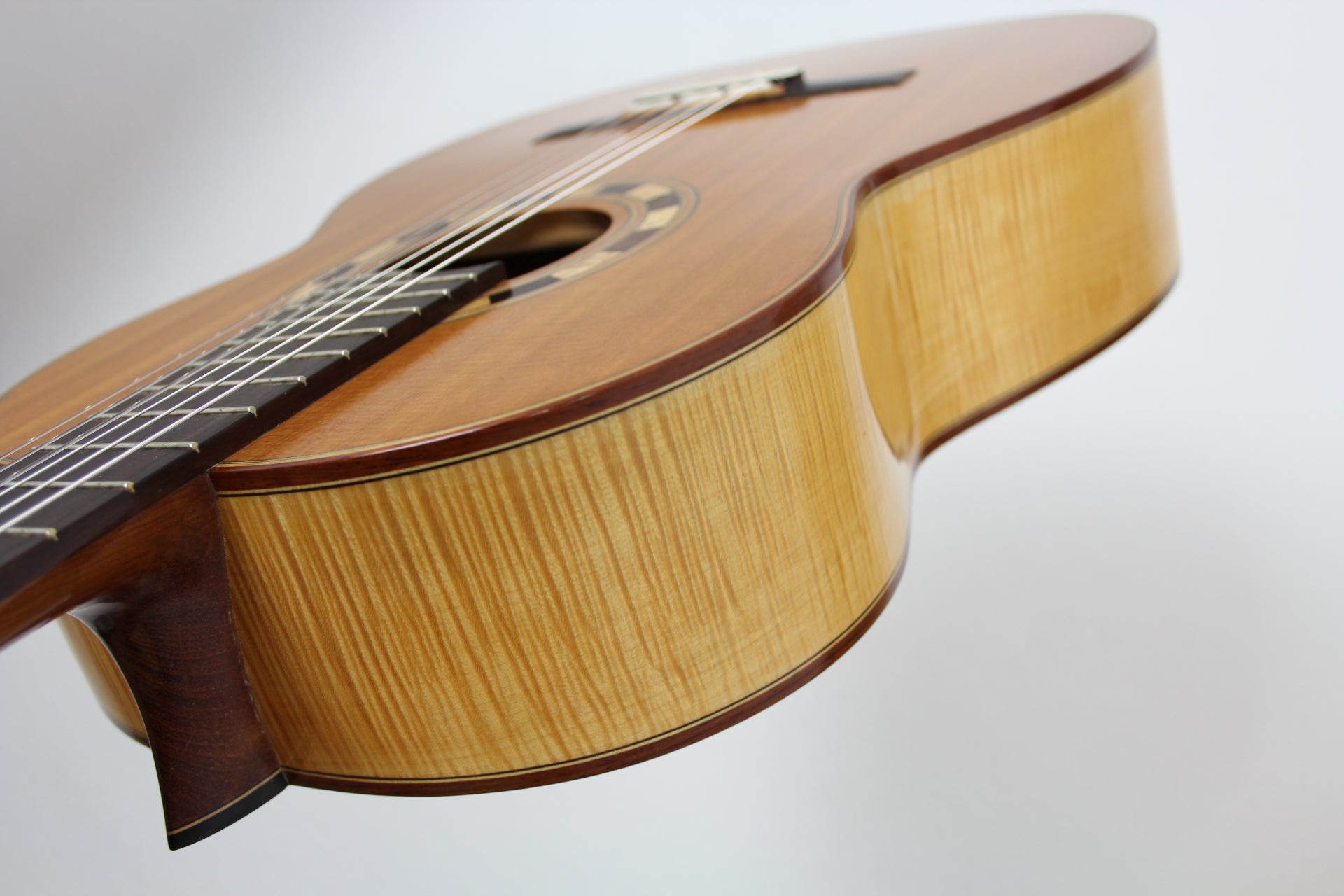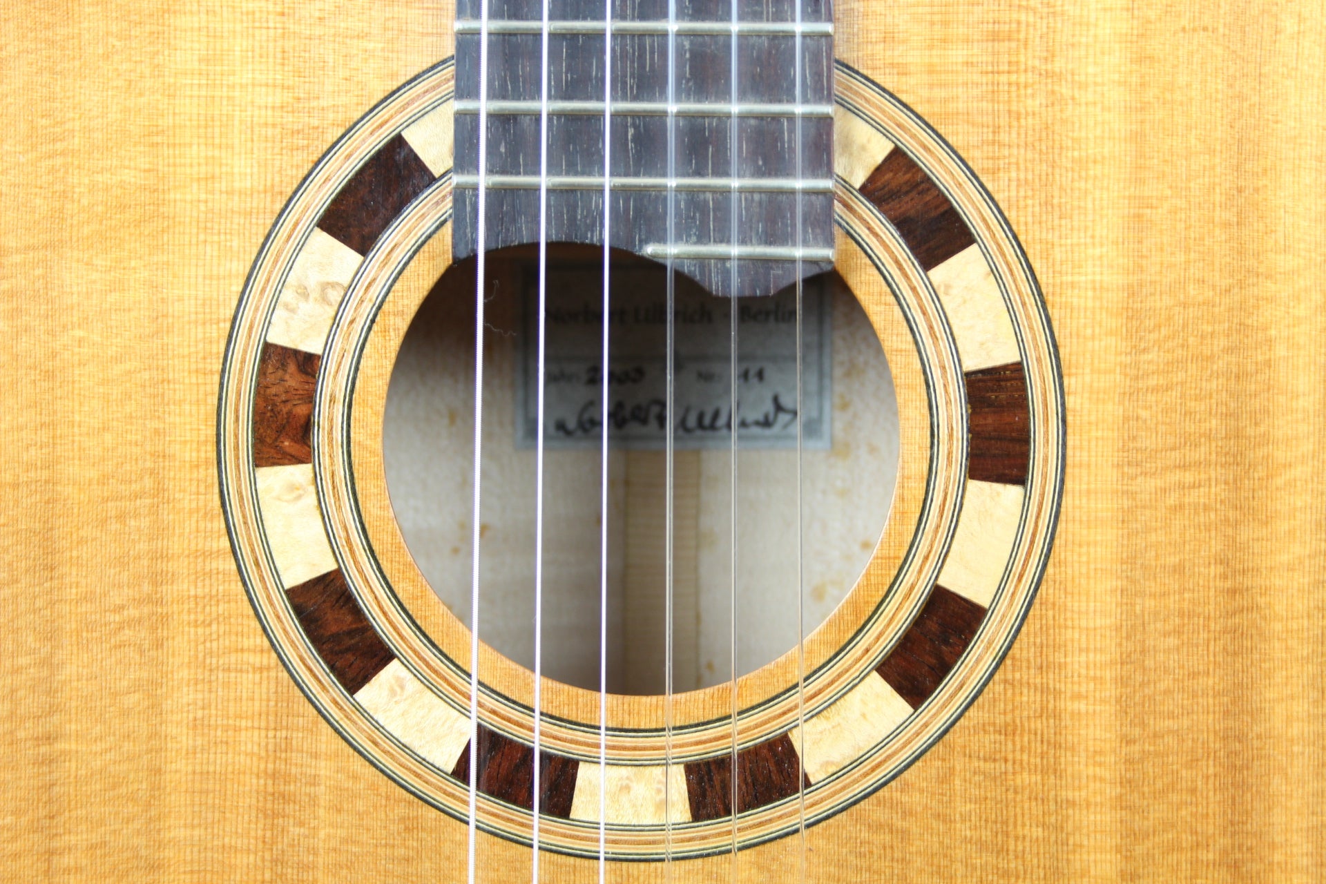 This Norbert Ulbrich guitar was made in 2003. It's in good condition (only some small signs). The top is made of spruce, back and sides are made of maple. The sound is warm and the trebles sound very silvery.