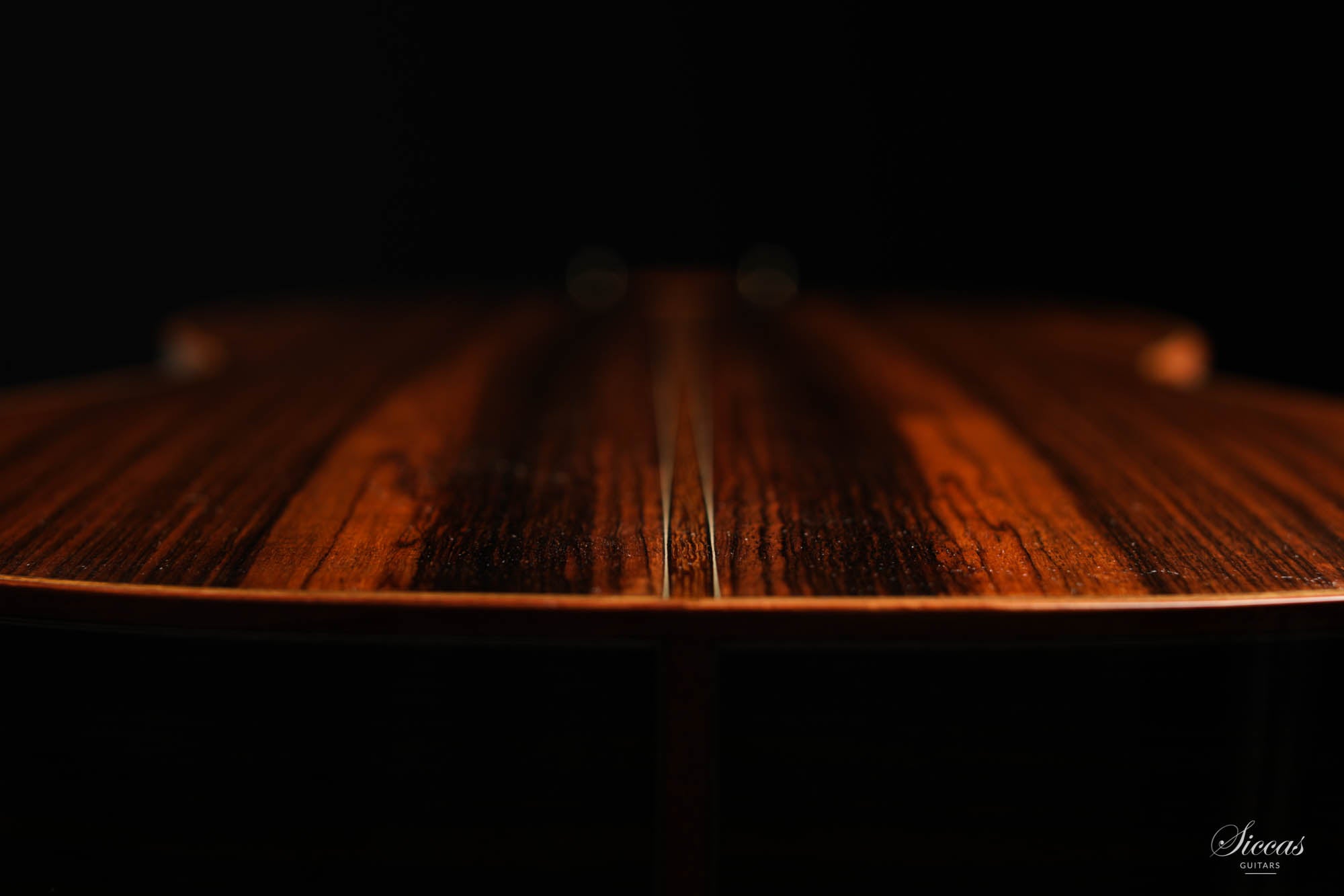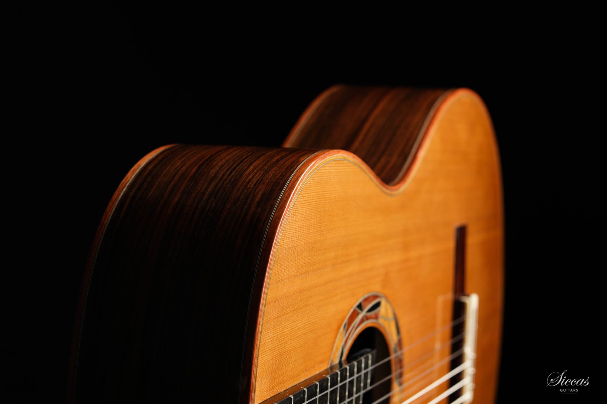 "Daniel Lesueur lehrte mich die Liebe zur Arbeit auf der Suche nach Perfektion. Nachdem er selbst bei Daniel Friedrich in die Lehre gegangen war, teilte er mir seine geheimsten Erkenntnisse und die, die er von seinem "Meister" gelernt hatte, mit. In die Idee und Herstellung einer klassischen Gitarre einzutauchen, erscheint mir wie eine mystische Initiierung. Höchste Konzentration ist erforderlich, um den langen Weg bis zu einem vielleicht "großen" Instrument zu beschreiten. Meine Vorstellung von einem grossartigen Instrument ist in erster Linie eine, die meinem Geschmack entspricht, mehr noch als eine vorübergehende Modeerscheinung. Während meiner gesamten Recherchen habe ich versucht, Antworten auf Probleme zu finden, die von meinen Mentoren nicht beantwortet werden konnten. Wie in allen künstlerischen Werken sind die Fragen nie endend, und darin liegt die Freude am Handwerk - jeder Tag bringt eine neue Entdeckung. Die Demut vor dem atmenden Material und die Vollkommenheit der Akustik, die mit diesen vielfältigen Hölzern verbunden ist, bildet den Kern des Gitarrenbauerhandwerks. Im Klang fühle ich mich ein wenig wie ein Bildhauer. »