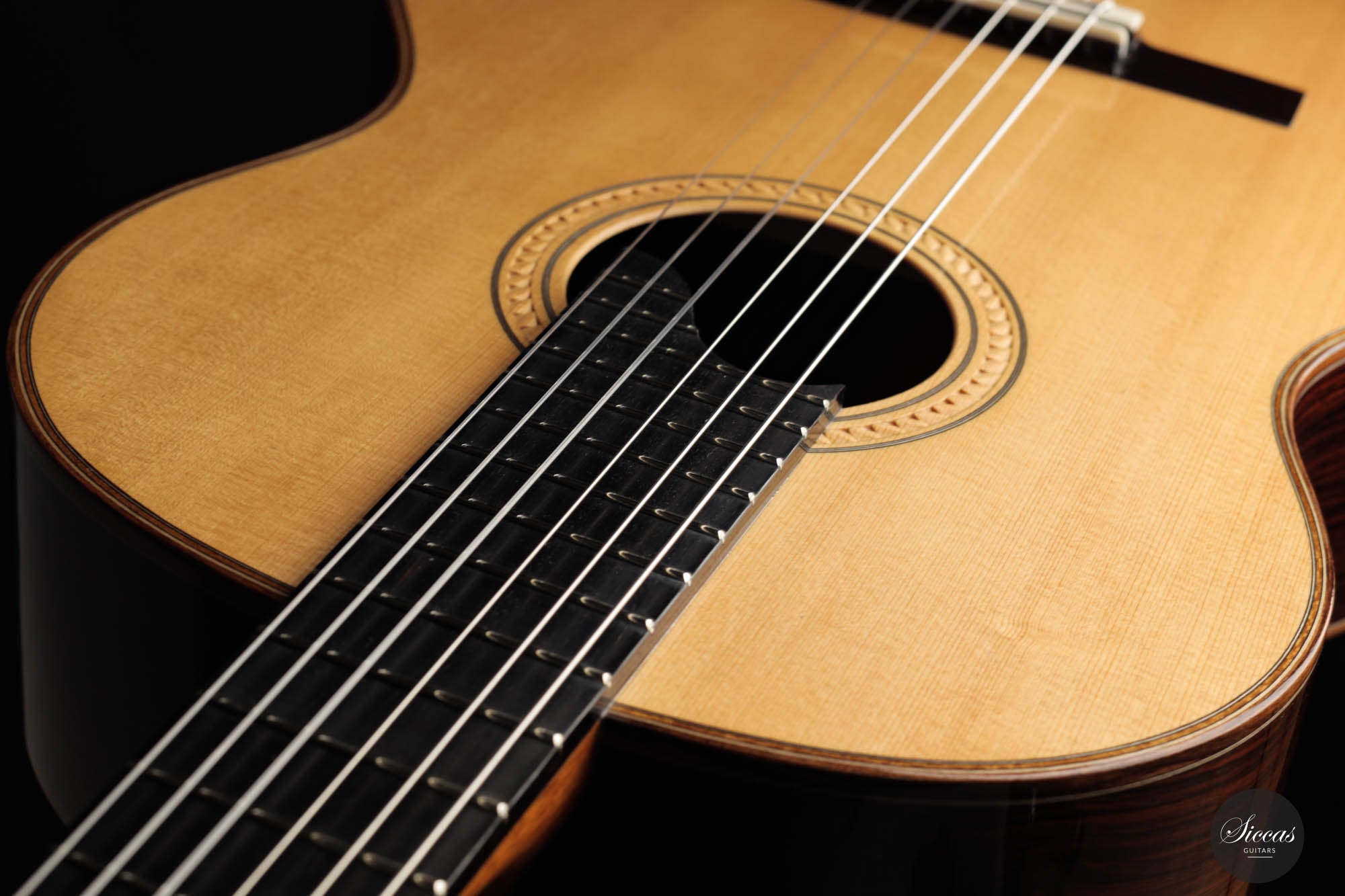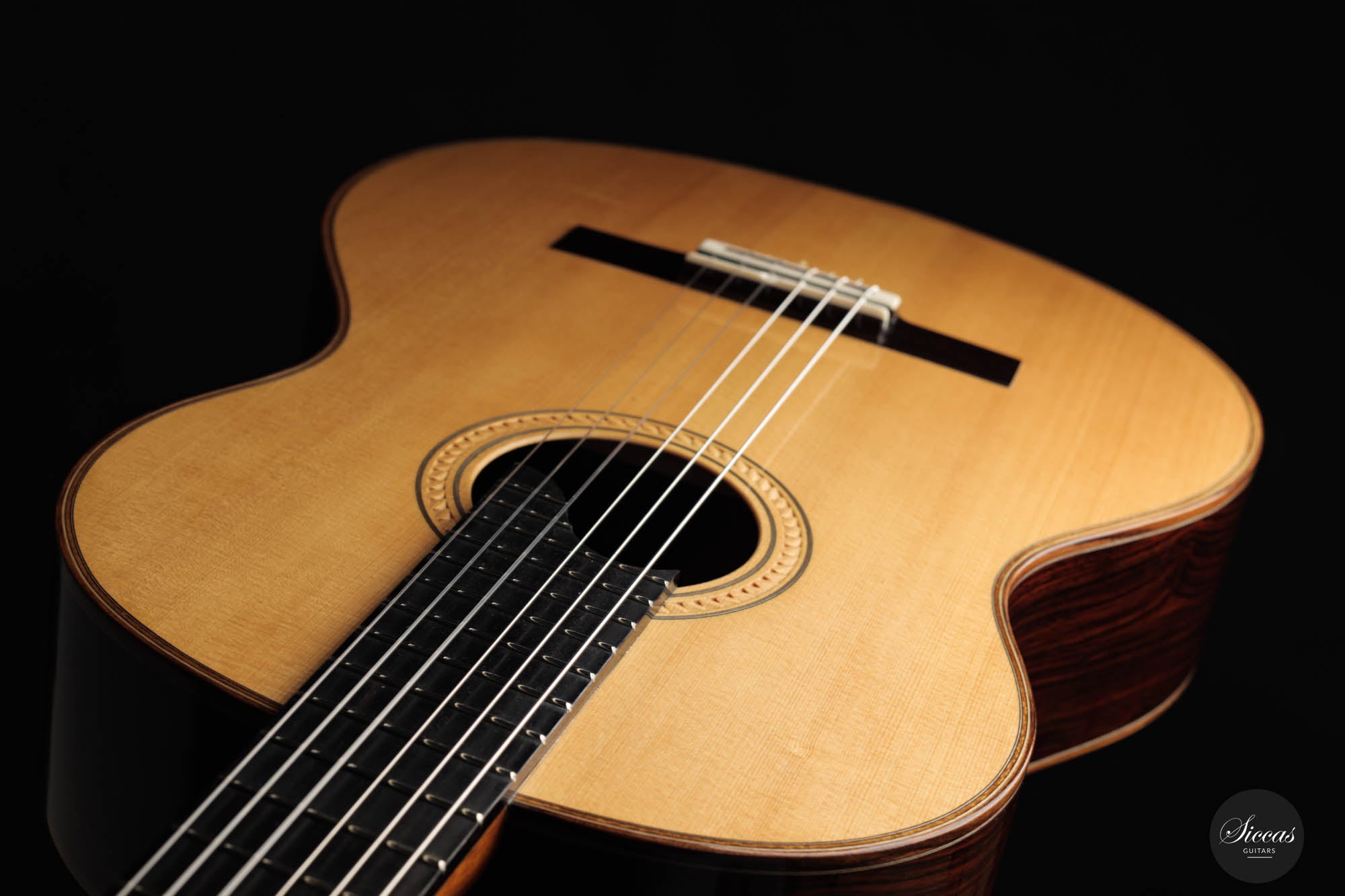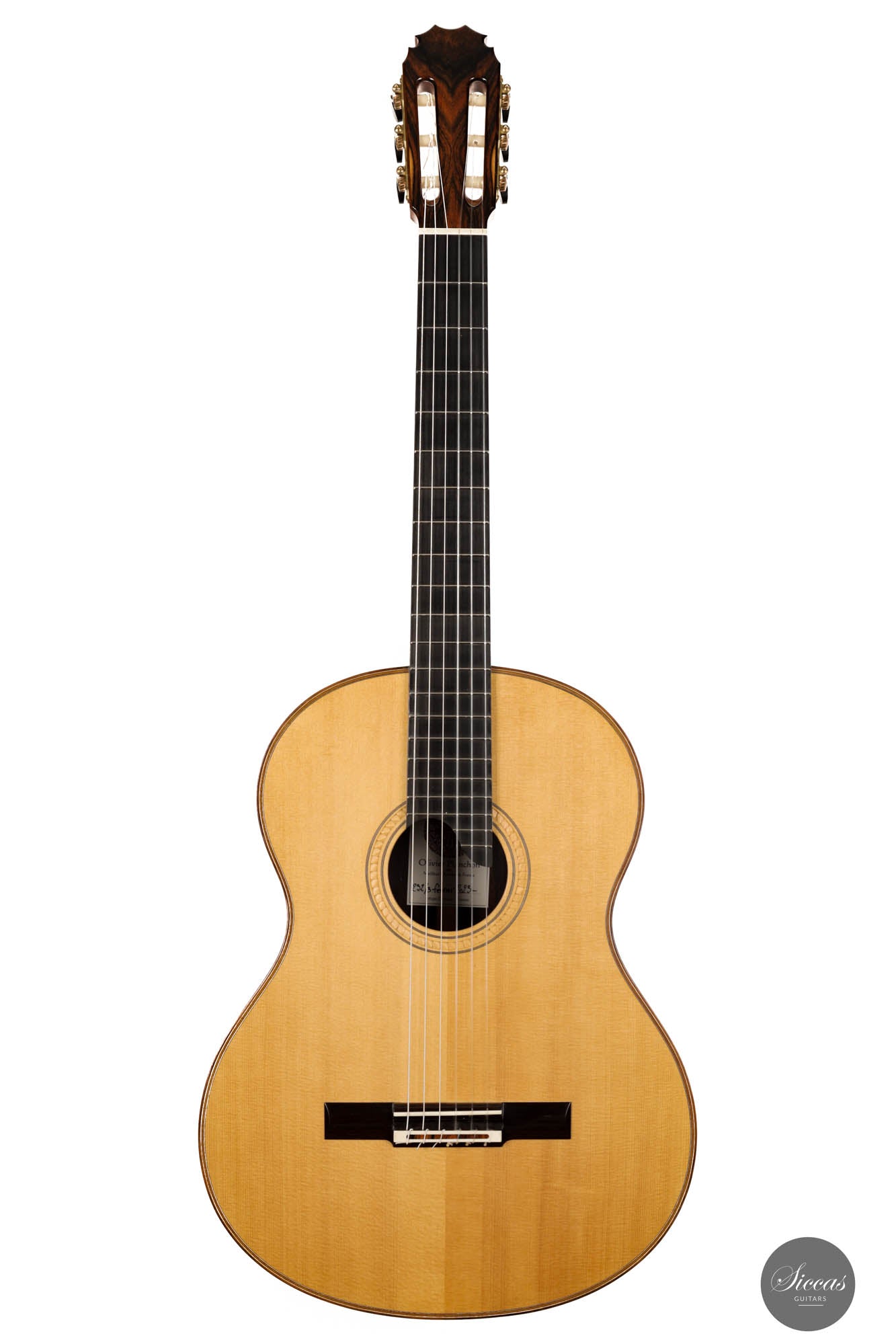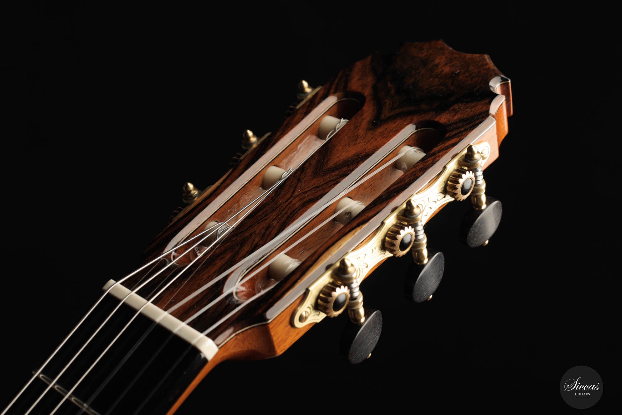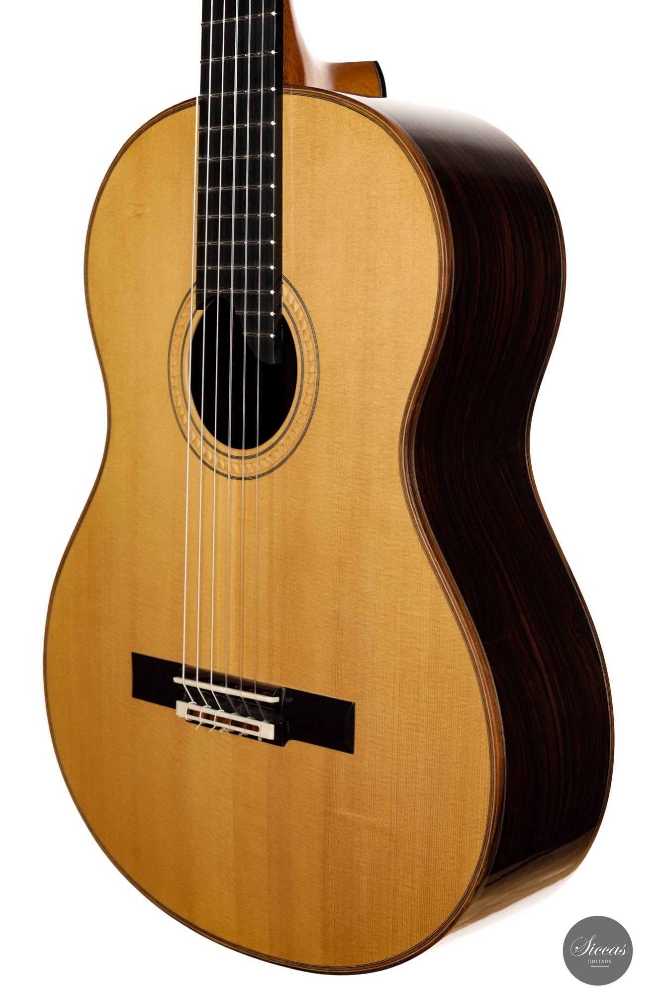 Olivier Planchon wurde 1961 geboren und entdeckte mit 13 Jahren die klassische Gitarre und den Flamenco. Nach seinem Studium an der École Supérieure d’Art Graphique de Paris arbeitete er als freiberuflicher künstlerischer Leiter im Bereich Kommunikation und Verlagswesen. 1999 widmete er sich fünf Jahre lang dem Entwurf und Bau von Konzertgitarren und begann eine informelle Ausbildung bei seinem Freund Daniel Lesueur, der ihn mit Daniel Freiderich bekannt machte. Von diesen beiden renommierten Gitarrenbauern ermutigt, richtete Olivier in der Nähe von Paris eine Werkstatt ein, in der er seine ersten Konzertgitarren baute. Im Jahr 2007 wurde er mit dem Titel „Meilleur Ouvrier de France“ ausgezeichnet. Seit 2008 arbeitet er im Hinterland von Nizza und hat dort mit seiner Partnerin, der Keramikbildhauerin Karine Benvenuti, eine große Werkstatt eingerichtet. Ein paar Worte zu seinem Hintergrund und seiner Philosophie:„Daniel Lesueur lehrte mich die Liebe zur Arbeit auf der Suche nach Perfektion. Da er selbst bei Daniel Friedrich in der Lehre war, teilte er seine Geheimnisse und die, die er von seinem „Meister“ gelernt hatte. In die Vorstellung und Herstellung einer klassischen Gitarre einzutauchen, hat etwas von einer mystischen Einweihung. Es erfordert höchste Konzentration, um den langen Weg bis zu einem vielleicht „großen“ Instrument zu gehen. Meine Vorstellung von einem großartigen Instrument entspricht in erster Linie meinem Geschmack, mehr noch als vorübergehende Modeerscheinungen. Während meiner gesamten Forschung habe ich versucht, Antworten auf Probleme zu finden, die meine Mentoren nicht erklären konnten. Wie bei allen künstlerischen Arbeiten sind die Fragen unendlich, und darin liegt die Freude an diesem Handwerk – jeder Tag bringt eine neue Entdeckung. Die Demut vor dem atmenden Material und der absoluten Akustik, die mit diesen vielfältigen Hölzern verbunden ist, ist der Kern des Geigenbauerhandwerks. Ich fühle mich ein wenig wie ein Bildhauer des Klangs“.