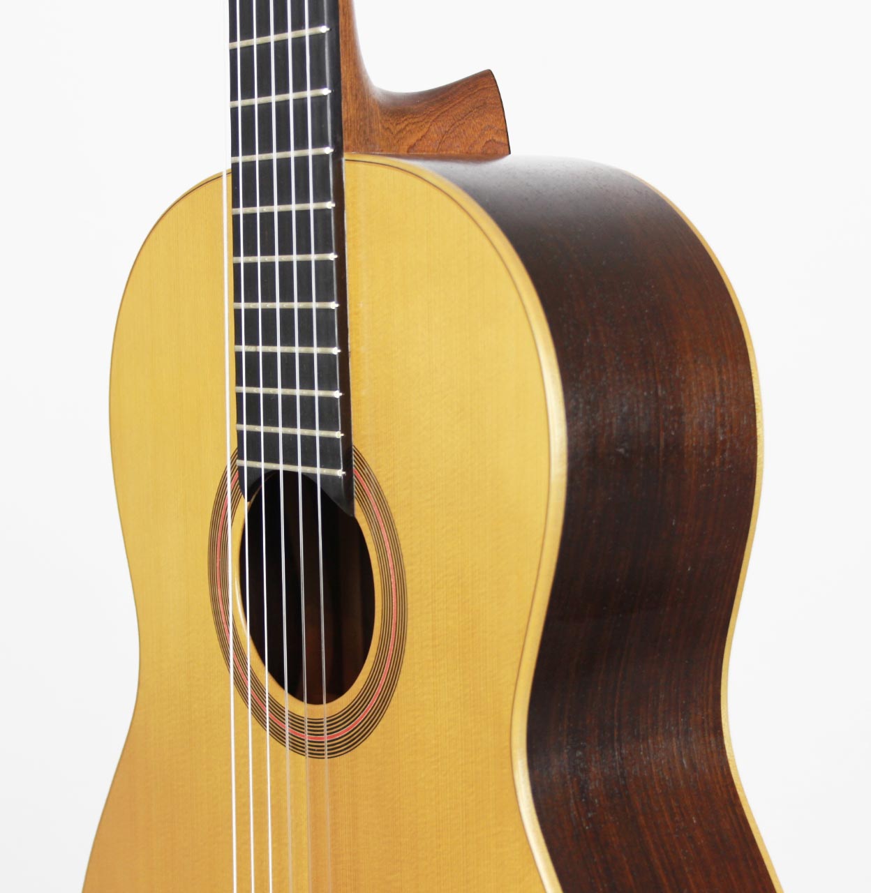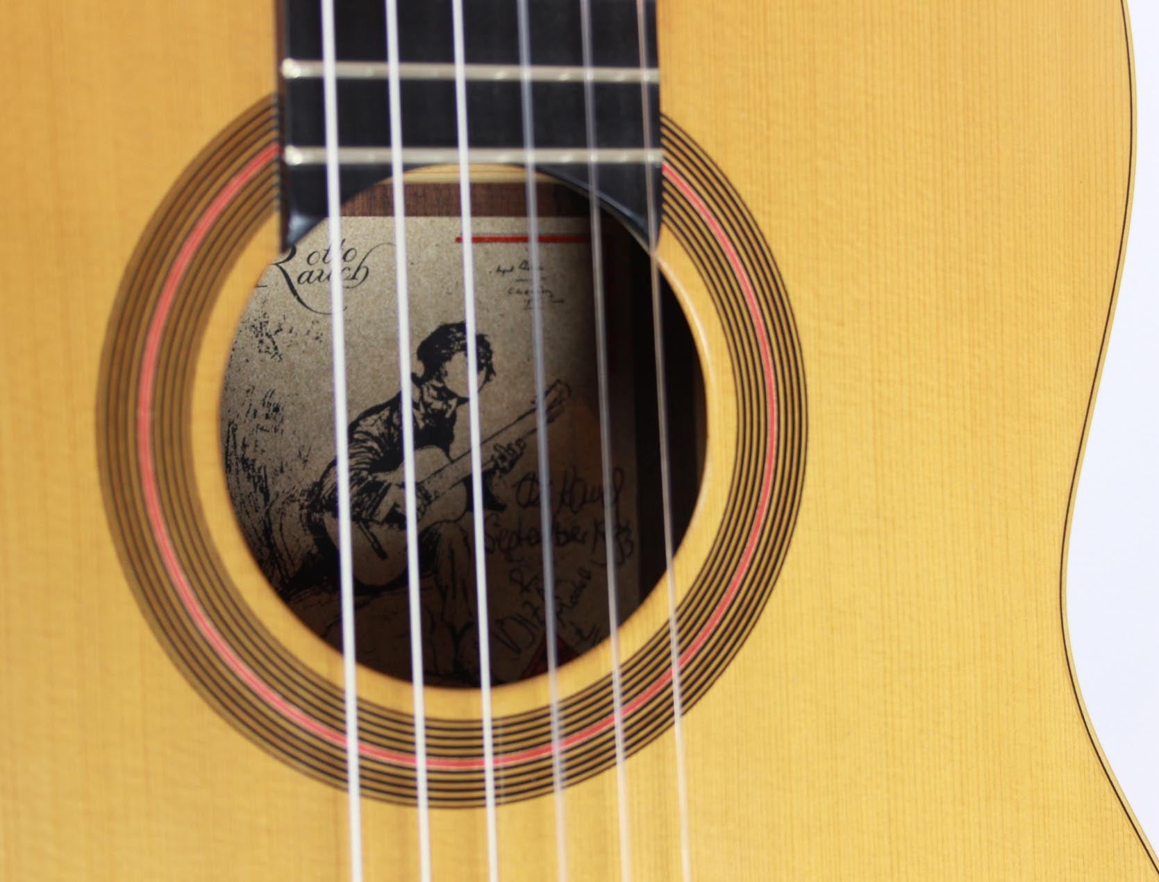 This guitar was build by Otto Rauch in 1993 based on a guitar made by Manuel Ramirez. The sides and the back are made of selected Indian rosewood and the top, made of spruce wood, is from the Dolomites. The guitar has a French-polish finish. Overall condition is very good. The tuning machines are by Fustero.