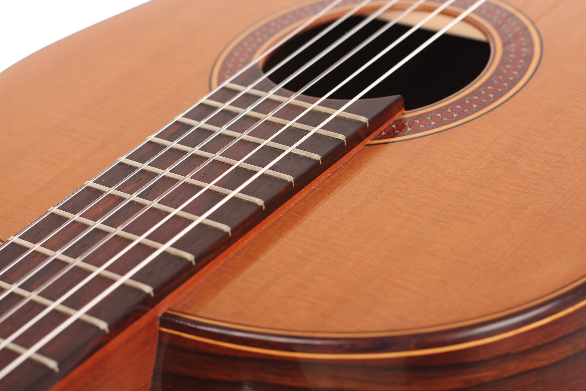 Die klassische Gitarre mit ihren weichen Nylonsaiten und ihrem charakteristischen Timbre ist zum Symbol der Kammermusik, der spanischen Tradition und des Konzertrepertoires geworden. Ihre moderne Form prägte Antonio de Torres im 19. Jahrhundert, indem er den Standard für Korpus, Fächerbeleistung und die 65-Zentimeter-Mensur setzte, die bis heute verwendet werden. Instrumente dieser Kategorie eröffnen eine reiche Palette von den feinen romantischen Miniaturen Tárregas bis zu den majestätischen Konzerten Rodrigos. Hier finden Sie Gitarren, die historische Kontinuität bewahren und zugleich zu neuen Interpretationen anregen.Alle Klassische Gitarren ansehen -