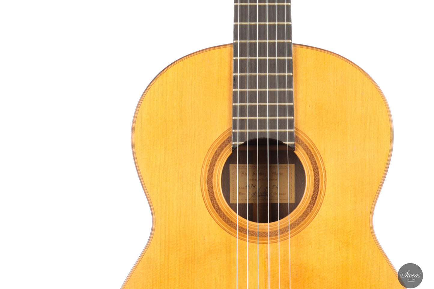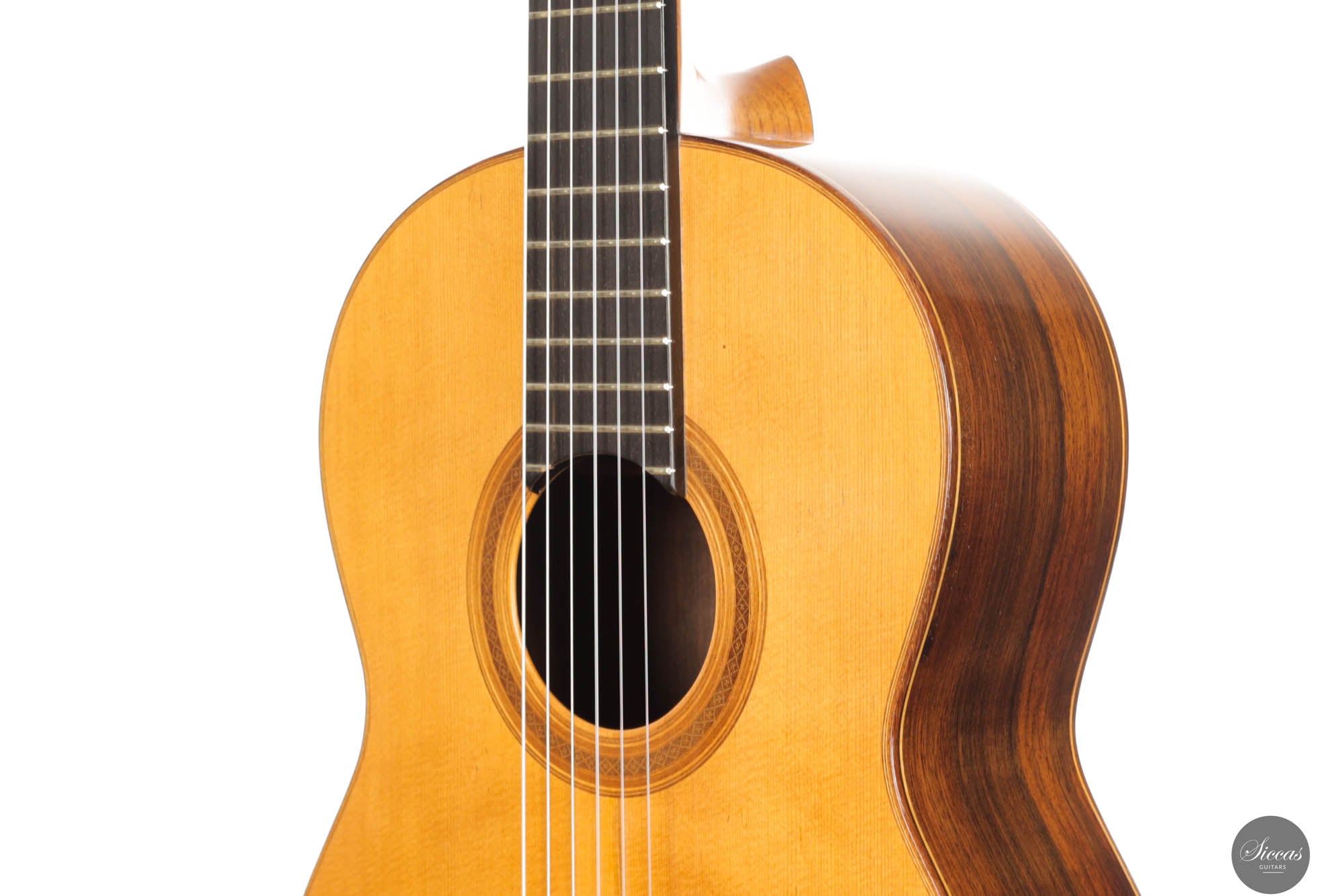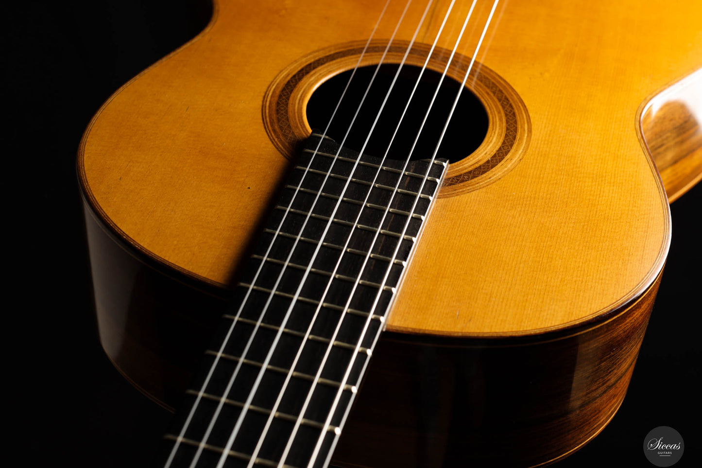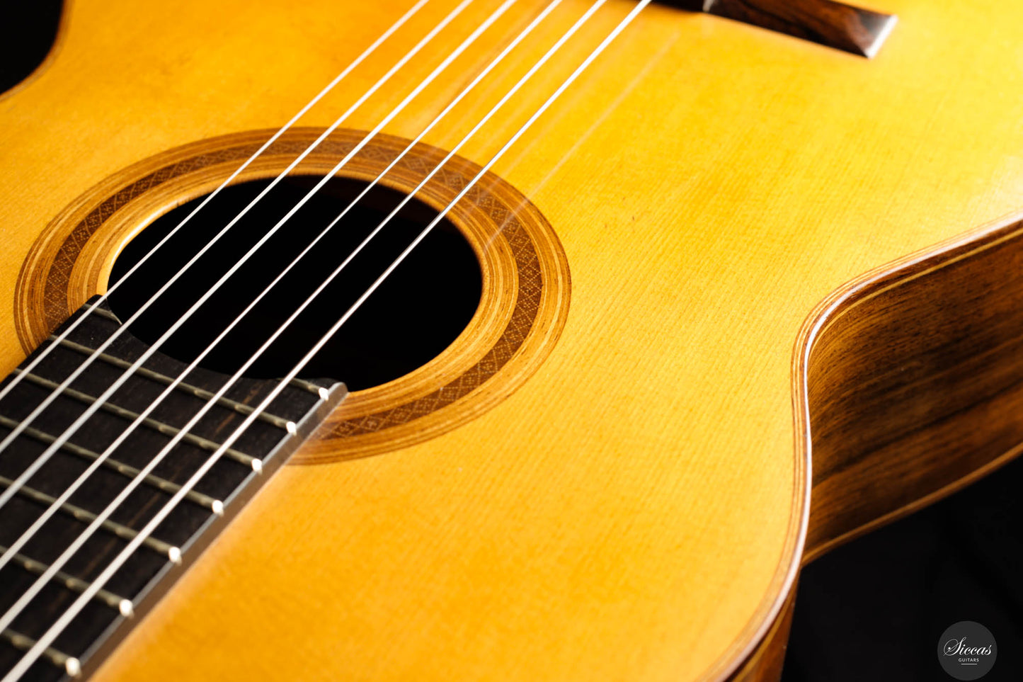 Diese wunderschöne, 40 Jahre alte Gitarre ist ein exquisites Beispiel für die Handwerkskunst von Paco Santiago Marin und zeigt die Reife und Tiefe, die mit dem Alter kommen. Verwurzelt in der angesehenen Tradition der Granada-Schule, verkörpert sie die lebendigen Höhen und klaren, resonanten Bässe, die für diesen Stil charakteristisch sind, und schafft so ein angenehmes und ausdrucksstarkes Spielerlebnis. Trotz ihres Alters befindet sich die Gitarre in gutem Zustand, mit nur einem gut reparierten Riss zwischen Steg und Schallloch. Als vielseitiges, traditionelles Instrument konzipiert, passt sich diese Gitarre nahtlos an verschiedene Spielkontexte an und bietet sowohl historischen Wert als auch zuverlässige Leistung.