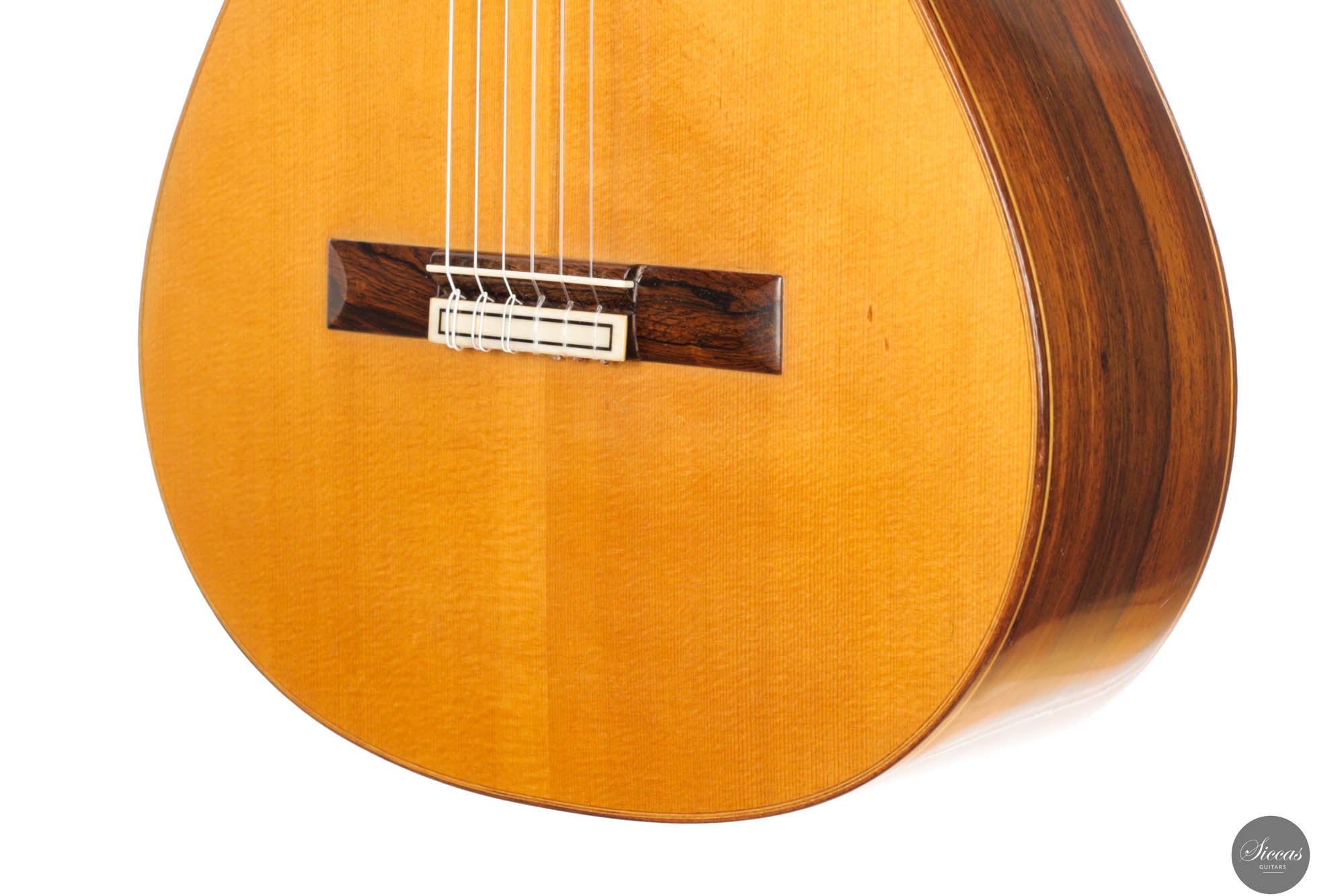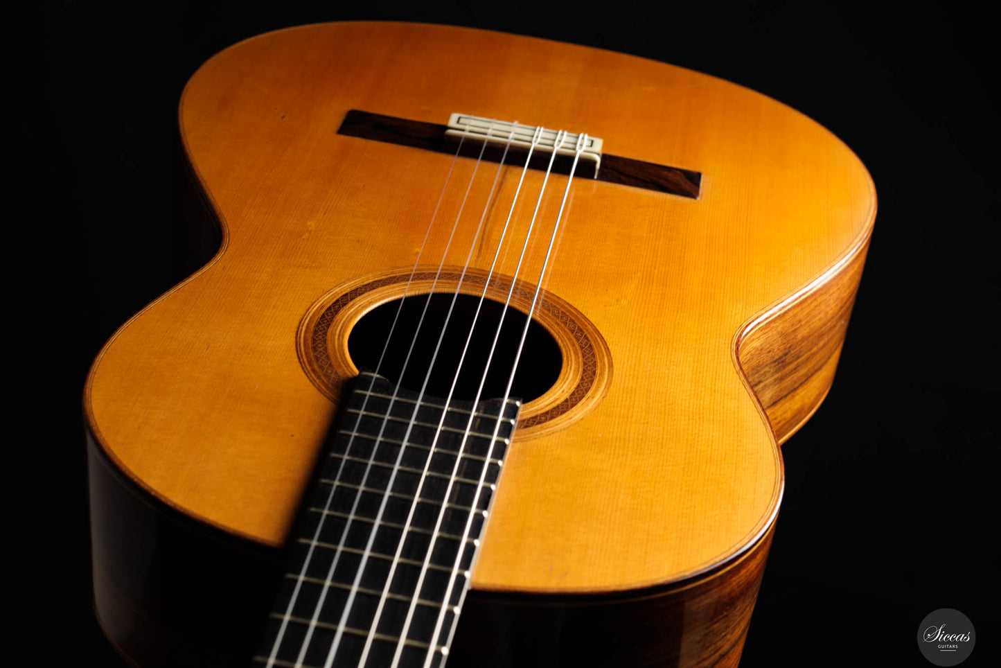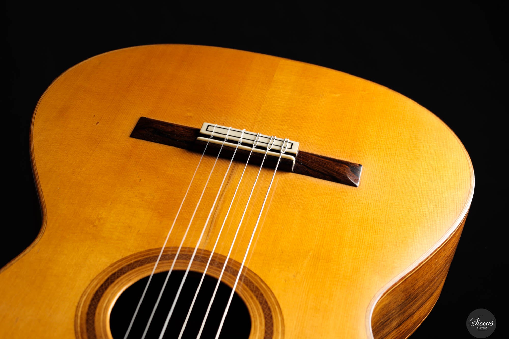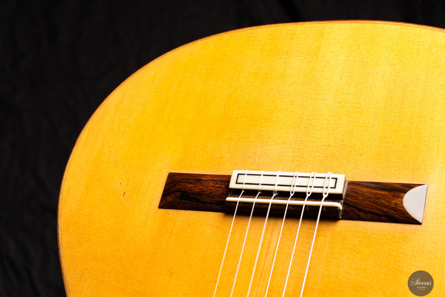 Diese wunderschöne, 40 Jahre alte Gitarre ist ein exquisites Beispiel für die Handwerkskunst von Paco Santiago Marin und zeigt die Reife und Tiefe, die mit dem Alter kommen. Verwurzelt in der angesehenen Tradition der Granada-Schule, verkörpert sie die lebendigen Höhen und klaren, resonanten Bässe, die für diesen Stil charakteristisch sind, und schafft so ein angenehmes und ausdrucksstarkes Spielerlebnis. Trotz ihres Alters befindet sich die Gitarre in gutem Zustand, mit nur einem gut reparierten Riss zwischen Steg und Schallloch. Als vielseitiges, traditionelles Instrument konzipiert, passt sich diese Gitarre nahtlos an verschiedene Spielkontexte an und bietet sowohl historischen Wert als auch zuverlässige Leistung.