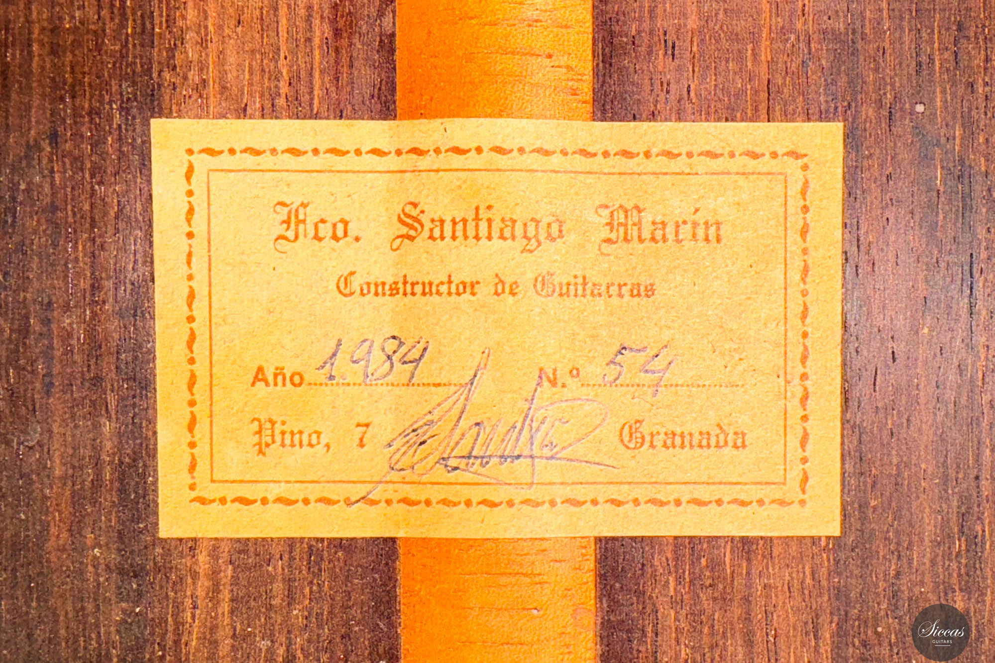 Paco Santiago Marín wurde 1946 in Granada geboren. Sein Vater, Francisco Santiago Oliva, war Schreiner aus Berufung und lehrte seinen Sohn Paco Santiago die filigrane Kunst der Holzbearbeitung. Im Jahr 1963 trat Paco Santiago in die Werkstatt seines Onkels, Antonio Marín Montero, ein, um den Übergang vom Schreiner zum vollwertigen Gitarrenbauer zu vollziehen. 1972 entschied er sich, seine eigene Werkstatt zu eröffnen.