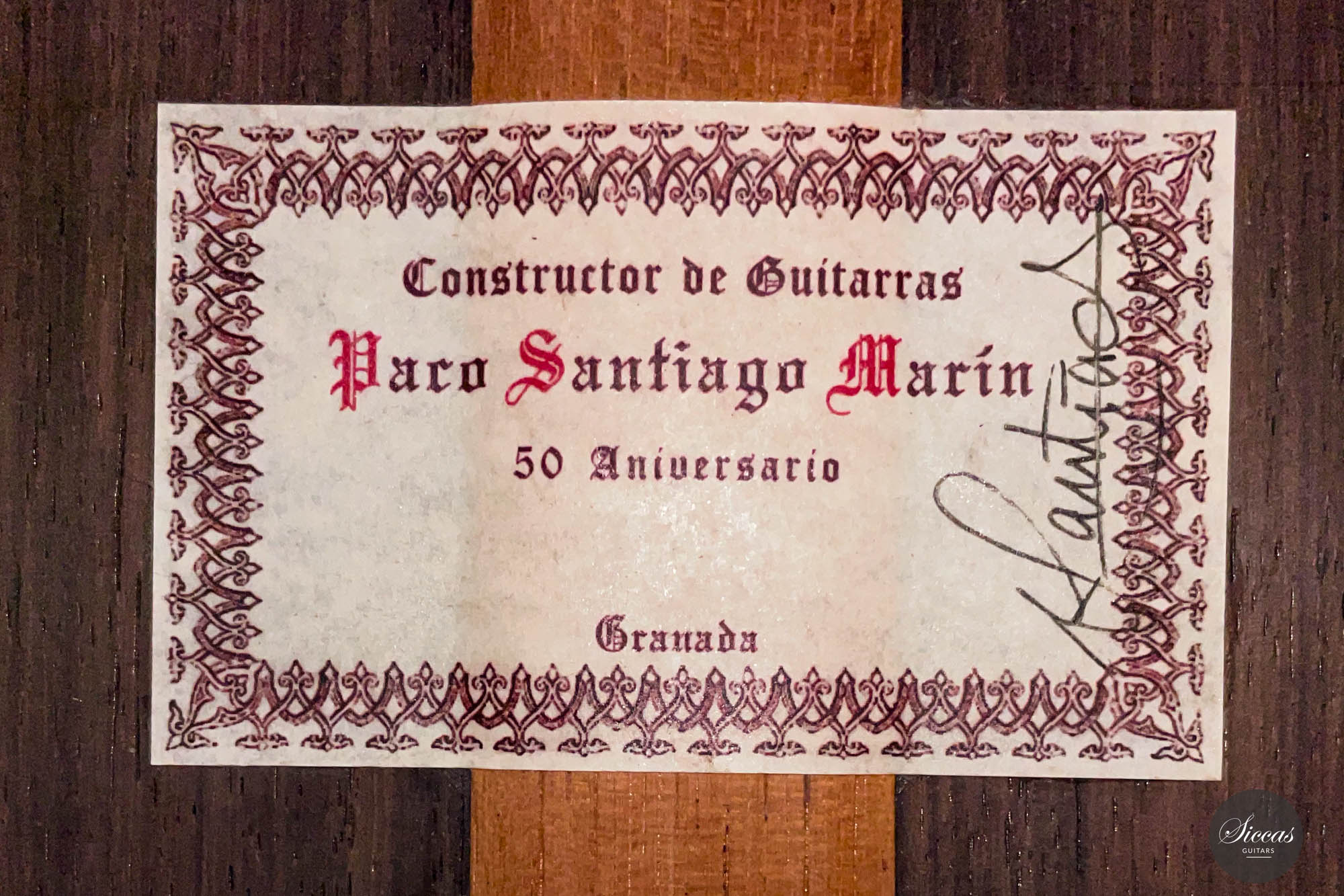 Paco Santiago Marín was born in Granada in 1946. His father, Francisco Santiago Oliva, was a cabinet maker of vocation and taught his son Paco Santiago the delicate art of wood crafting. In 1963 Paco Santiago joined his uncle's workshop, Antonio Marín Montero, to complete his transition from a cabinet maker to a full-fledged luthier. In 1972 he decided to start his workshop.