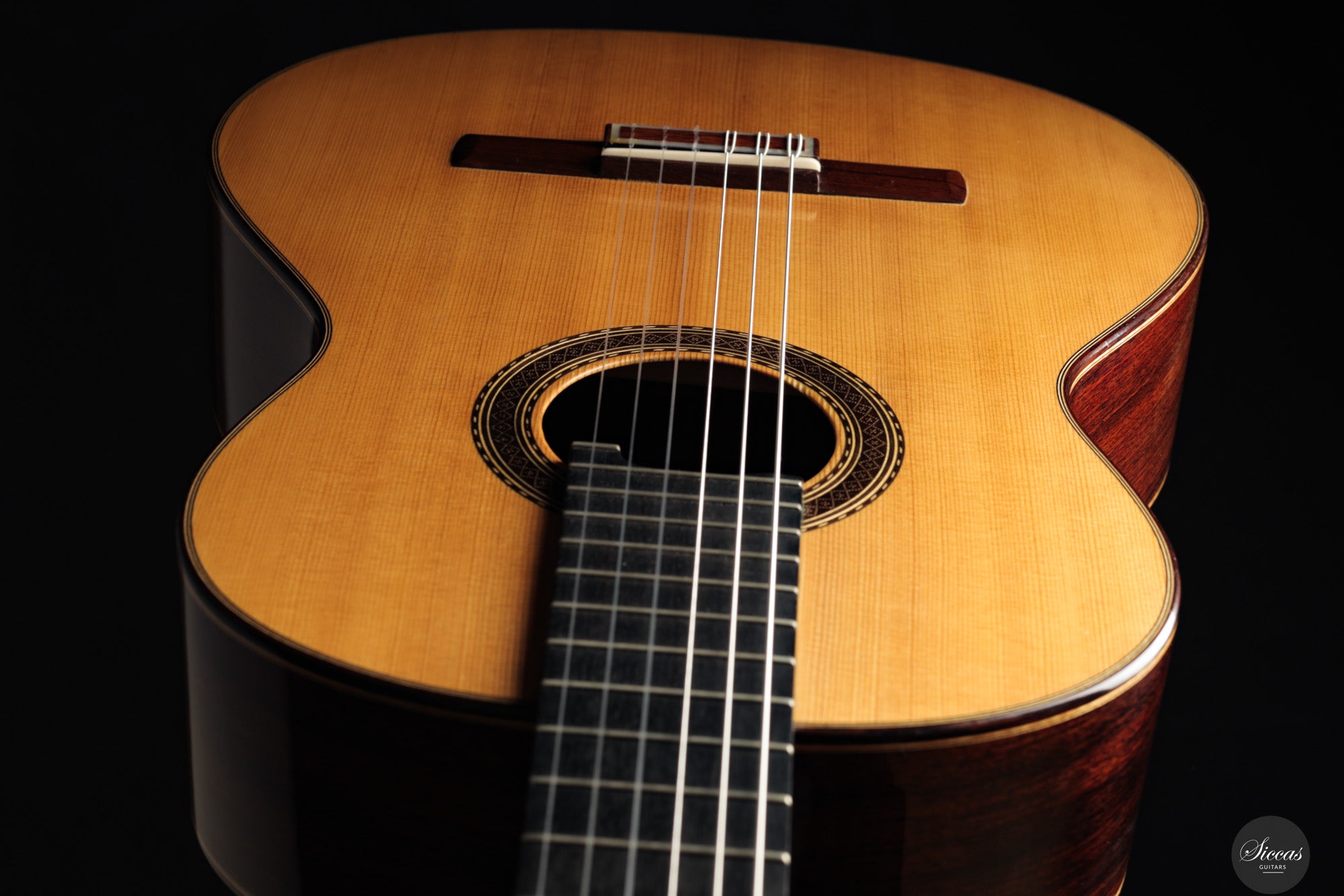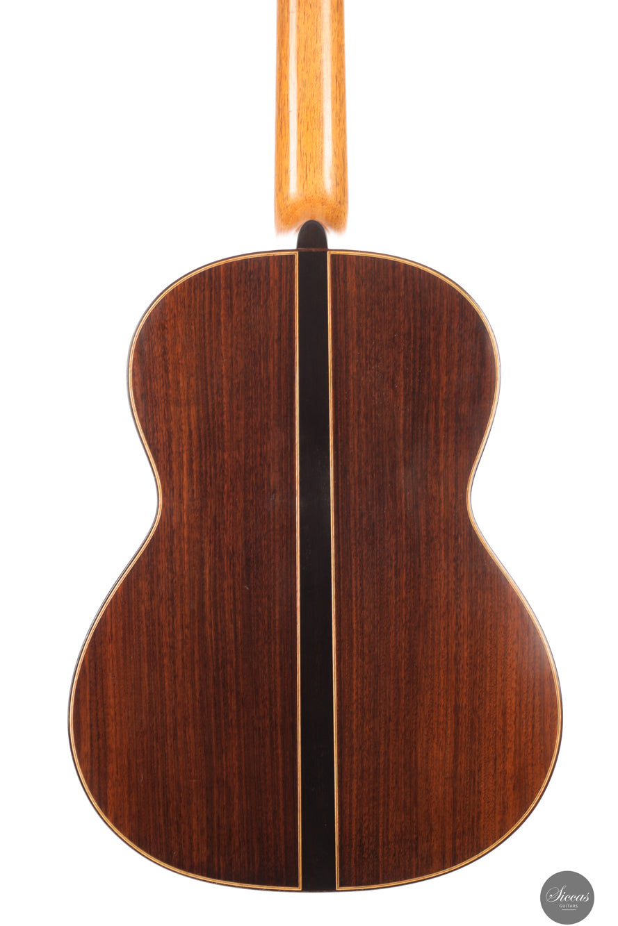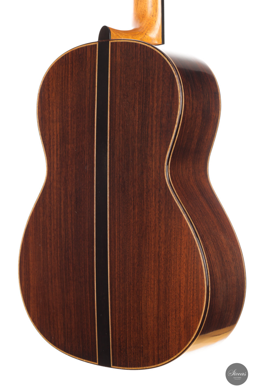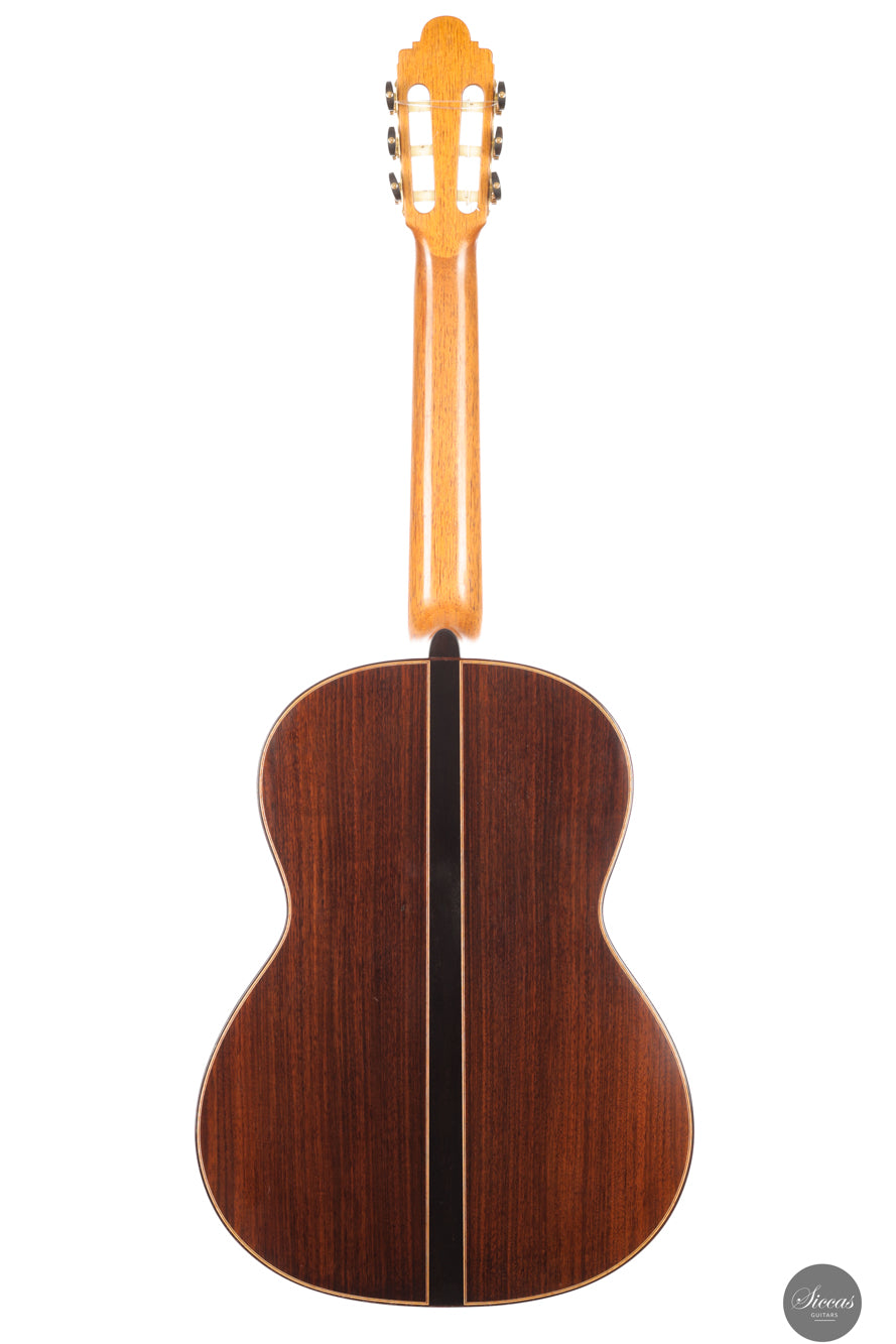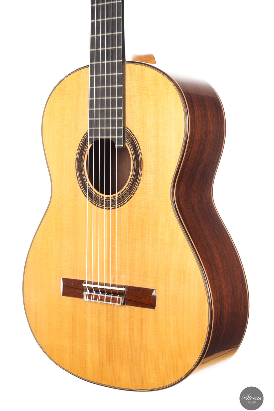 Dieses 30th Aniversario Modell aus dem Jahr 2019 ist in traditioneller Bauweise gefertigt und kombiniert eine Fichtendecke mit indischem Palisander für Boden und Zargen, ausgeführt in Schellackpolitur. Klanglich zeigt sich eine klar spanisch geprägte Stimme mit direkter Ansprache, brillanter Präsenz und deutlicher Projektion, getragen von einem strukturierten und tragfähigen Bassfundament. Die Register wirken geschlossen und ausgewogen, sodass ein in sich stimmiger, beinahe klavierartiger Gesamteindruck entsteht.