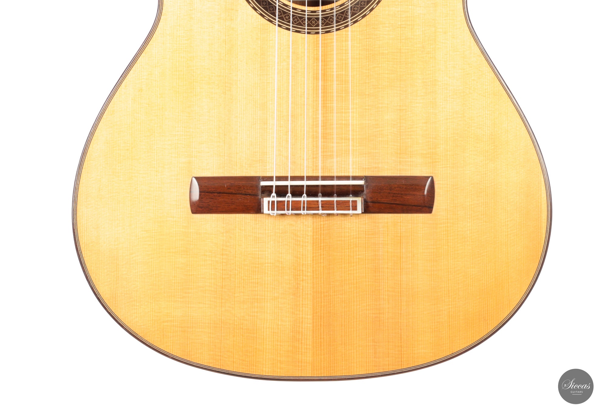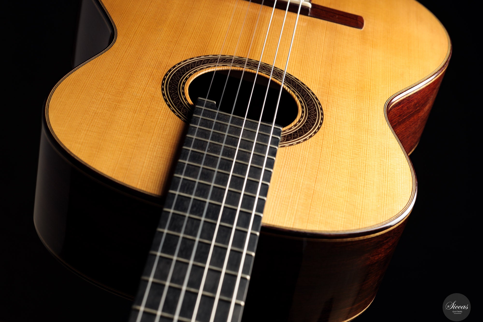 Die Diskantsaiten entfalten eine klare, präzise Singstimme, die sich mühelos im Raum trägt, ohne an Schärfe zu gewinnen. Gleichzeitig bleiben die Bässe konturiert und stabil und geben dem Klang Tiefe, ohne die Mittelstimmen zu überdecken. Besonders bemerkenswert ist der dynamische Spielraum. Auch bei kräftigem Anschlag behält das Instrument Kontrolle und Klangsubstanz, sodass Lautstärke aufgebaut werden kann, ohne dass der Ton komprimiert oder hart wirkt. Diese Verbindung aus Brillanz, Tragfähigkeit und struktureller Klarheit macht die Gitarre sowohl für lyrisches Repertoire als auch für rhythmisch geprägte Konzertliteratur geeignet.