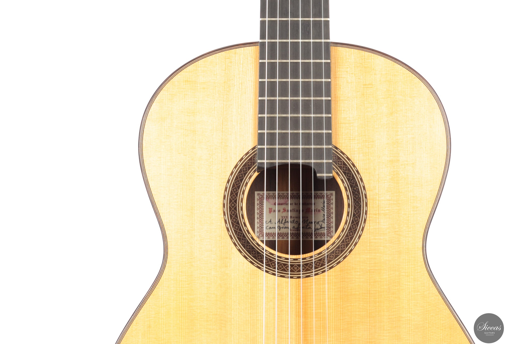 Paco Santiago Marín wurde 1946 in Granada geboren. Seine erste Ausbildung erhielt er im väterlichen Betrieb. Sein Vater, Francisco Santiago Oliva, war Möbeltischler und vermittelte ihm früh die handwerkliche Präzision im Umgang mit Holz. 1963 trat Paco Santiago in die Werkstatt seines Onkels Antonio Marín Montero ein, wo er seine Ausbildung zum Gitarrenbauer im Geist der Granadiner Tradition vollendete. Seit der Gründung seiner eigenen Werkstatt im Jahr 1972 entstehen Instrumente, die für Projektion, Ausgewogenheit und klangliche Differenzierung geschätzt werden. Seine Gitarren werden international von Konzertgitarristen wie Ricardo Gallén, Leo Brouwer, Manuel González und Iliana Matos gespielt. Die Aniversario Modelle stellen die exklusivste Linie seiner Werkstatt dar und sind besonders sorgfältig ausgewählten Hölzern sowie einer entsprechend hohen Ausarbeitungsqualität vorbehalten.