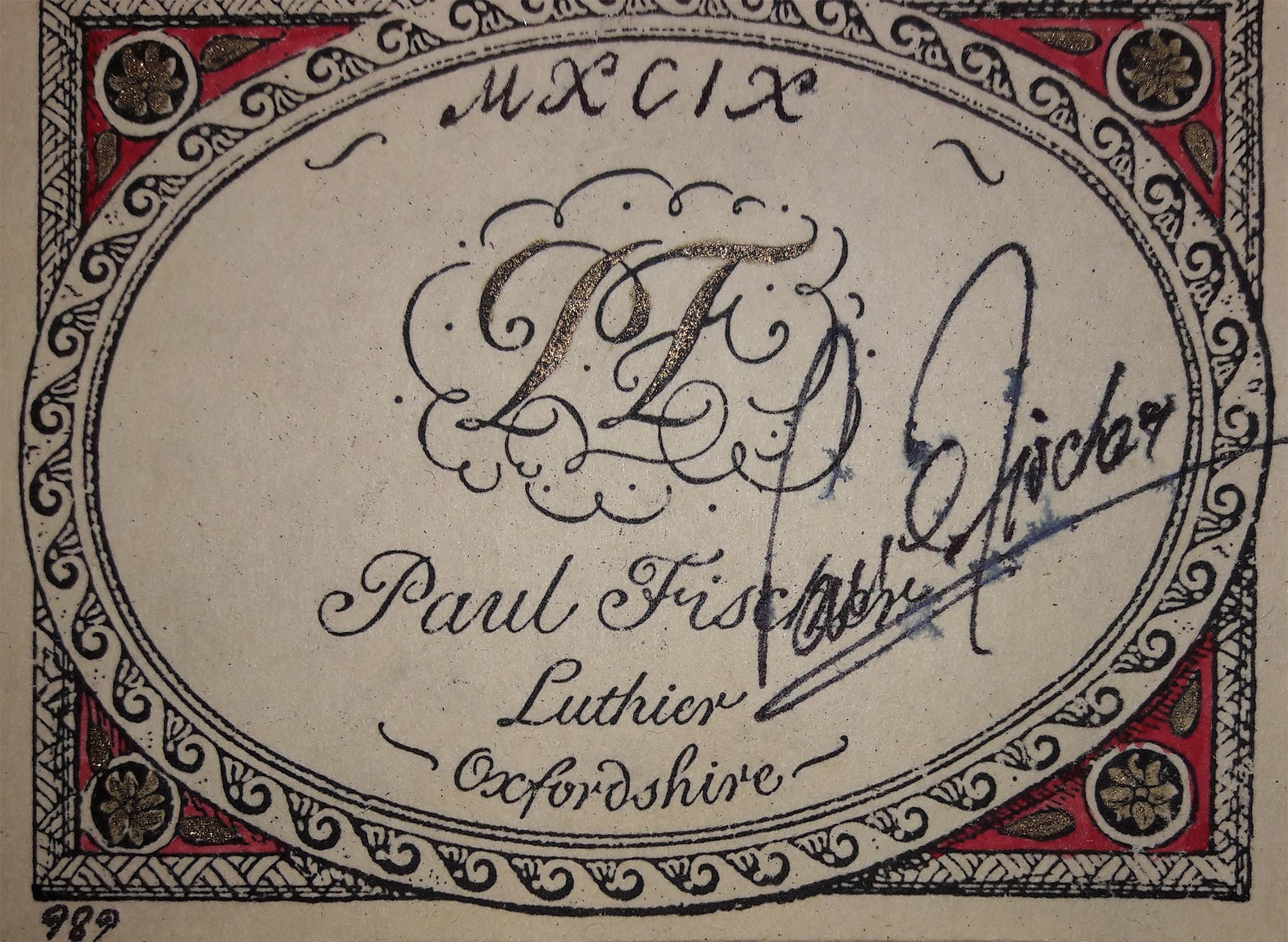 Paul Fischer wurde auf der Isle of Man geboren und wuchs in Oxford auf wo er auch seine Karriere als Instrumentenbauer begann unter der Anleitung des renommieren Harpsichordbauers Robert Goble. Er studierte an der Oxford College of Art and Technology wo er seine Ausbildung vollendete. Seine Liebe zur Gitarre ist es zu verdanken, dass er David Rubio kennenlernte und in seiner Werkstatt zu arbeiten begann wo er einige Jahre blieb. Seine Erfolge als Gitarrenbauer bei Rubio (seine Gitarren sind mit „P.F.“ gestempelt) führte dazu, dass er 1975 seine eigene Werkstatt eröffnete. Seine Instrumente wurden in bedeutenden Publikationen vorgestellt so z.B. in 'The Complete Guitarist' von Richard Chapman (Dorling, Kindersley 1993), und 'The Classical Guitar: A Complete History' von John Morrish et al (Balafon 1997). Diese Francisco Simplicio Kopie wurde 1999 von Paul Fischer gebaut. Von diesem besonderen Instrument mit zweigeteiltem Schallloch Instrument gibt es mindestens neun Exemplare. Die Idee hinter diesem Baukonzept basiert darauf, dass durch ein zweigeteiltes Schallloch die Decke mehr freie Fläche hat um frei schwingen zu können und durch eine längere Deckenleisten soll die Eigenresonanz des Instruments deutlicher hervortreten. Die Decke dieser Gitarre ist aus Fichte, Boden und Zargen sind aus Satinholz. Der Zustand ist sehr gut, lediglich auf der Decke weißt das Instrument kleinere Spielspuren auf und auf der Zarge nahe des Halsfußes befindet sich ein kleiner reparierter Riss. Die Mechaniken sind von Rodgers. Eine Hartschalenkoffer ist inklusive.