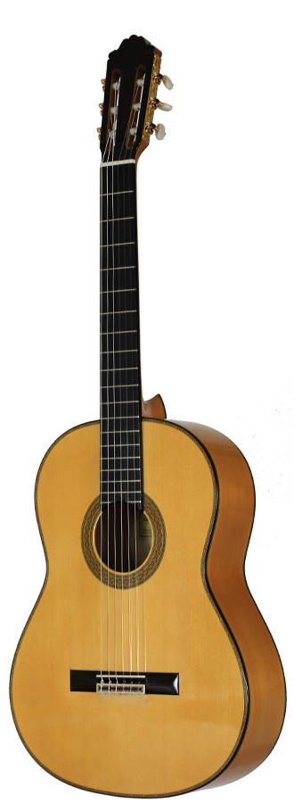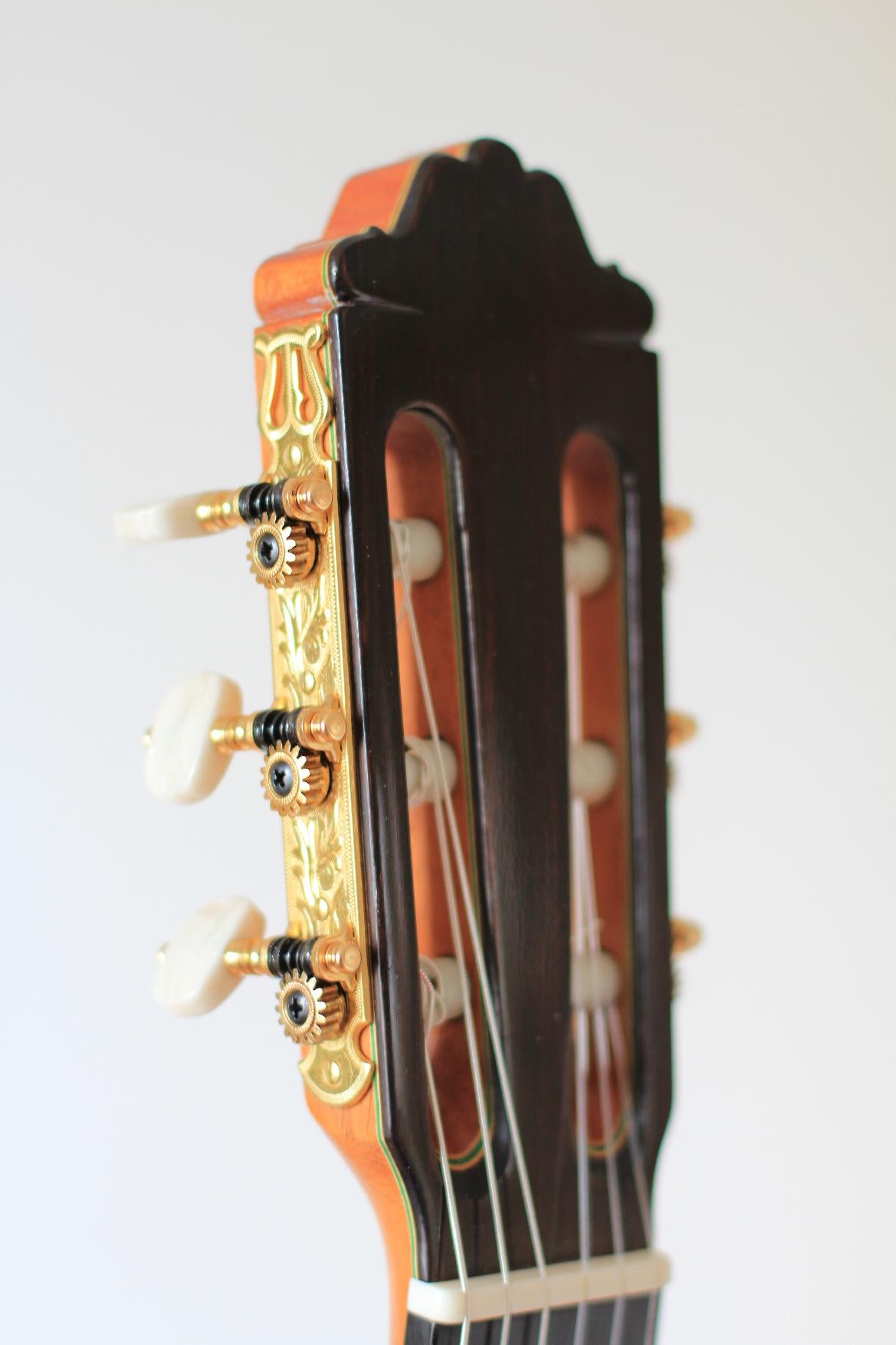 Diese Flamenca blanca stammt aus der privaten Sammlung von Paulino Bernabé Jr. Die Gitarre wurde noch vom Vater gebaut und im Jahr 2013 von seinem Sohn fertiggestellt. Die Decke besteht aus Fichte, der Boden und die Zargen sind aus Zypresse. Die Hölzer sind viele Jahrzehnte gelagert worden, denn nur die besten Materialien kamen für diese Gitarre zum Einsatz. Die Mechaniken sind von Fustero. Veredelt wurde die Gitarre mit einer Schellackpolitur verdelt.
