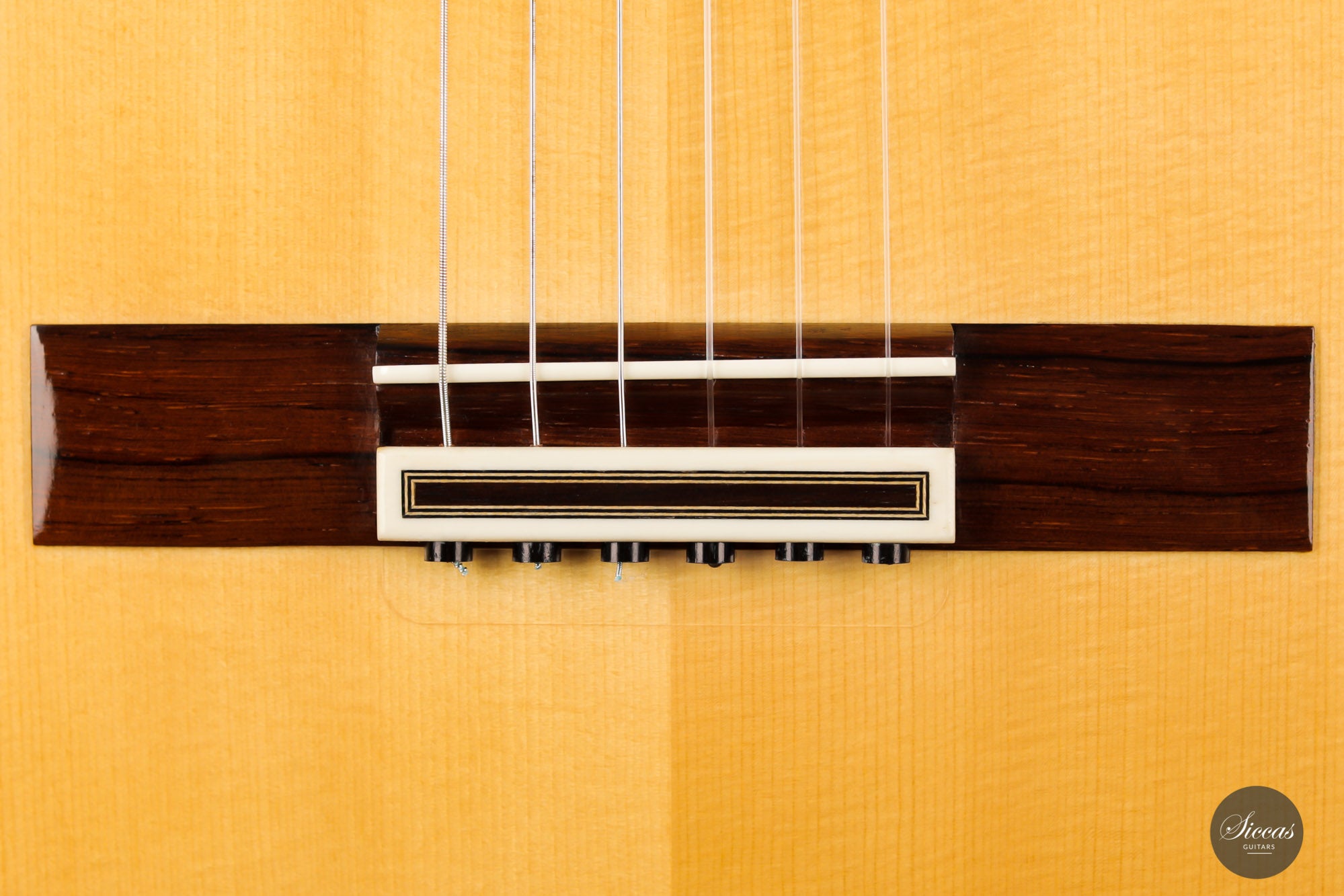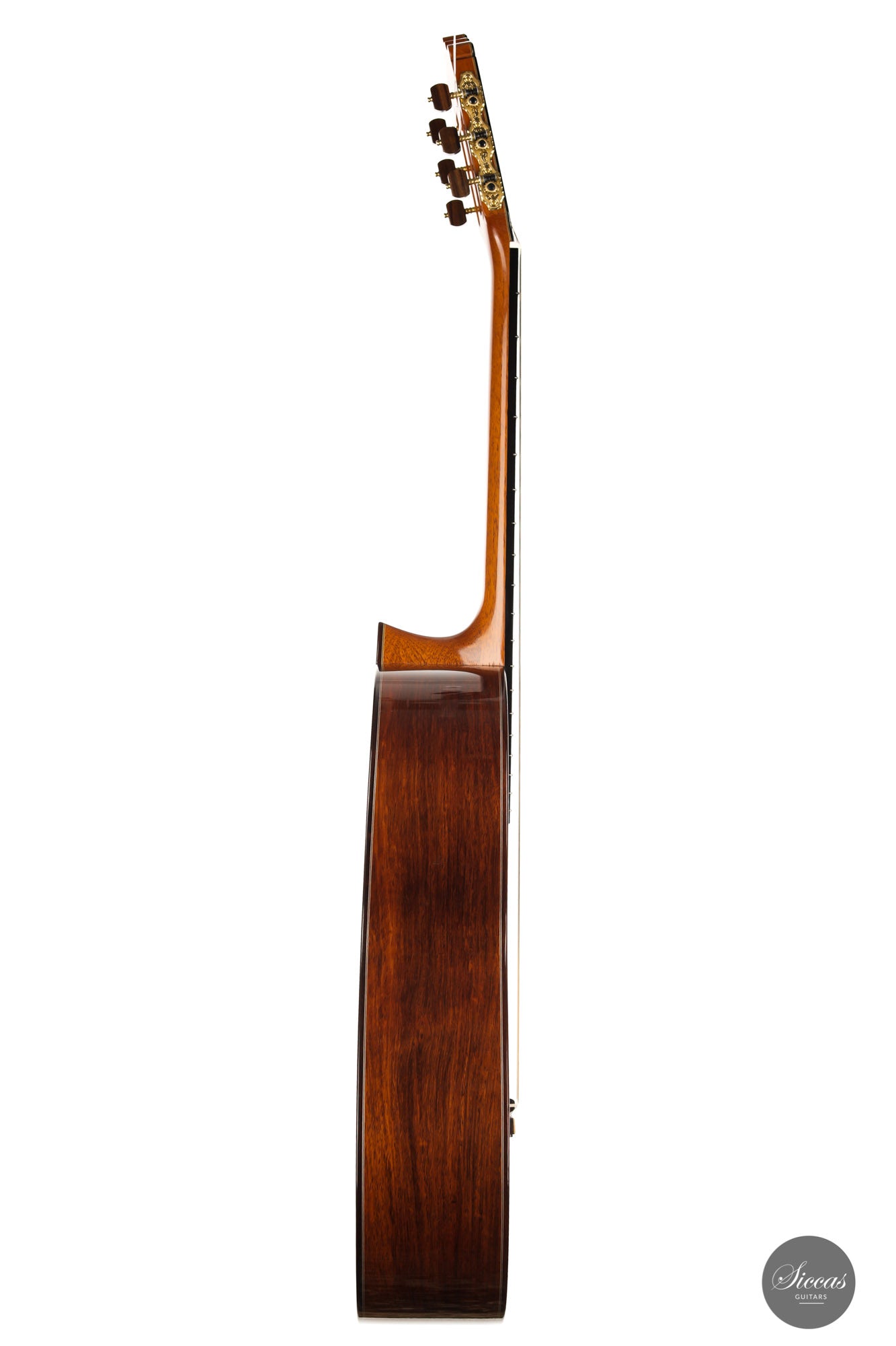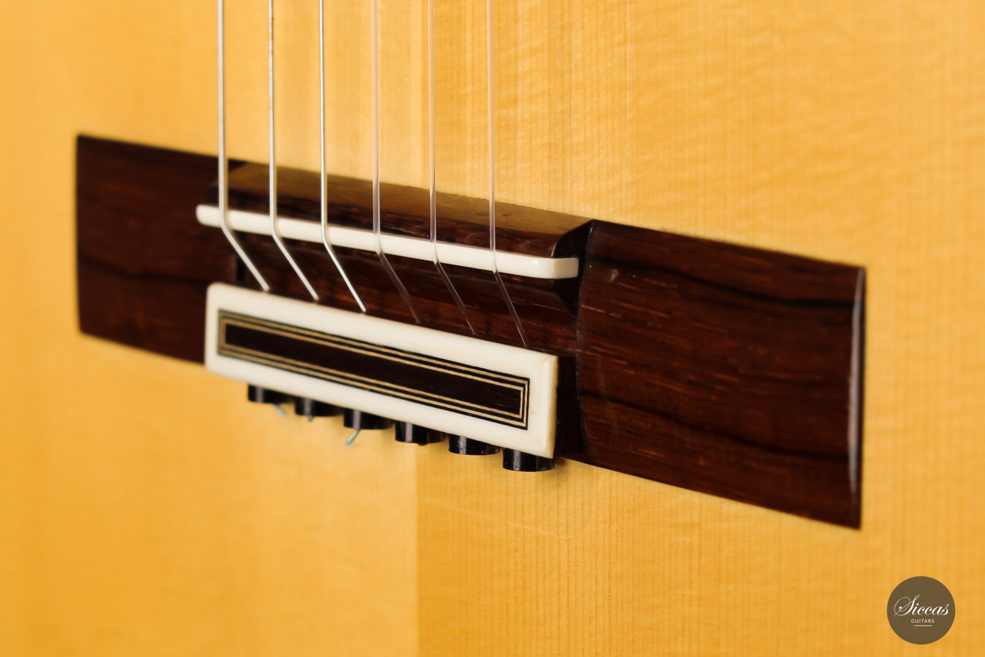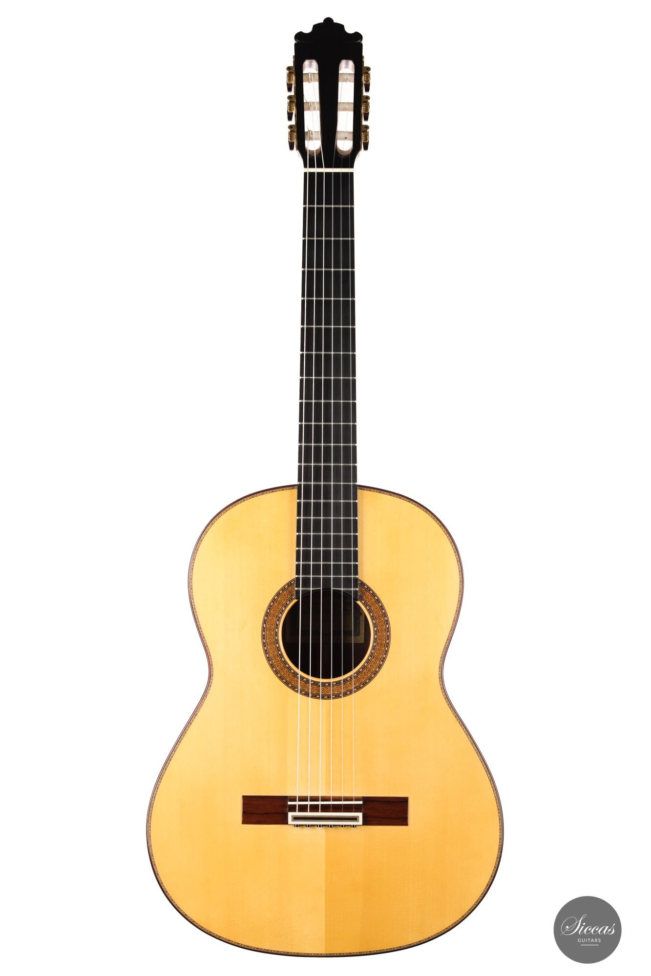 The ”Concierto” model is one of the most representative models of Paulino Bernabé. It is part of the “P.B.” models, the most prestigious line built by the master, and stands out thanks to its single sides made of 15 years old Granadillo. This 2017 guitar is a great opportunity to acquire a high-quality concert guitar at an attractive price. With a perfectly repaired crack on the back, and a few playing marks on the top, this guitar’s price was sensibly chosen to make it accessible to a guitarist seeking for an authentic Spanish sound at a reasonable budget. It already has a fully open sound with endless sustain and rich overtones.