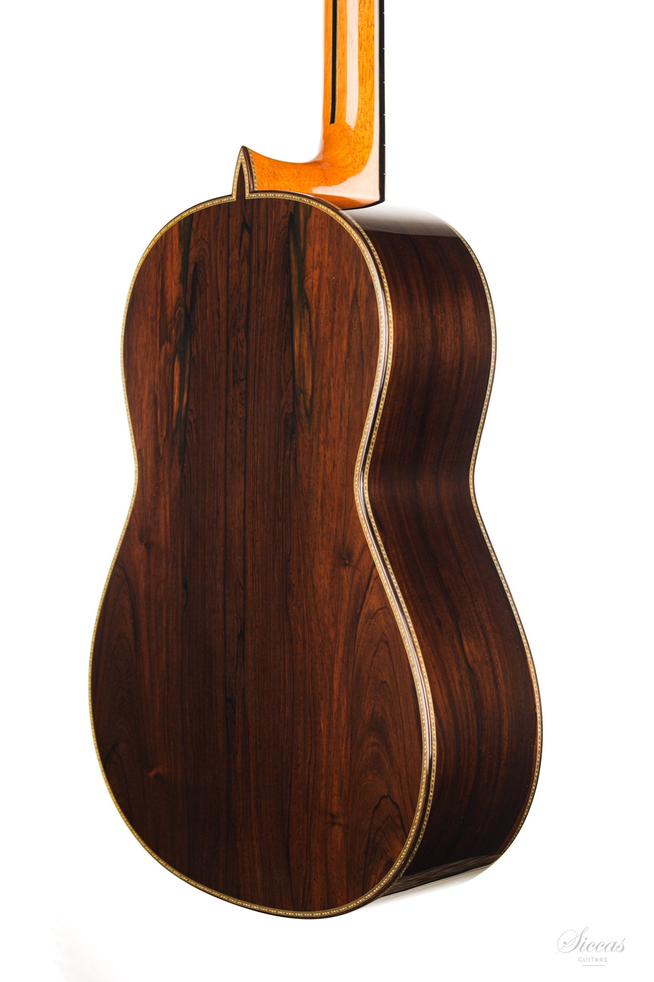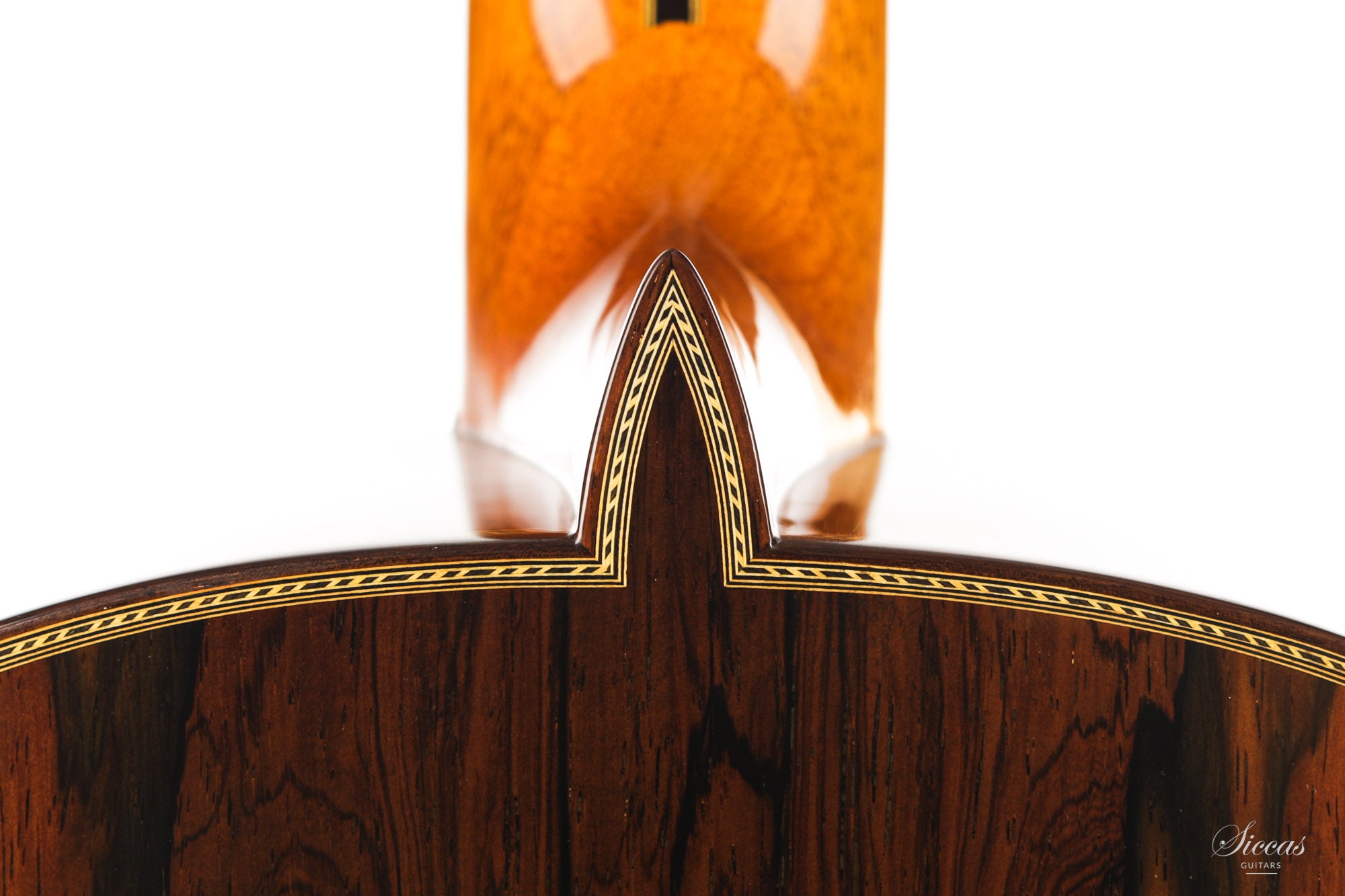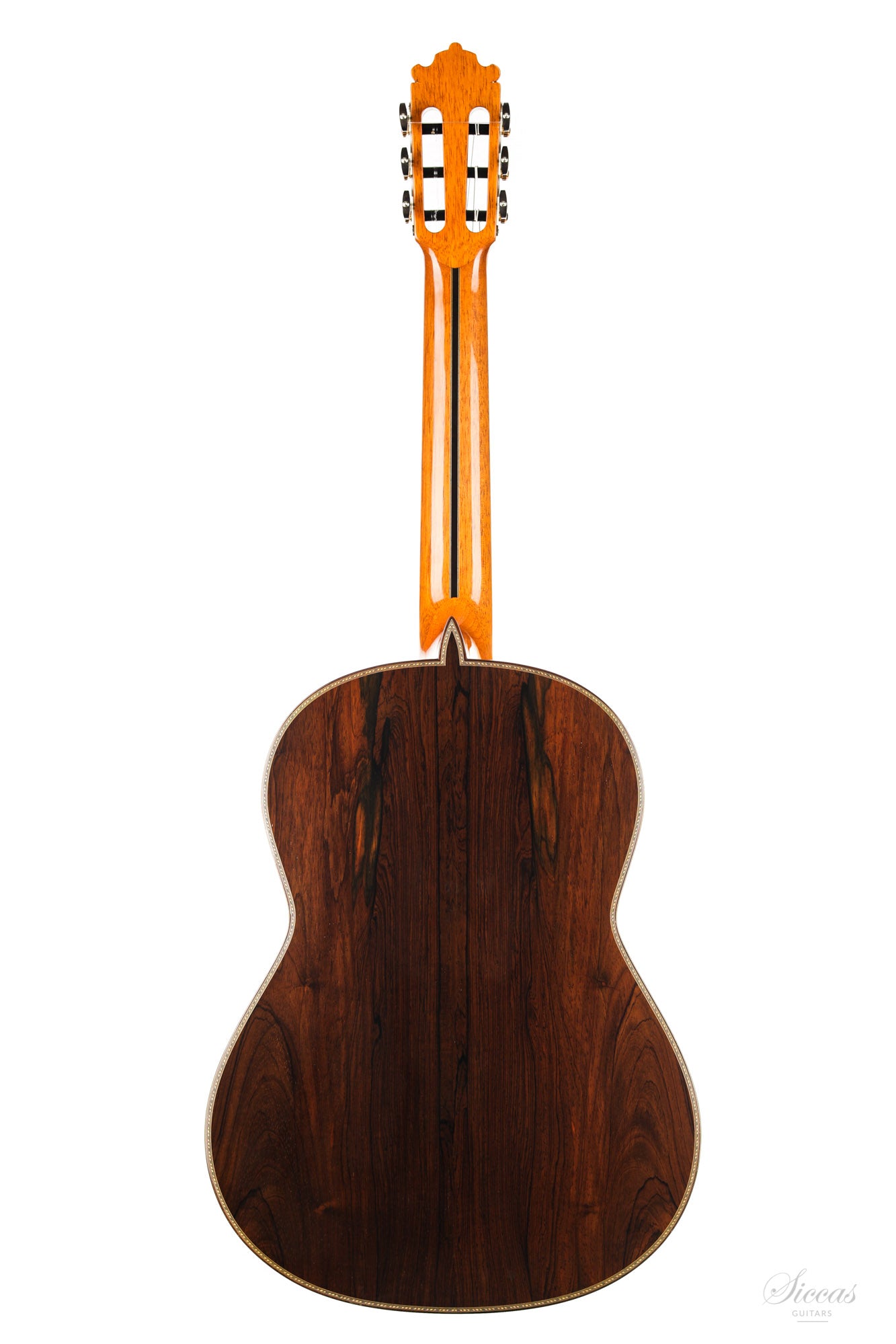 The Jubilee model is a beautiful special edition by Paulino Bernabé Jr. commemorating his 60th birthday this year 2020. This Jubilee guitar is also a reminder of the Maestro's many years of passionate work, combining all his experience and craftsmanship with specially selected and rare woods, from old stocks that are a small treasure in themselves. This instrument is the third guitar in the Jubilee Series and the only one built with Cites-certified Rio Rosewood. It is a great instrument with filigree and generous ornamentation. It has all the depth and subtlety of the typical Bernabé sound, with excellent and expressive volume and perfect playability.