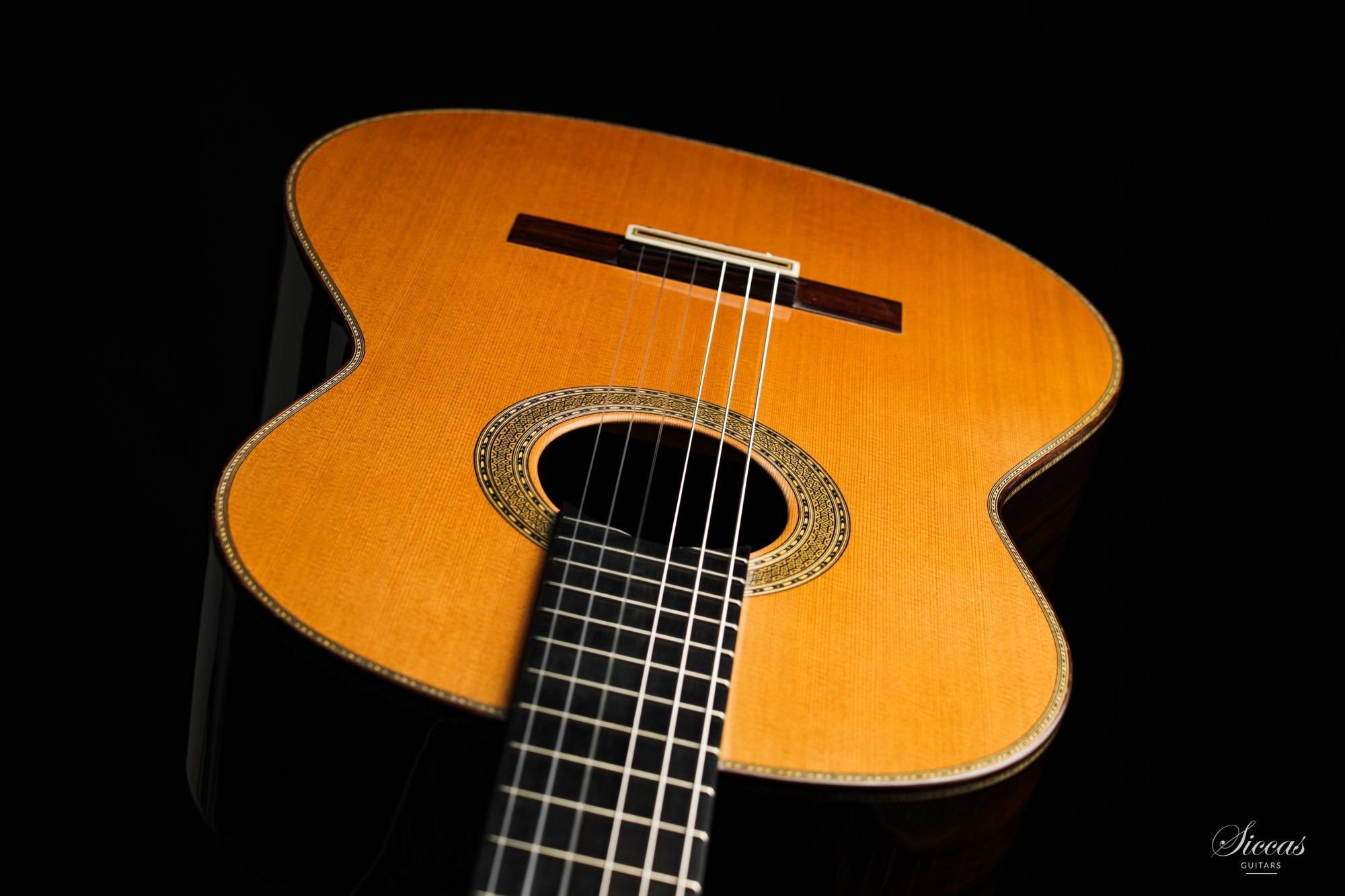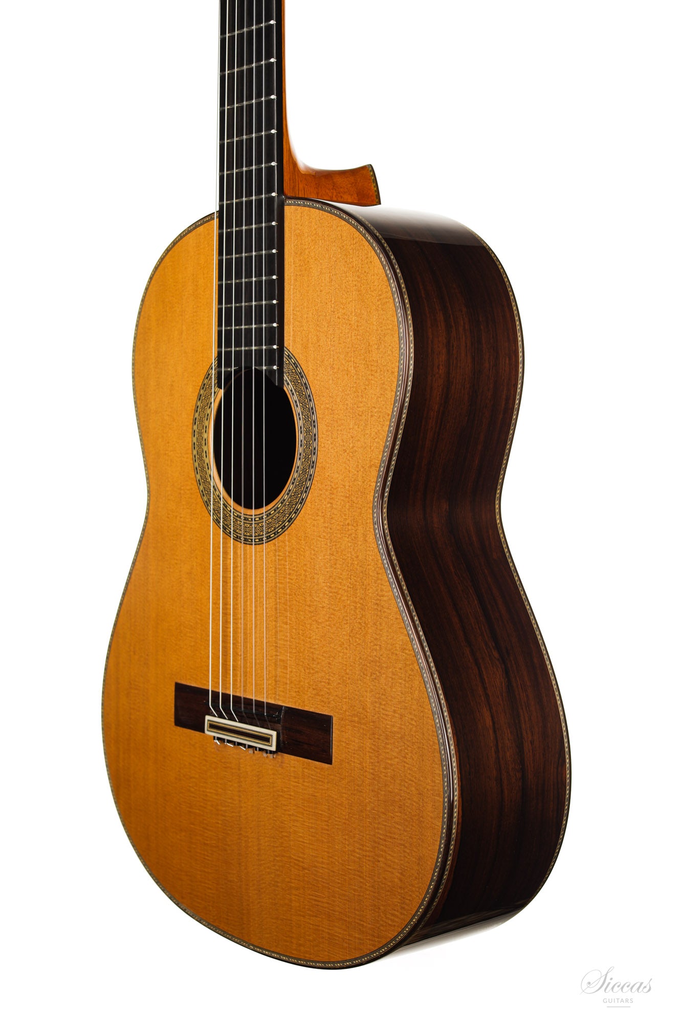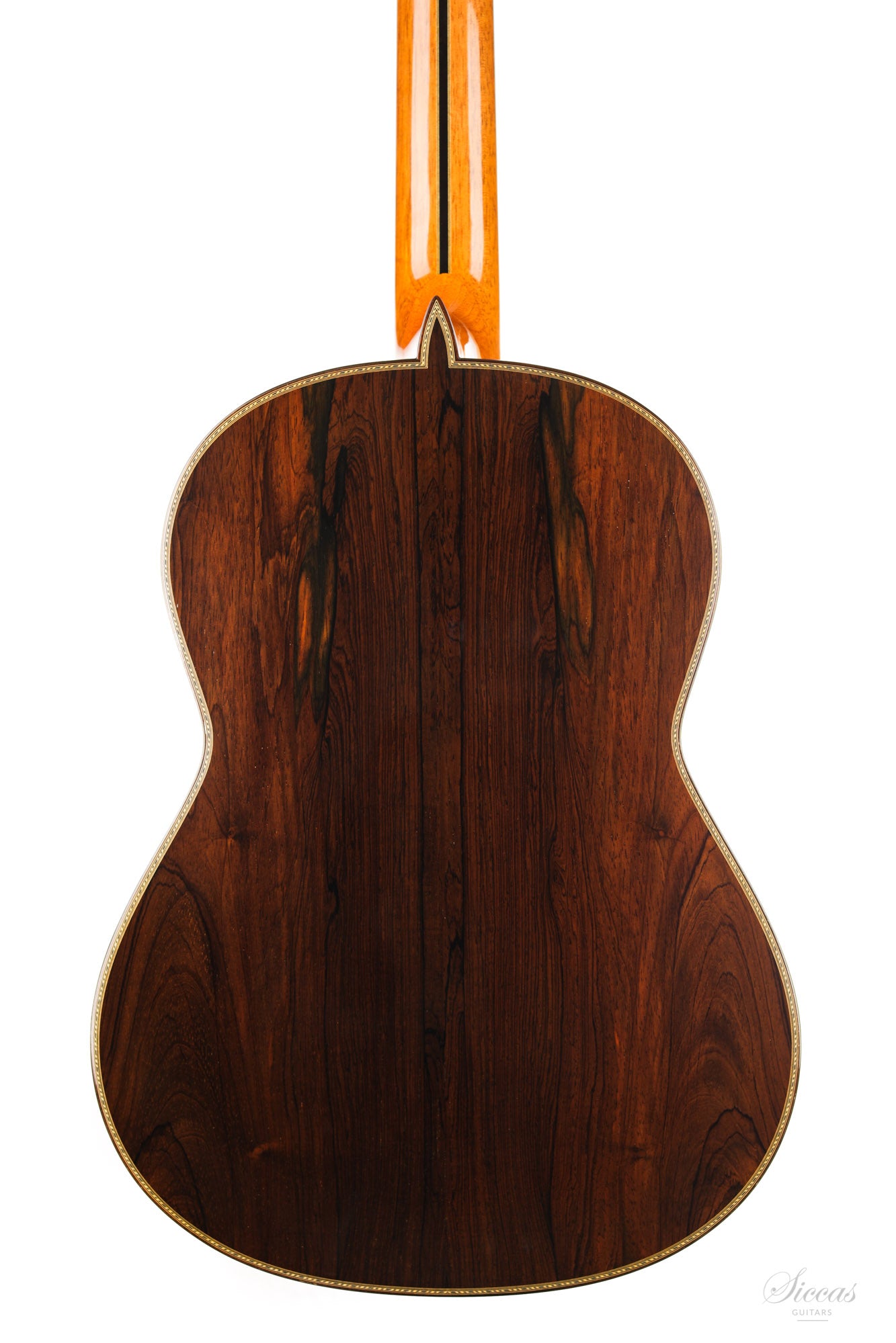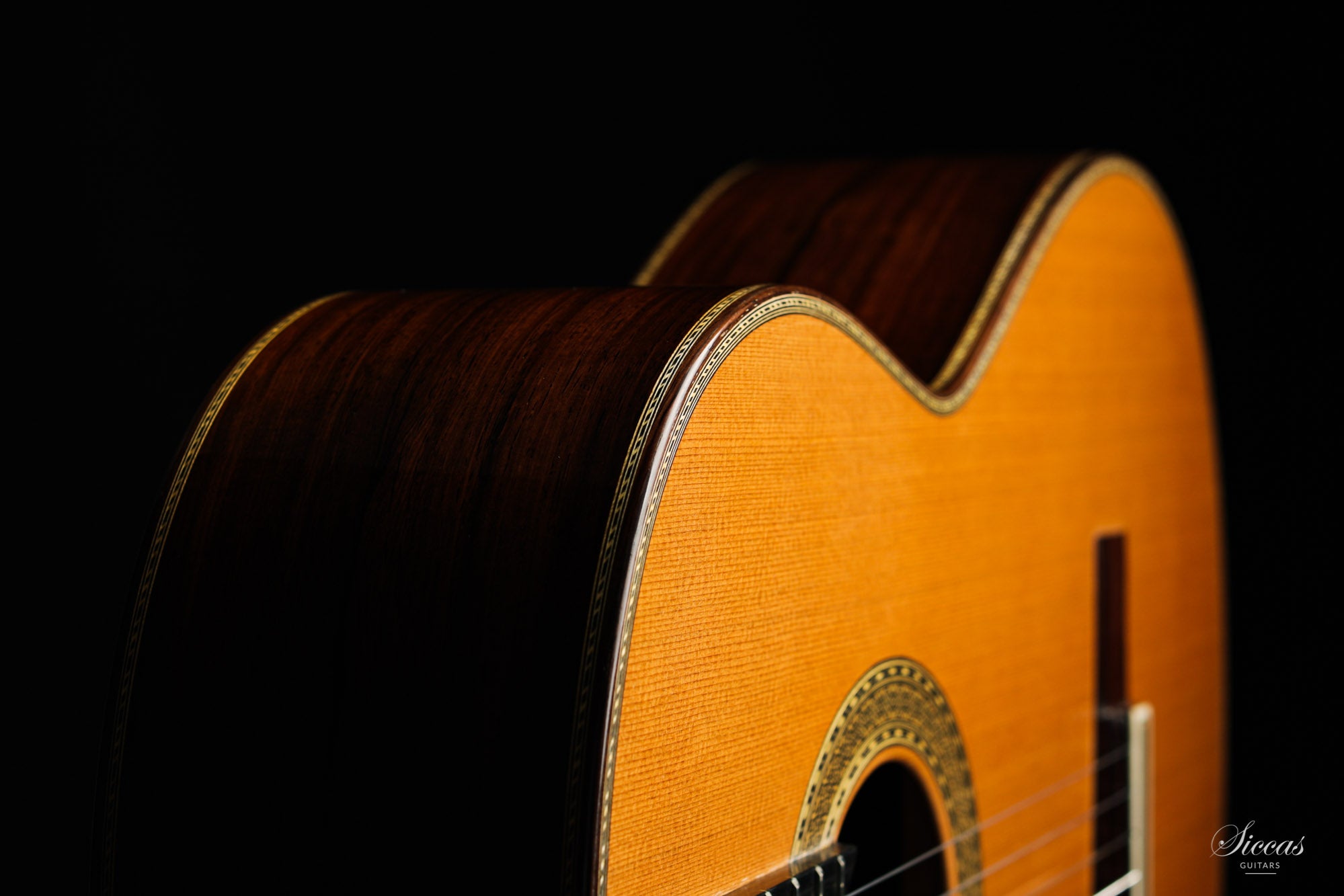 The Jubilee model is a beautiful special edition by Paulino Bernabé Jr. commemorating his 60th birthday this year 2020. This Jubilee guitar is also a reminder of the Maestro's many years of passionate work, combining all his experience and craftsmanship with specially selected and rare woods, from old stocks that are a small treasure in themselves. This instrument is the third guitar in the Jubilee Series and the only one built with Cites-certified Rio Rosewood. It is a great instrument with filigree and generous ornamentation. It has all the depth and subtlety of the typical Bernabé sound, with excellent and expressive volume and perfect playability.