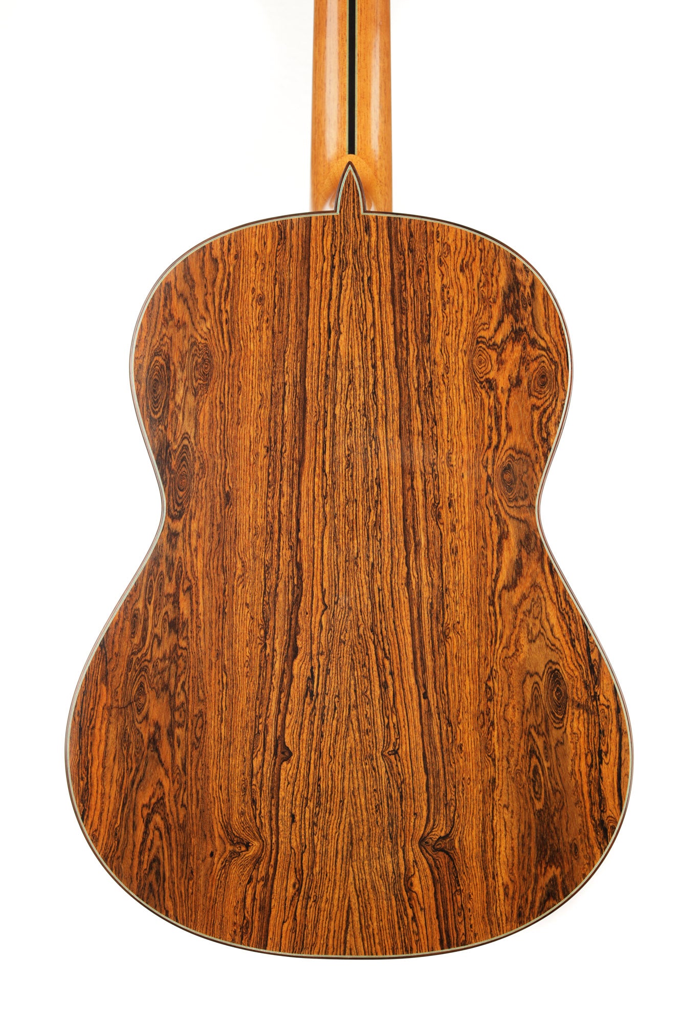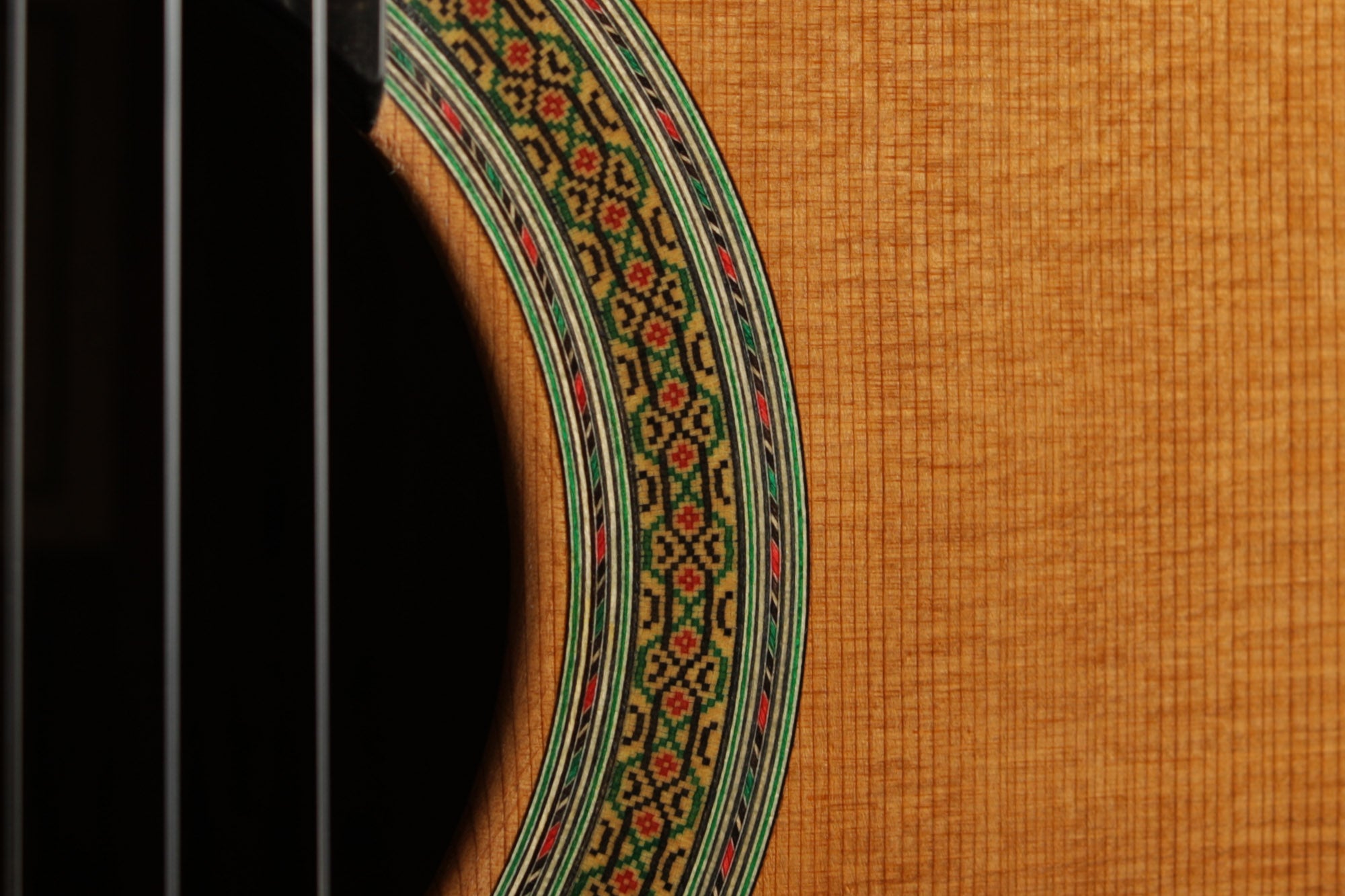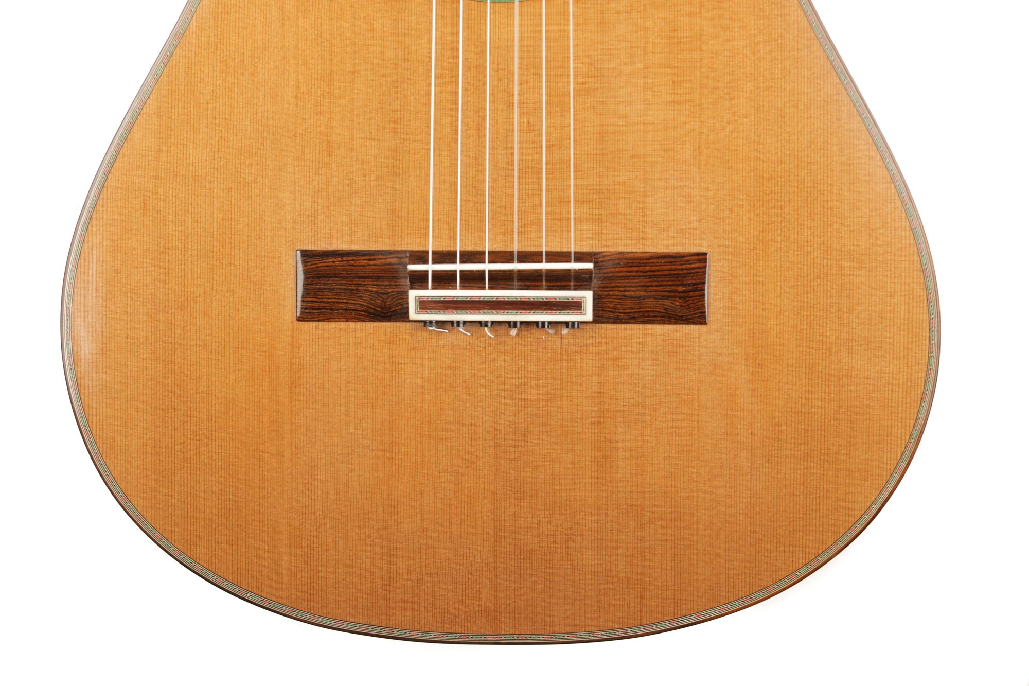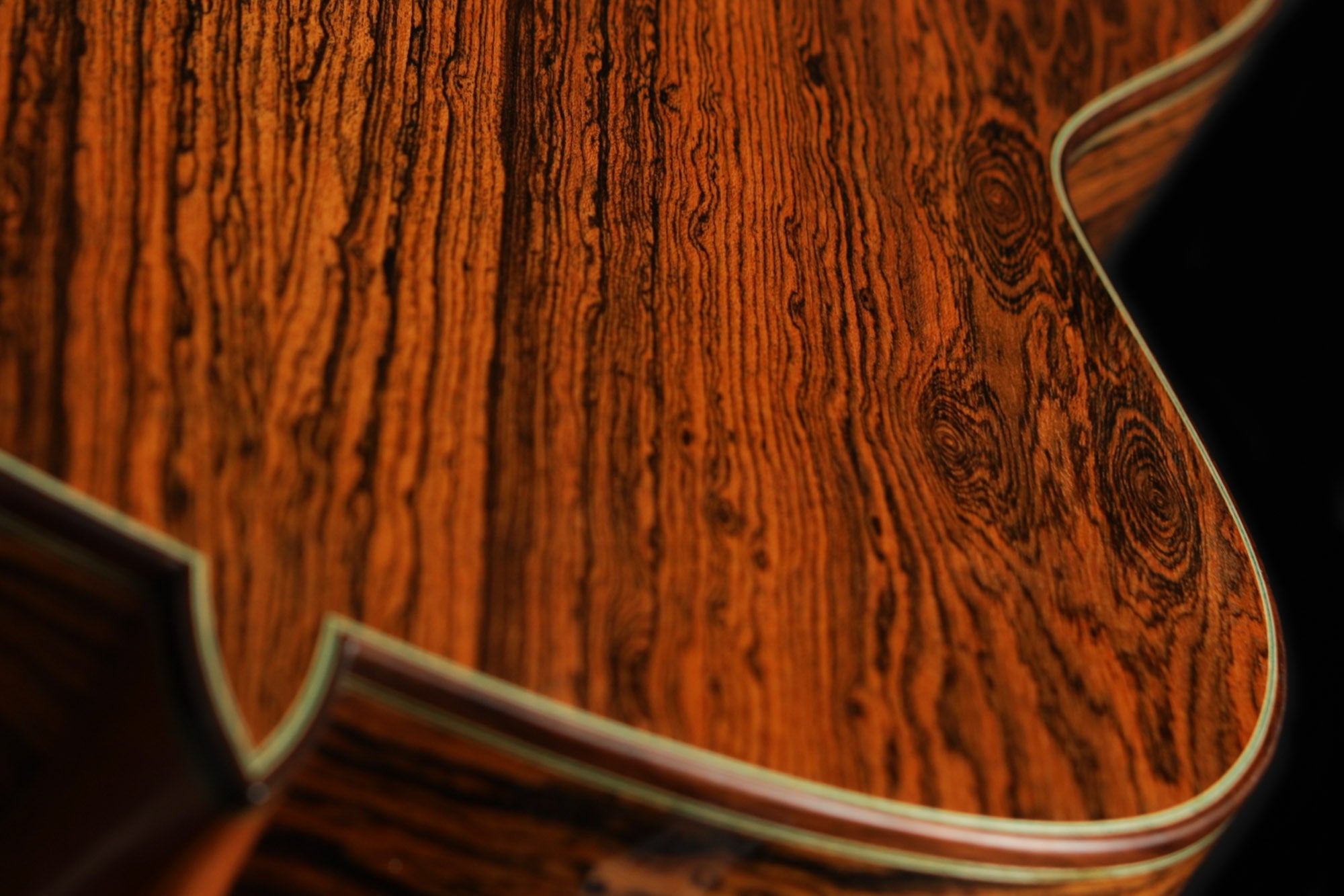 The Model 50 from Bernabe offers a variety of intriguing qualities. Stunning woods combined with an excellent craftsmanship result in an overall inspiring guitar. The curly grain of the Bocote rosewood is an absolute eye-catcher. Creamy smooth trebles with a lyrical Spanish sense mixed with the strong fundamental basses capture the perfect mix between a modern guitar and a traditional tone. The volume is pleasant and plenty for any required situation, Bernabe’s guitars are always easy to play and have a smooth setup. When playing on this guitar you immediately notice how responsive it is, the cedar top creates angelic overtones that fill a room with a beautiful shimmer.