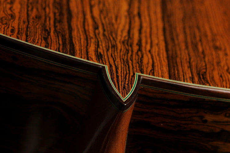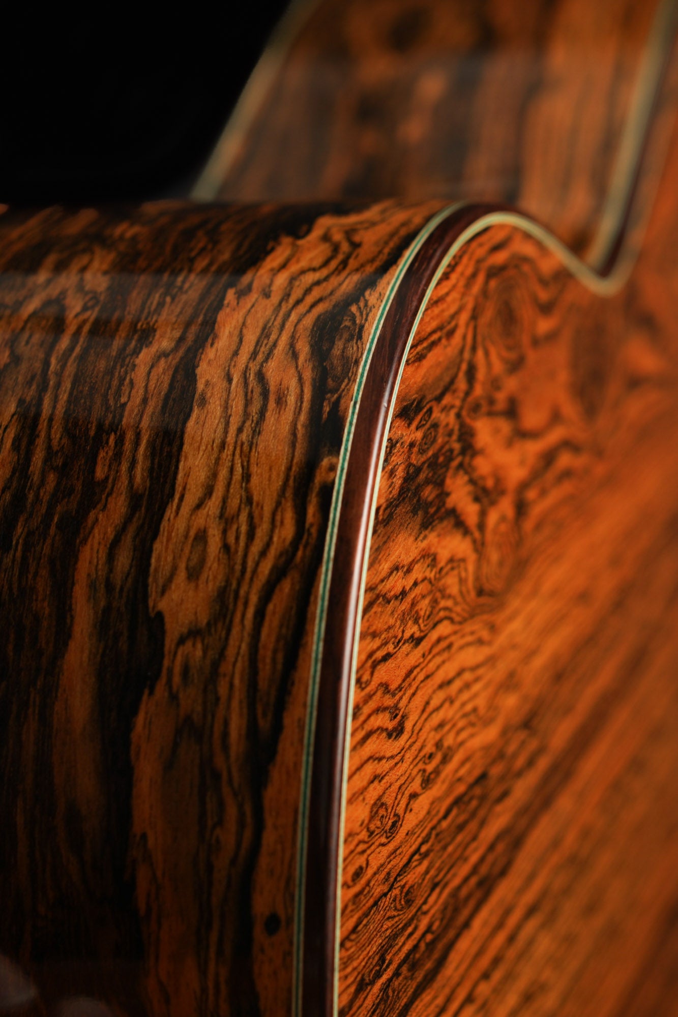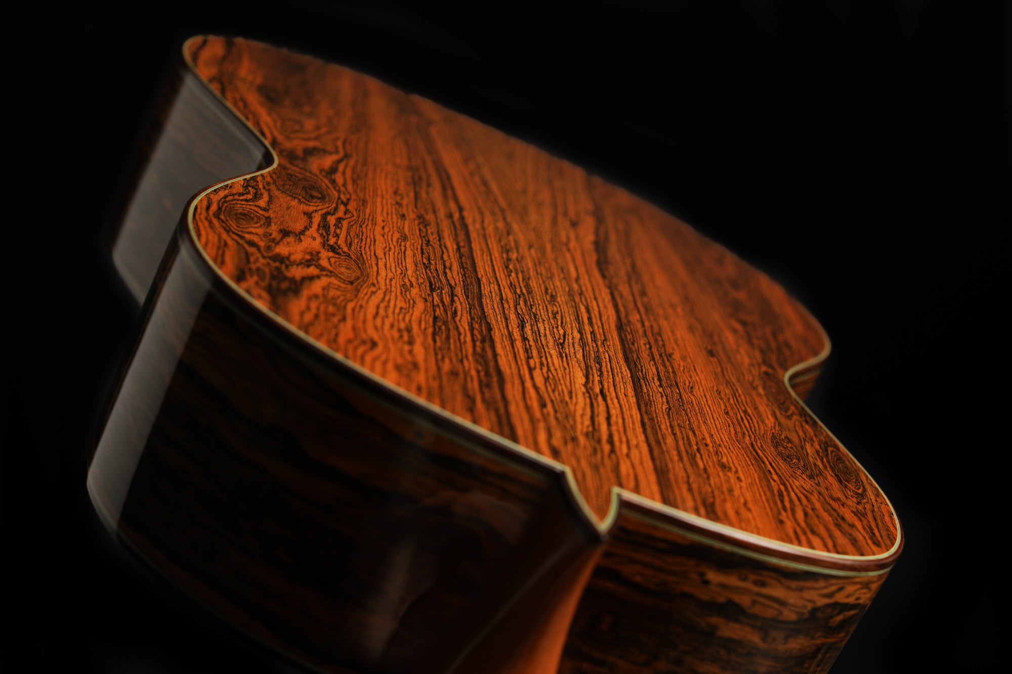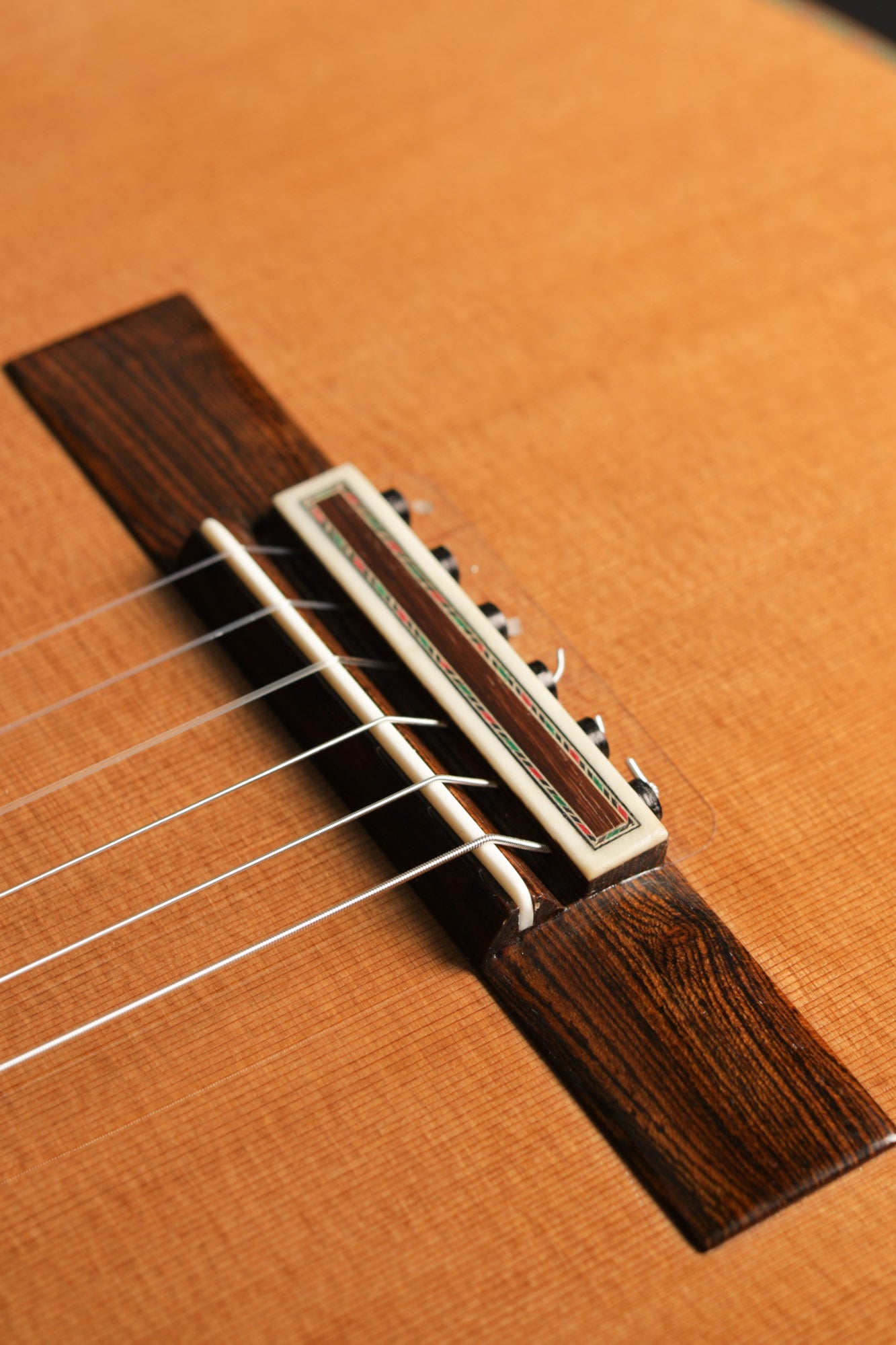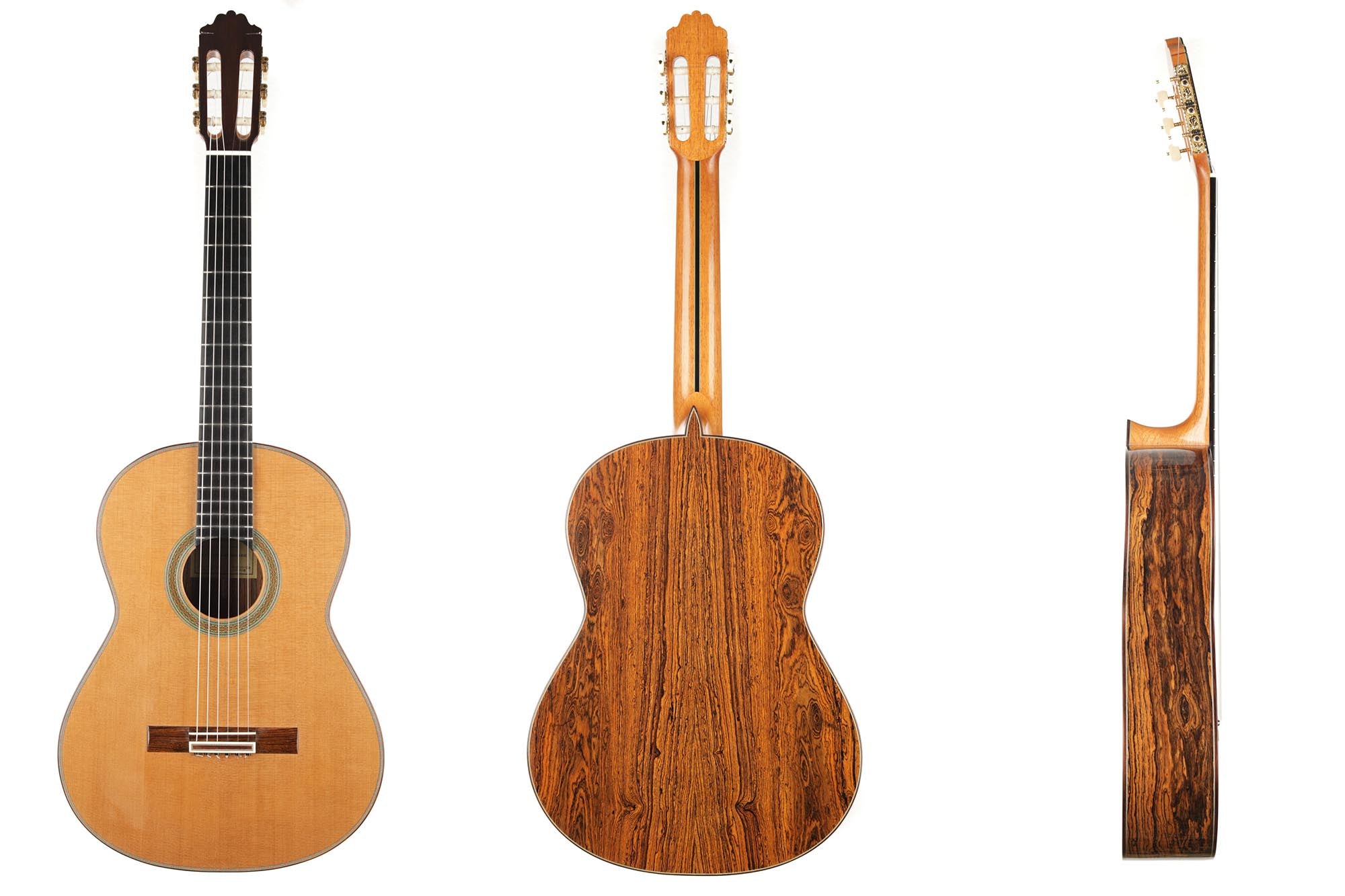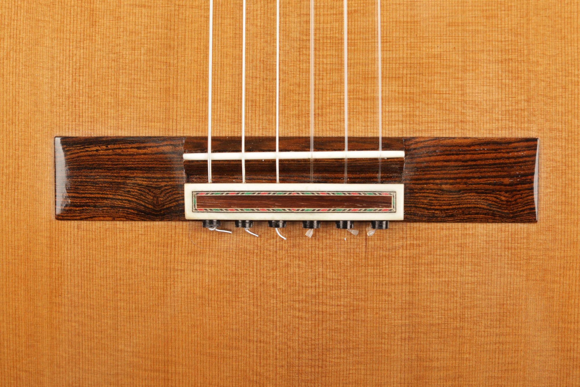 The Model 50 from Bernabe offers a variety of intriguing qualities. Stunning woods combined with an excellent craftsmanship result in an overall inspiring guitar. The curly grain of the Bocote rosewood is an absolute eye-catcher. Creamy smooth trebles with a lyrical Spanish sense mixed with the strong fundamental basses capture the perfect mix between a modern guitar and a traditional tone. The volume is pleasant and plenty for any required situation, Bernabe’s guitars are always easy to play and have a smooth setup. When playing on this guitar you immediately notice how responsive it is, the cedar top creates angelic overtones that fill a room with a beautiful shimmer.