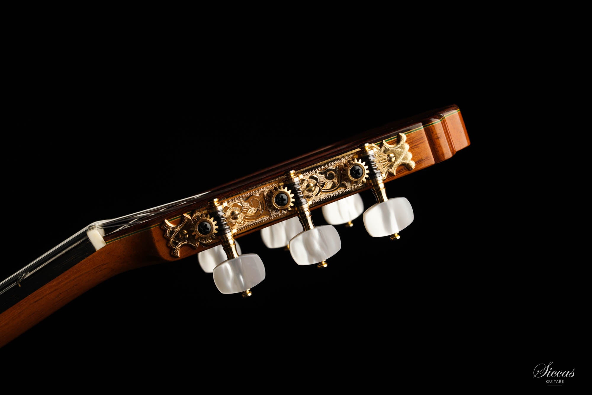 Das Modell 50 von Bernabe bietet eine Vielzahl faszinierender Eigenschaften. Atemberaubende Hölzer kombiniert mit einer exzellenten Handwerkskunst ergeben eine insgesamt inspirierende Gitarre. Die gewundene Maserung des Bocote Holzes ist ein absoluter Hingucker. Geschmeidige Höhen mit einem lyrischen, spanischen Charakter, gemischt mit den starken Grundbässen, ergeben die perfekte Mischung zwischen einer modernen Gitarre und einem traditionellen Ton. Die Lautstärke ist ansprechend und bietet für jede gewünschte Situation genügend Möglichkeiten. Bernabes Gitarren sind immer leicht zu spielen und haben ein angenehmes Setup. Beim Spielen auf dieser Gitarre merkt man sofort, wie ansprechend sie ist. Die Zederndecke erzeugt himmlische Obertöne, die einen Raum mit einem schönen Schillern erfüllen.