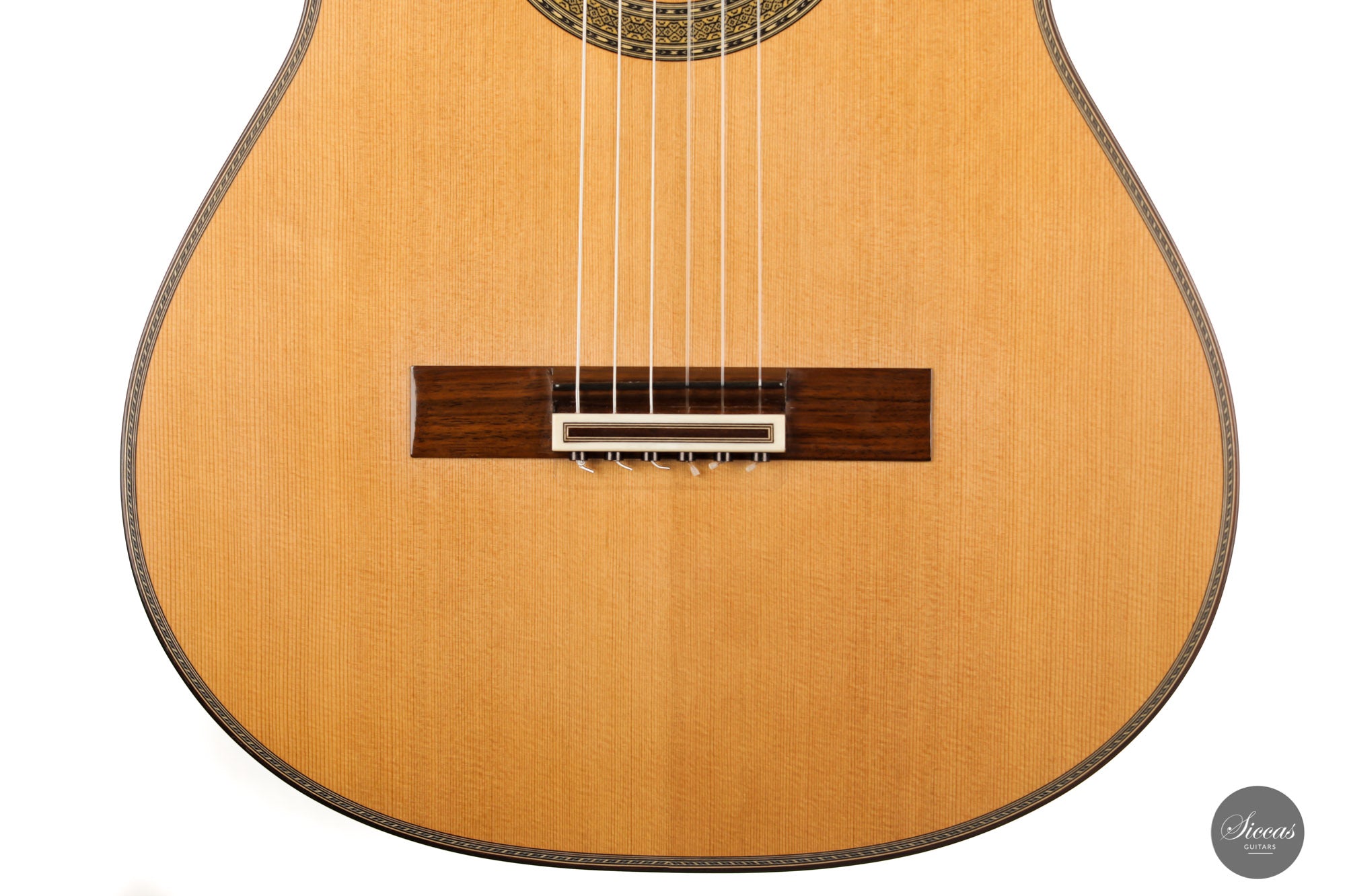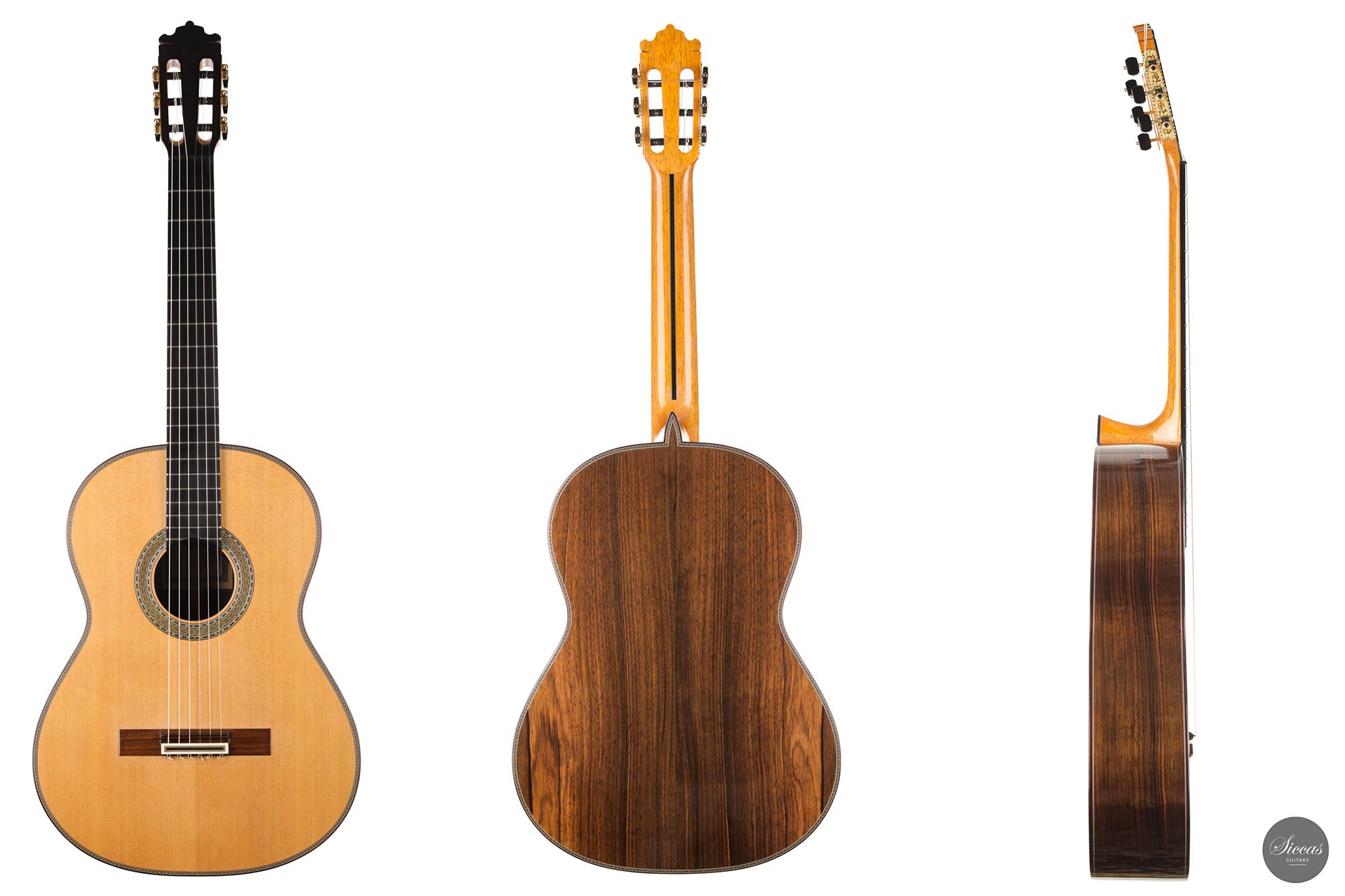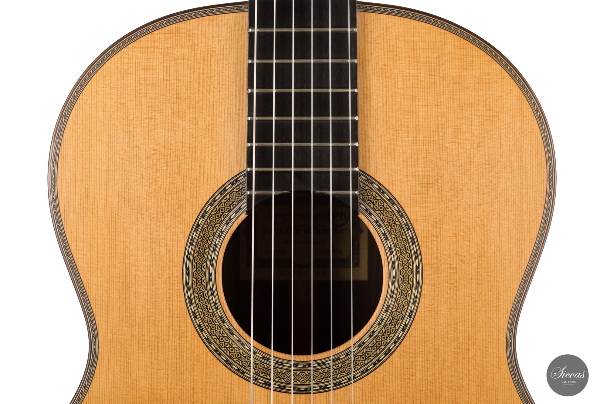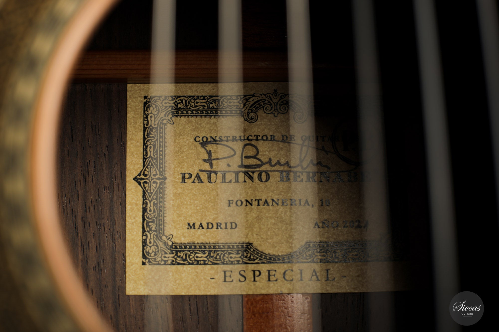 The Especial model is one of the most emblematic guitars build by Paulino Bernabe. It is a first-class concert guitar that unites all the must-have qualities of a great instrument, displaying a brilliant powerful tone, an exceedingly broad spectrum of sound-color possibilities, a great dynamic range, and fluid playability. This instrument has cypress double sides and a traditional typical Bernabe bracing. The woods were chosen with the outermost strict requirements and the setup offers ideal left-hand comfort. It is definitely an established model among professional guitarist and this very guitar shows why P. Bernabe’s guitars are among the best Spanish instruments.