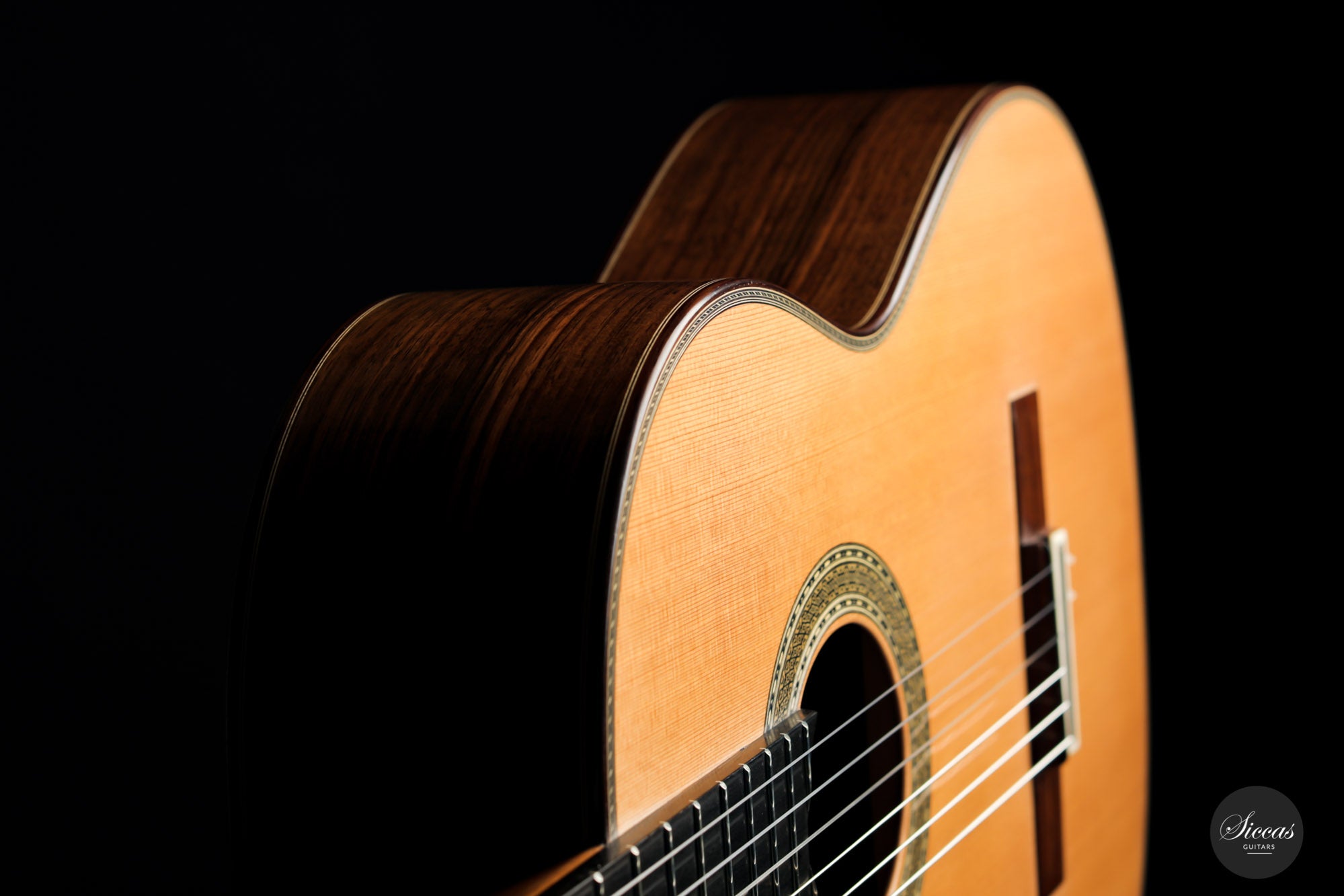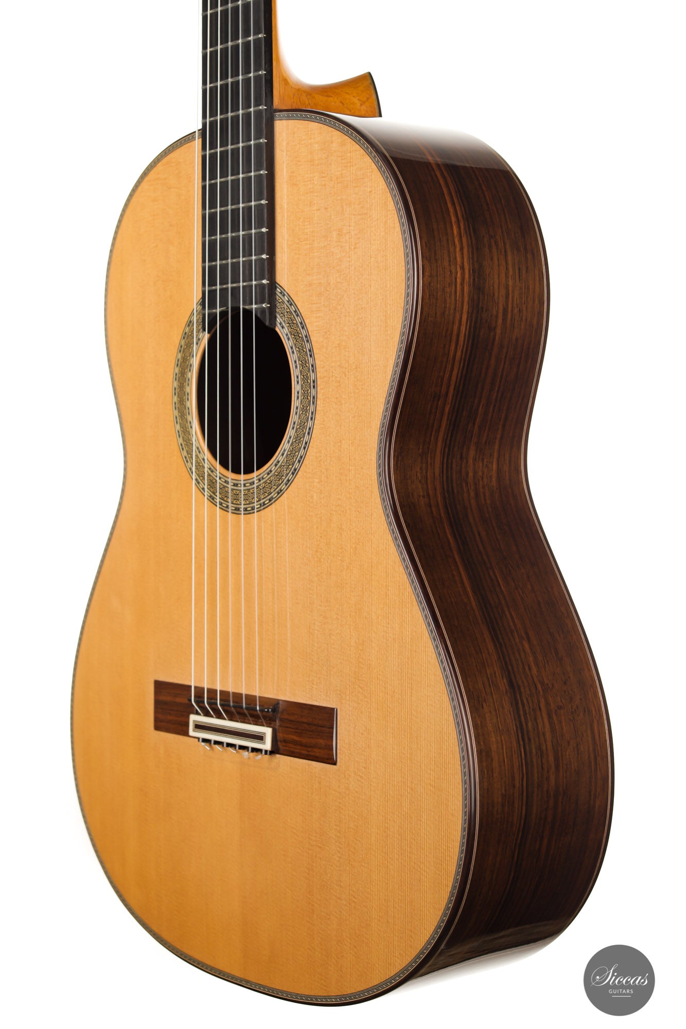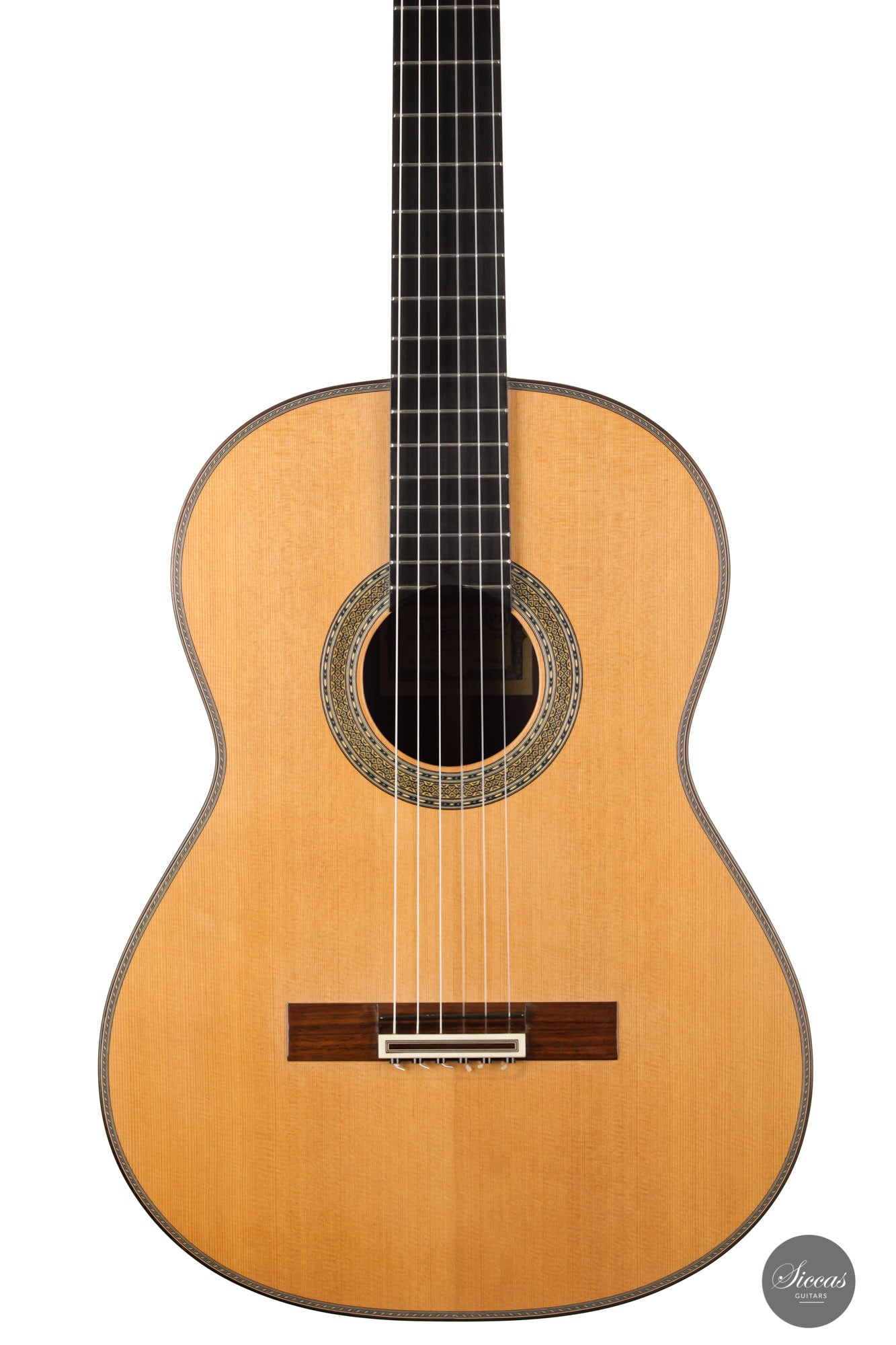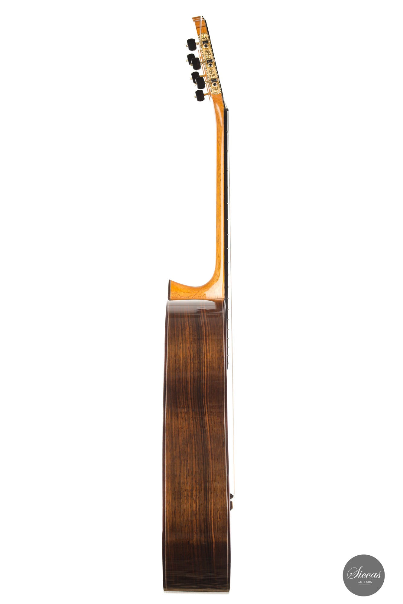The Especial model is one of the most emblematic guitars build by Paulino Bernabe. It is a first-class concert guitar that unites all the must-have qualities of a great instrument, displaying a brilliant powerful tone, an exceedingly broad spectrum of sound-color possibilities, a great dynamic range, and fluid playability. This instrument has cypress double sides and a traditional typical Bernabe bracing. The woods were chosen with the outermost strict requirements and the setup offers ideal left-hand comfort. It is definitely an established model among professional guitarist and this very guitar shows why P. Bernabe’s guitars are among the best Spanish instruments.