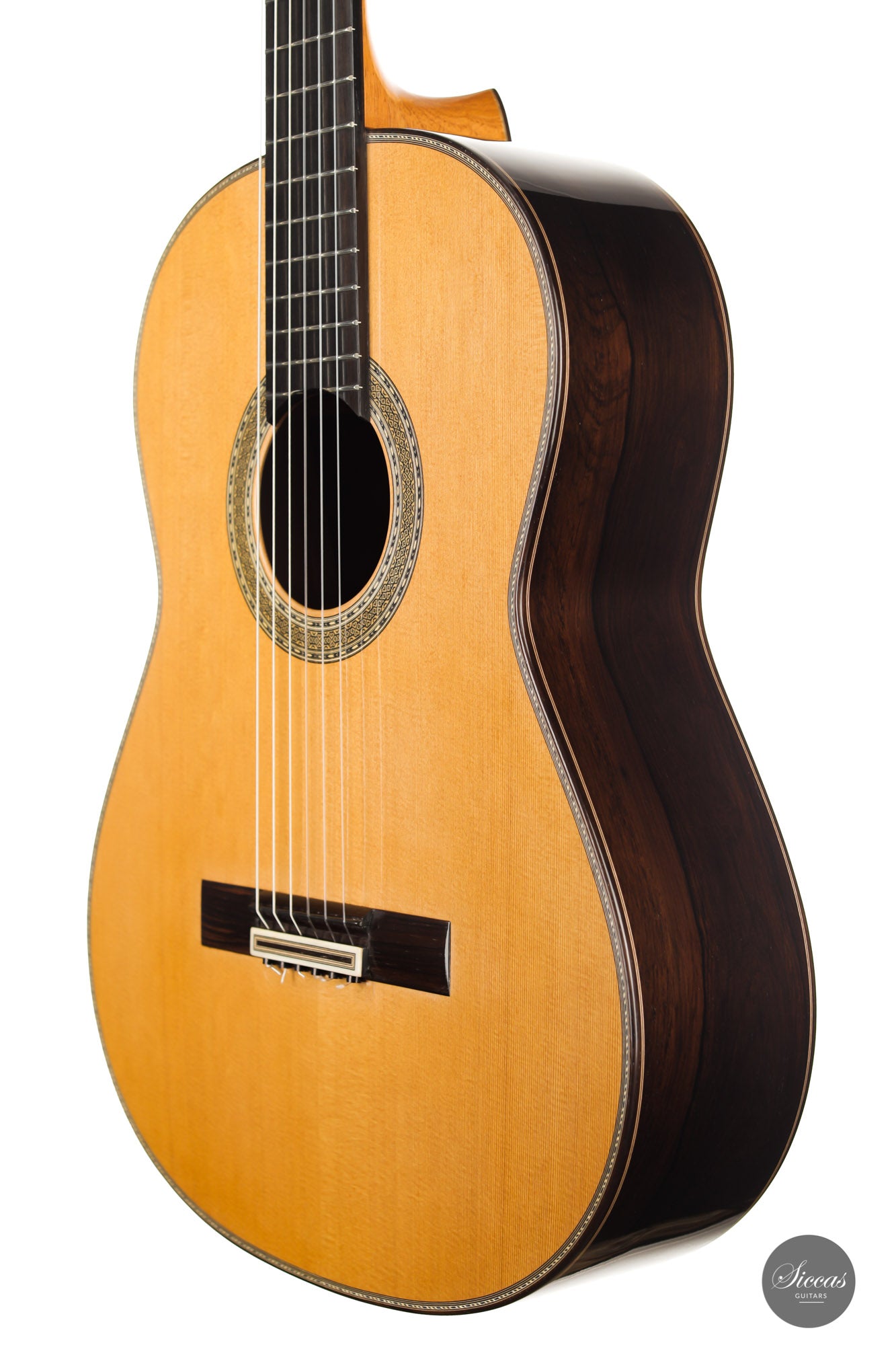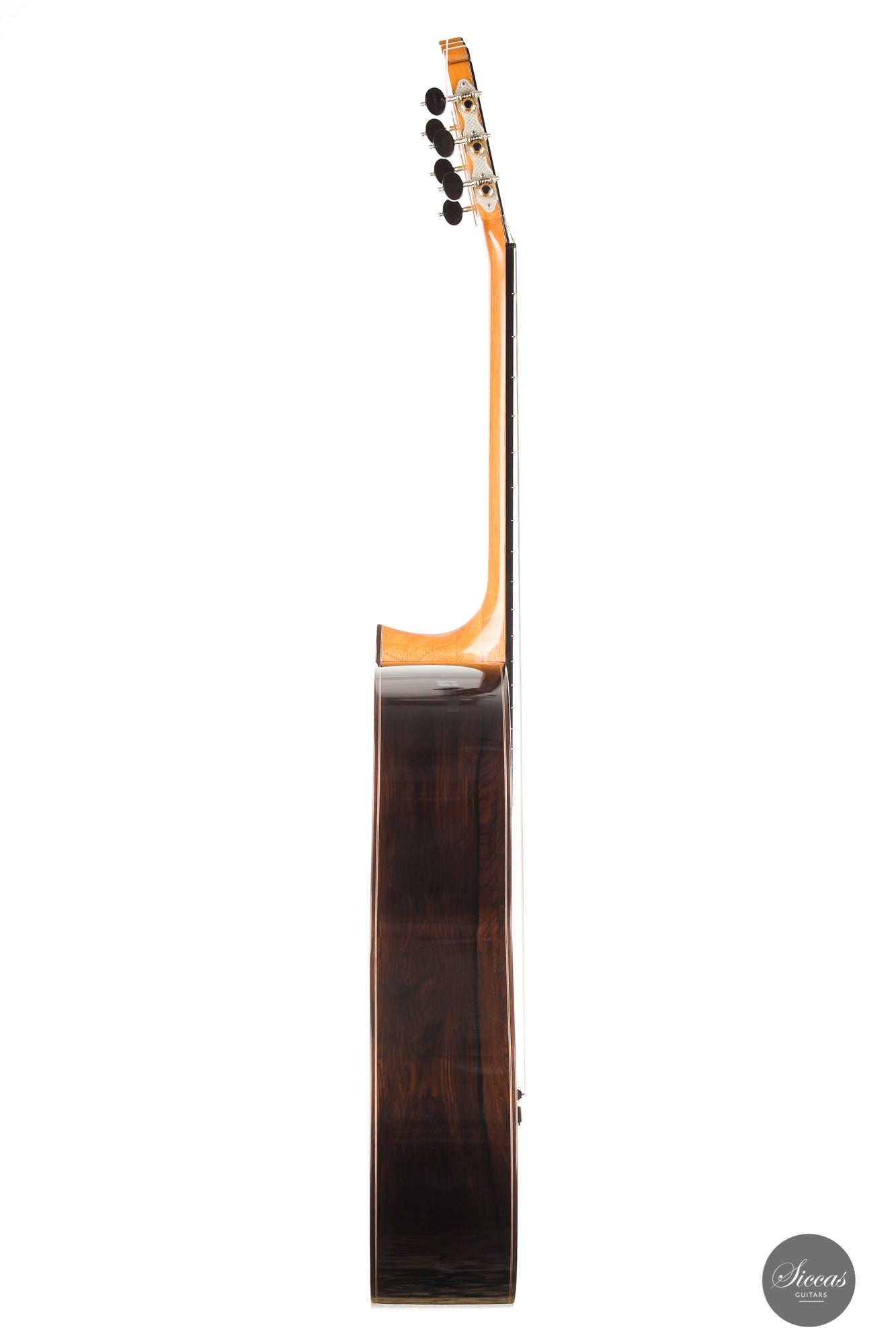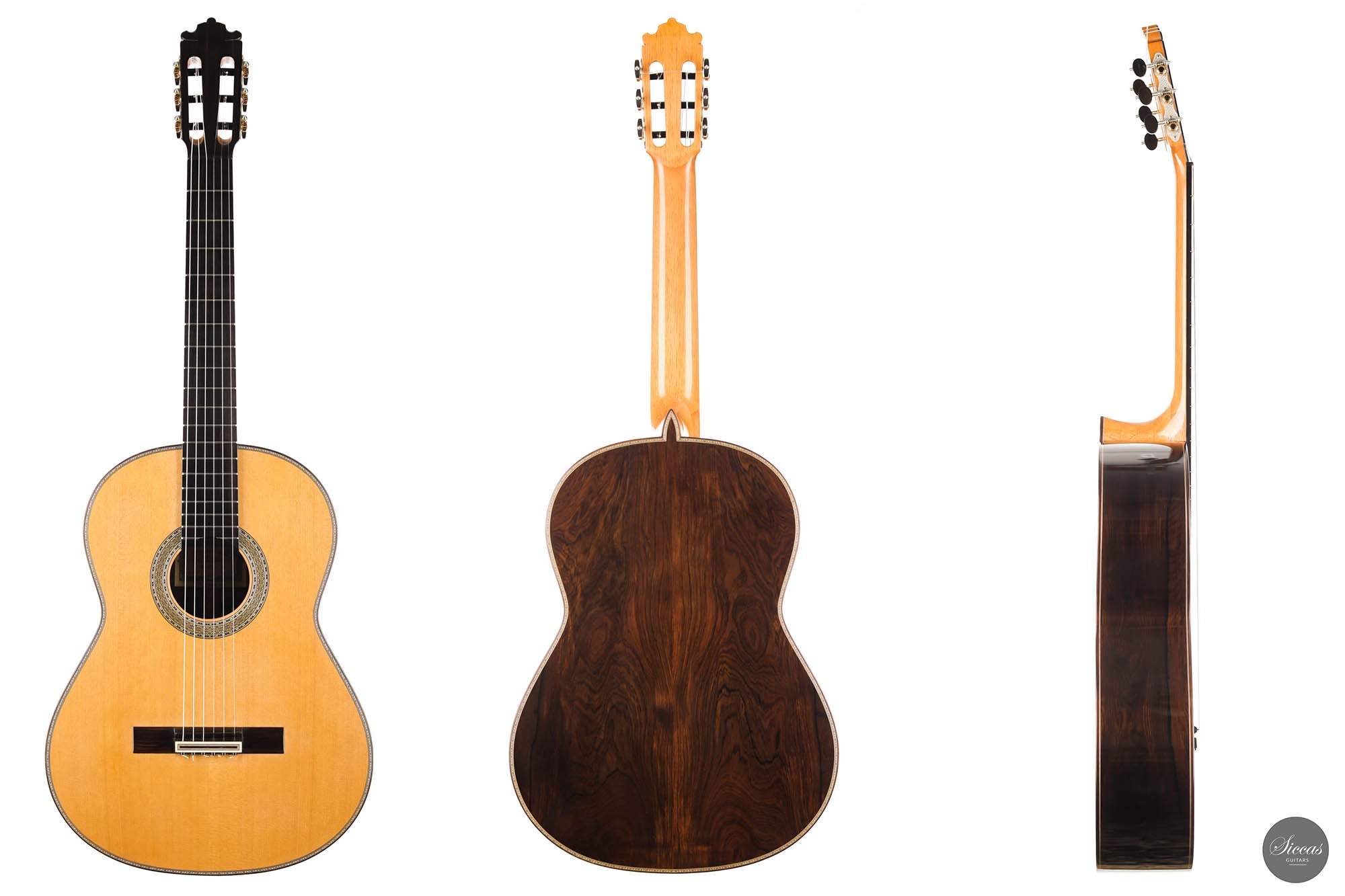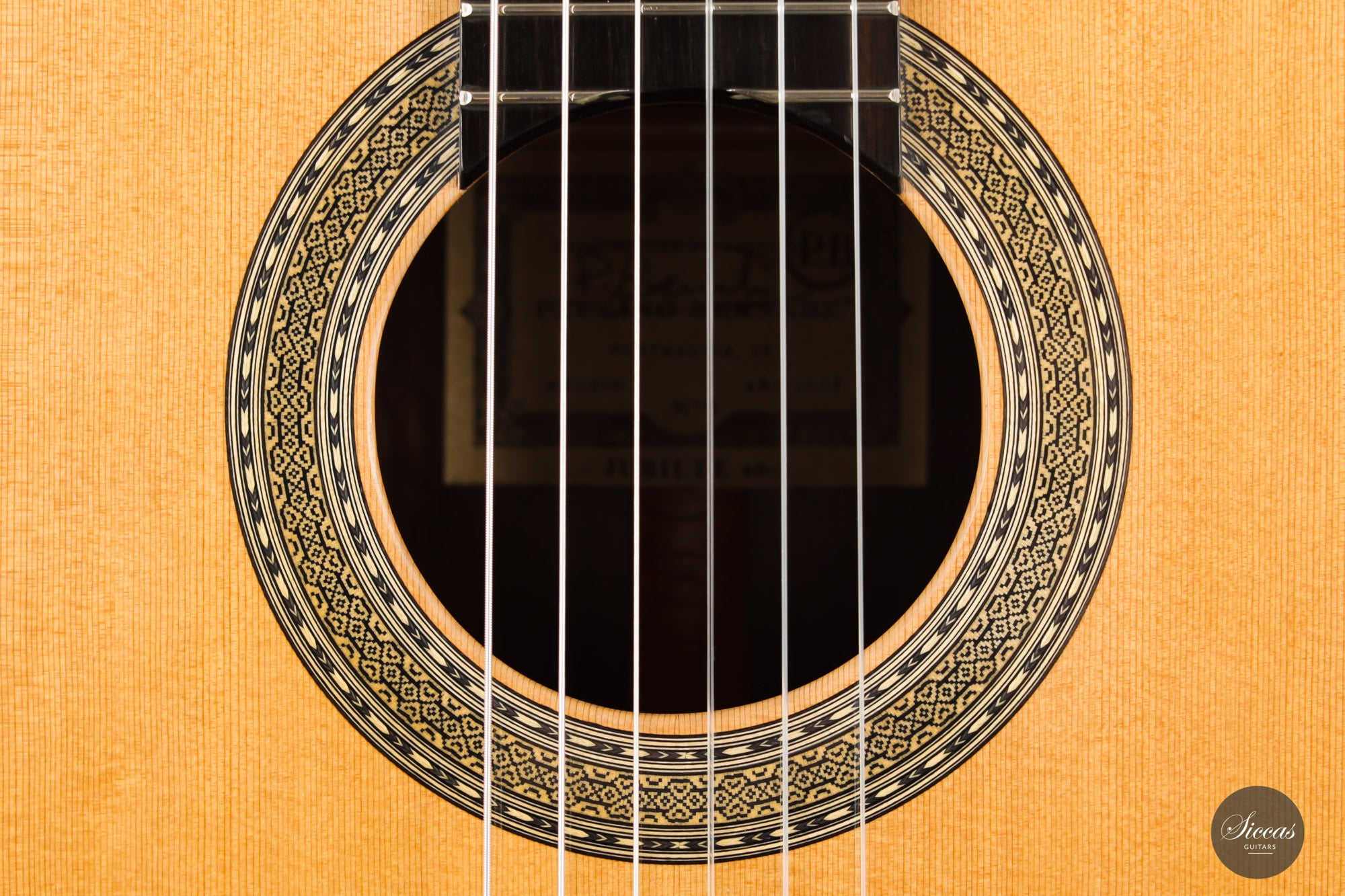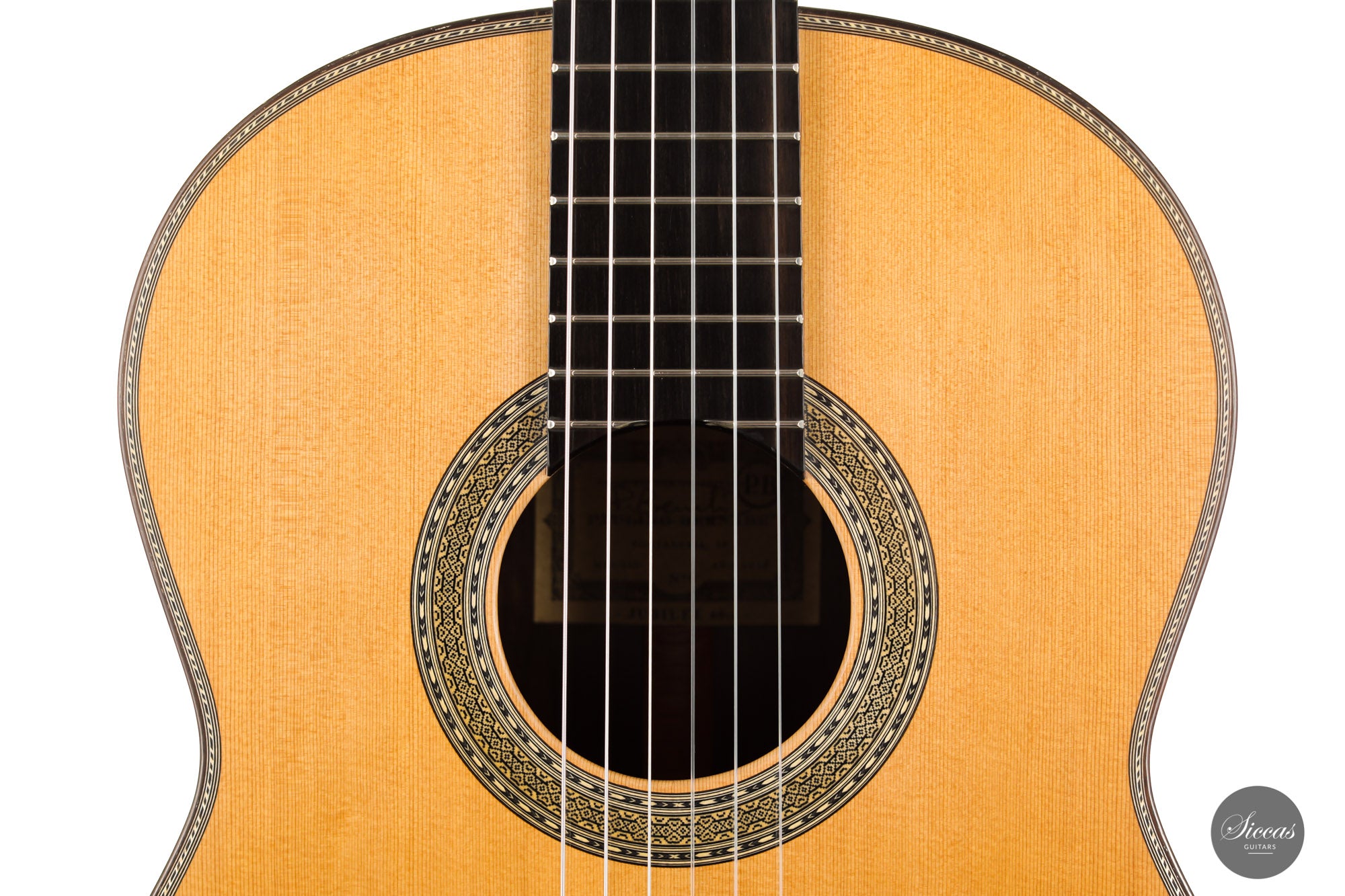 The Jubilee model is a beautiful special edition by Paulino Bernabé Jr. commemorating his 60th birthday this year 2020. This Jubilee guitar is also a reminder of the Maestro's many years of passionate work, combining all his experience and craftsmanship with specially selected and rare woods, from old stocks that are a small treasure in themselves. This instrument is the third guitar in the Jubilee Series and the only one built with Cites-certified Rio Rosewood. It is a great instrument with filigree and generous ornamentation. It has all the depth and subtlety of the typical Bernabé sound, with excellent and expressive volume and perfect playability.