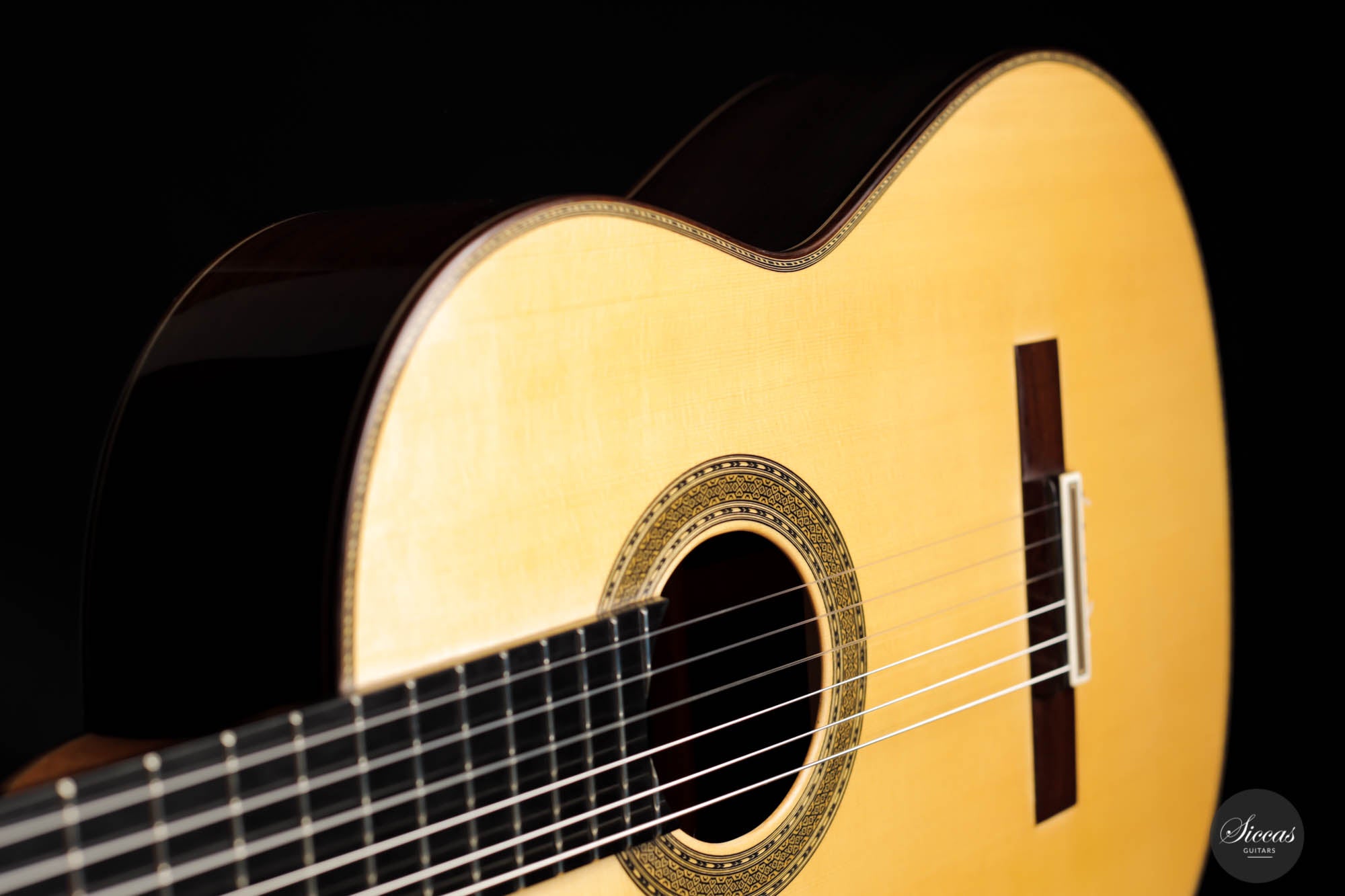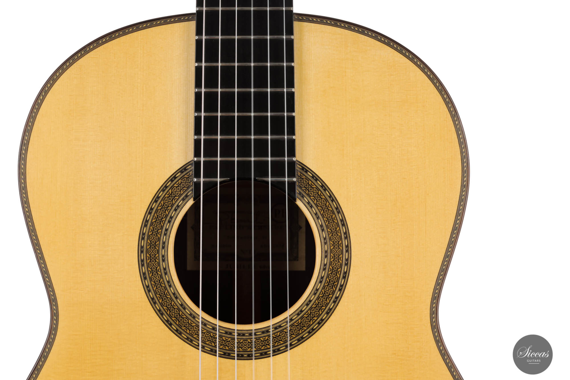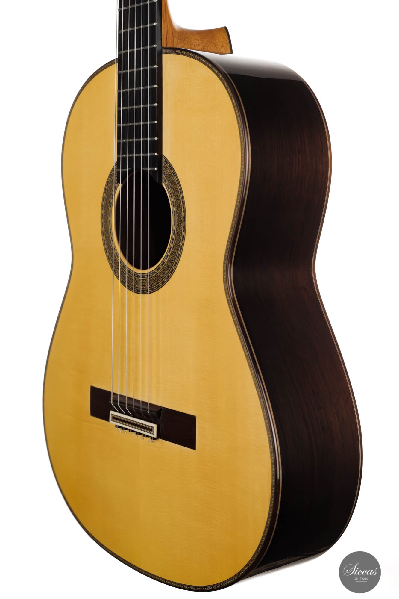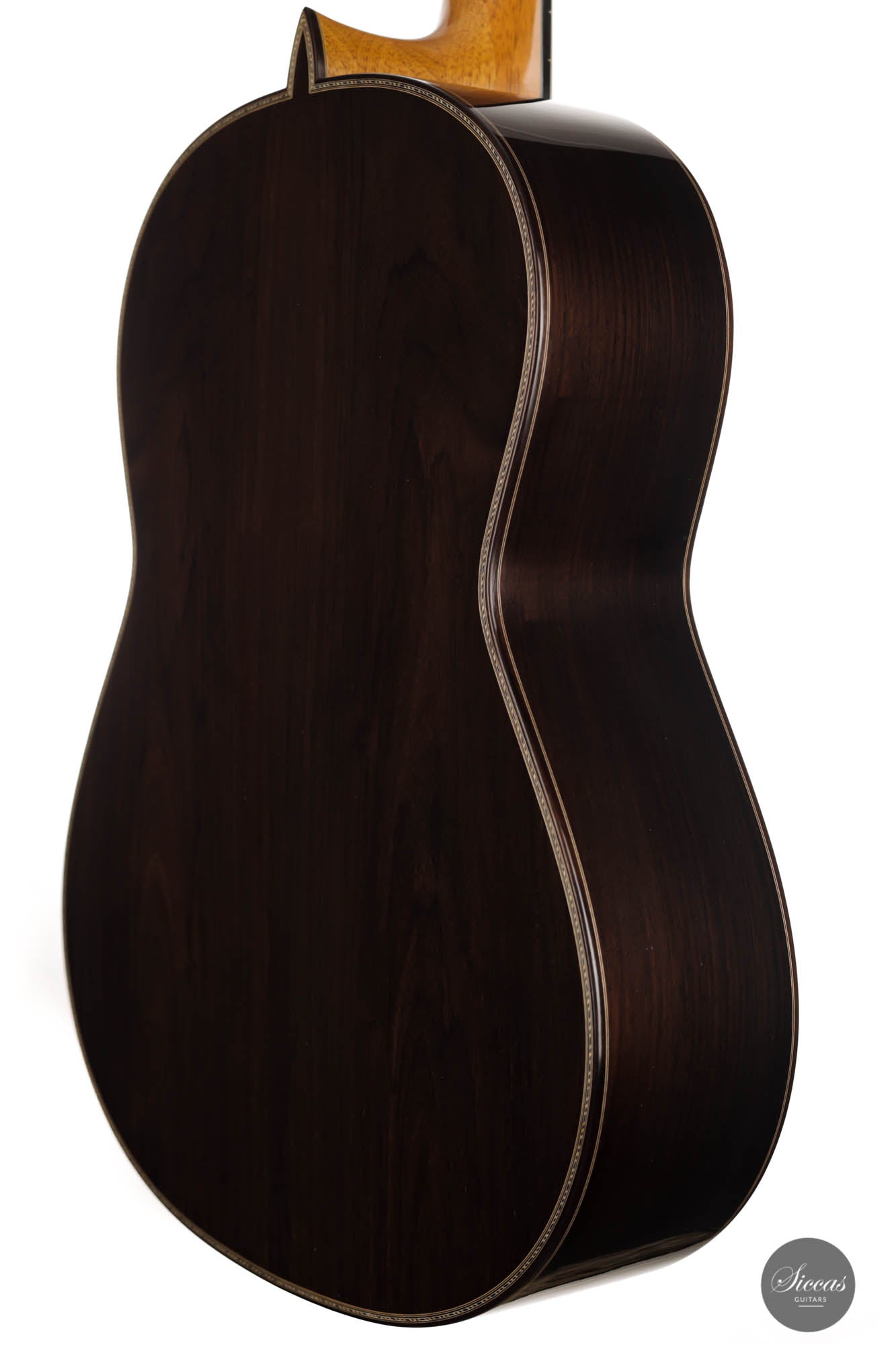 The Jubilee model is a beautiful special edition by Paulino Bernabé Jr. commemorating his 60th birthday this year 2020. This Jubilee guitar is also a reminder of the Maestro's many years of passionate work, combining all his experience and craftsmanship with specially selected and rare woods, from old stocks that are a small treasure in themselves. This instrument is the tenth guitar in the Jubilee Series and the only one built with Cites-certified Rio Rosewood. It is a great instrument with filigree and generous ornamentation. It has all the depth and subtlety of the typical Bernabé sound, with excellent and expressive volume and perfect playability.