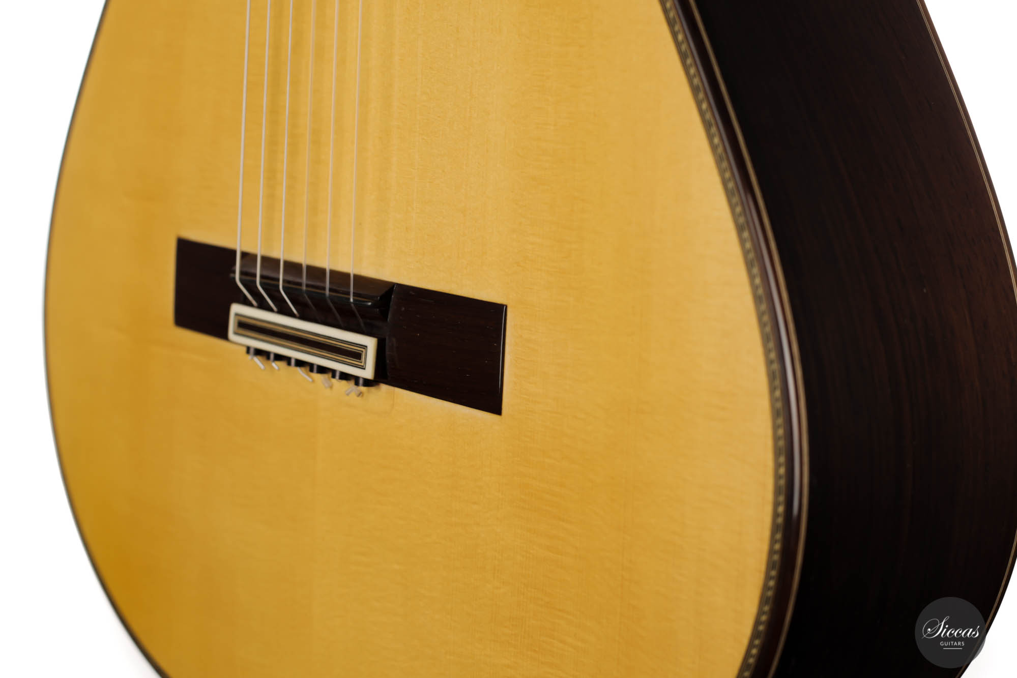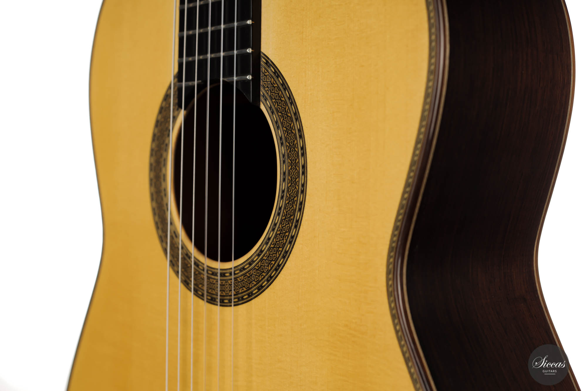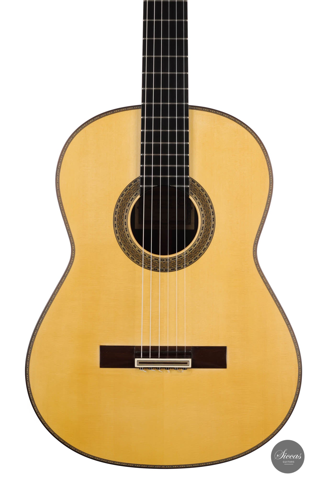 The Jubilee model is a beautiful special edition by Paulino Bernabé Jr. commemorating his 60th birthday this year 2020. This Jubilee guitar is also a reminder of the Maestro's many years of passionate work, combining all his experience and craftsmanship with specially selected and rare woods, from old stocks that are a small treasure in themselves. This instrument is the tenth guitar in the Jubilee Series and the only one built with Cites-certified Rio Rosewood. It is a great instrument with filigree and generous ornamentation. It has all the depth and subtlety of the typical Bernabé sound, with excellent and expressive volume and perfect playability.