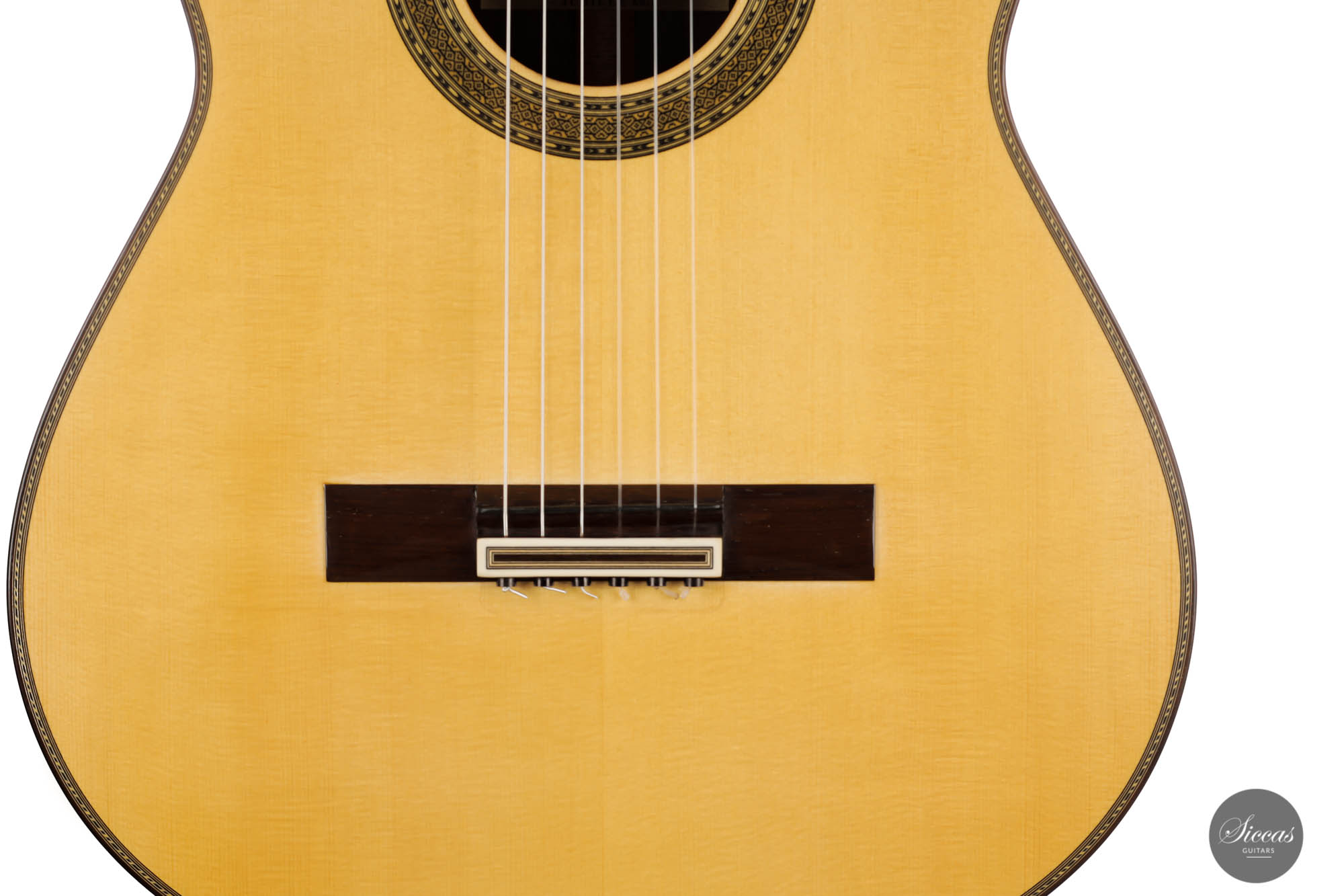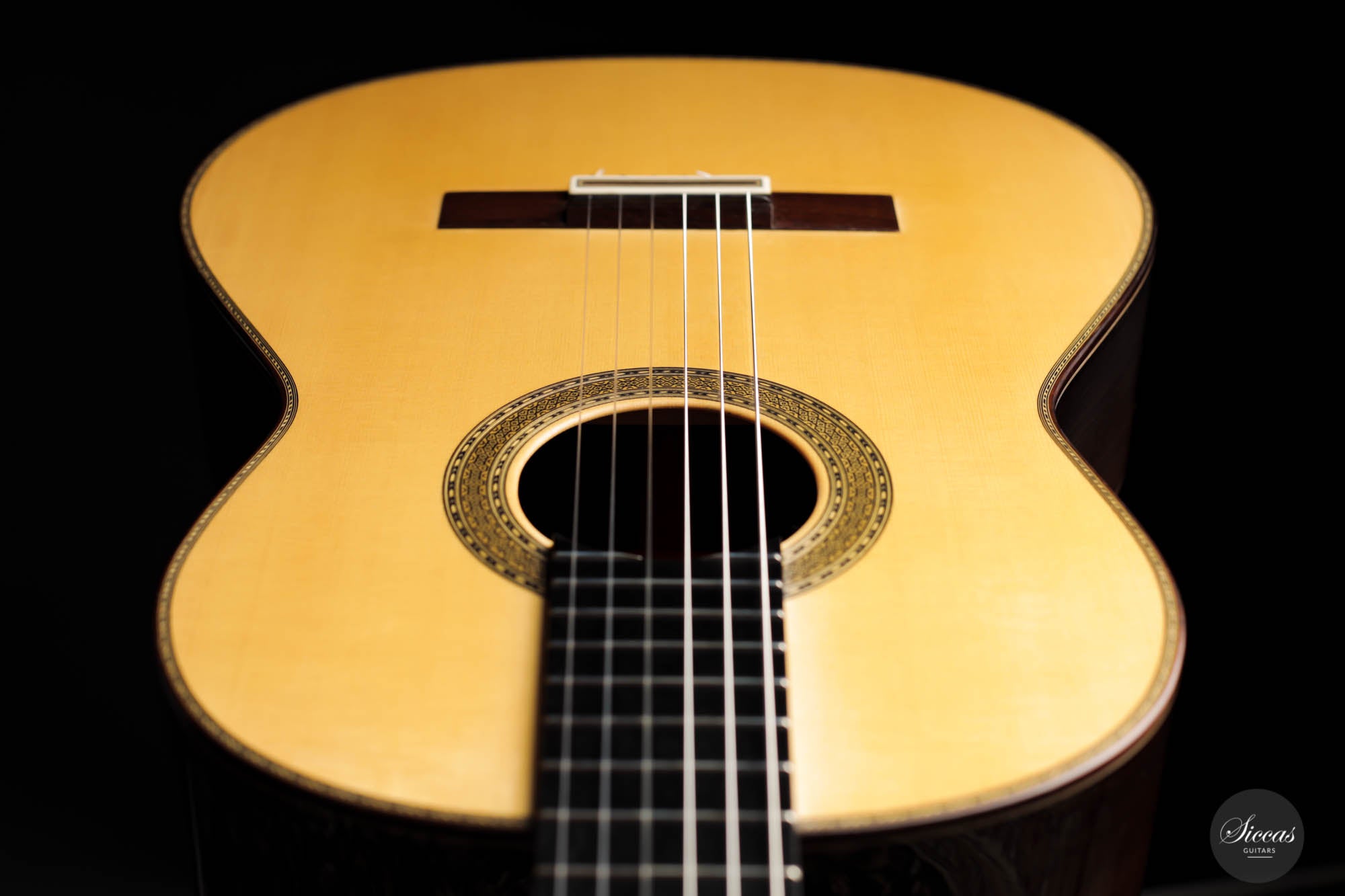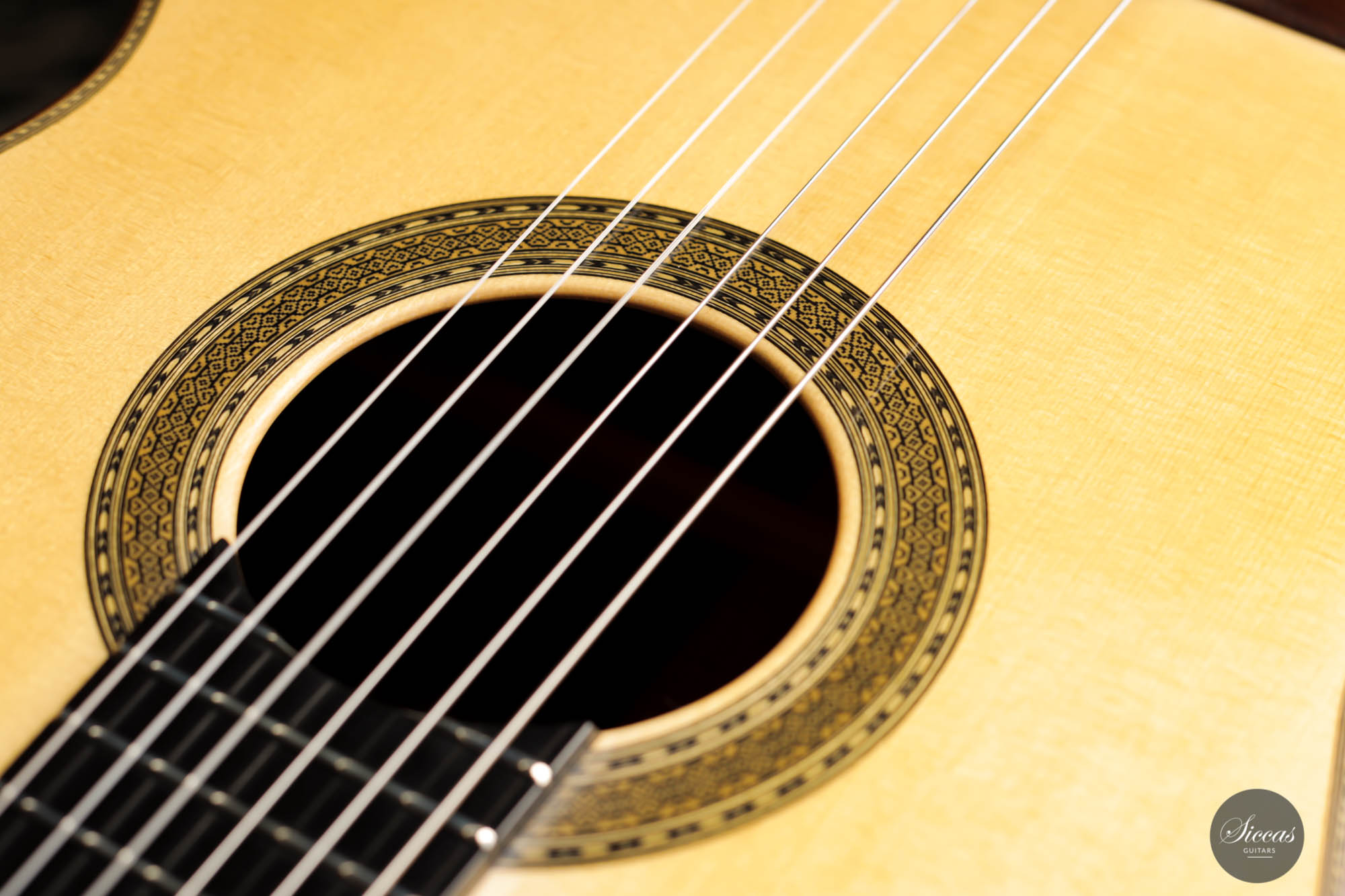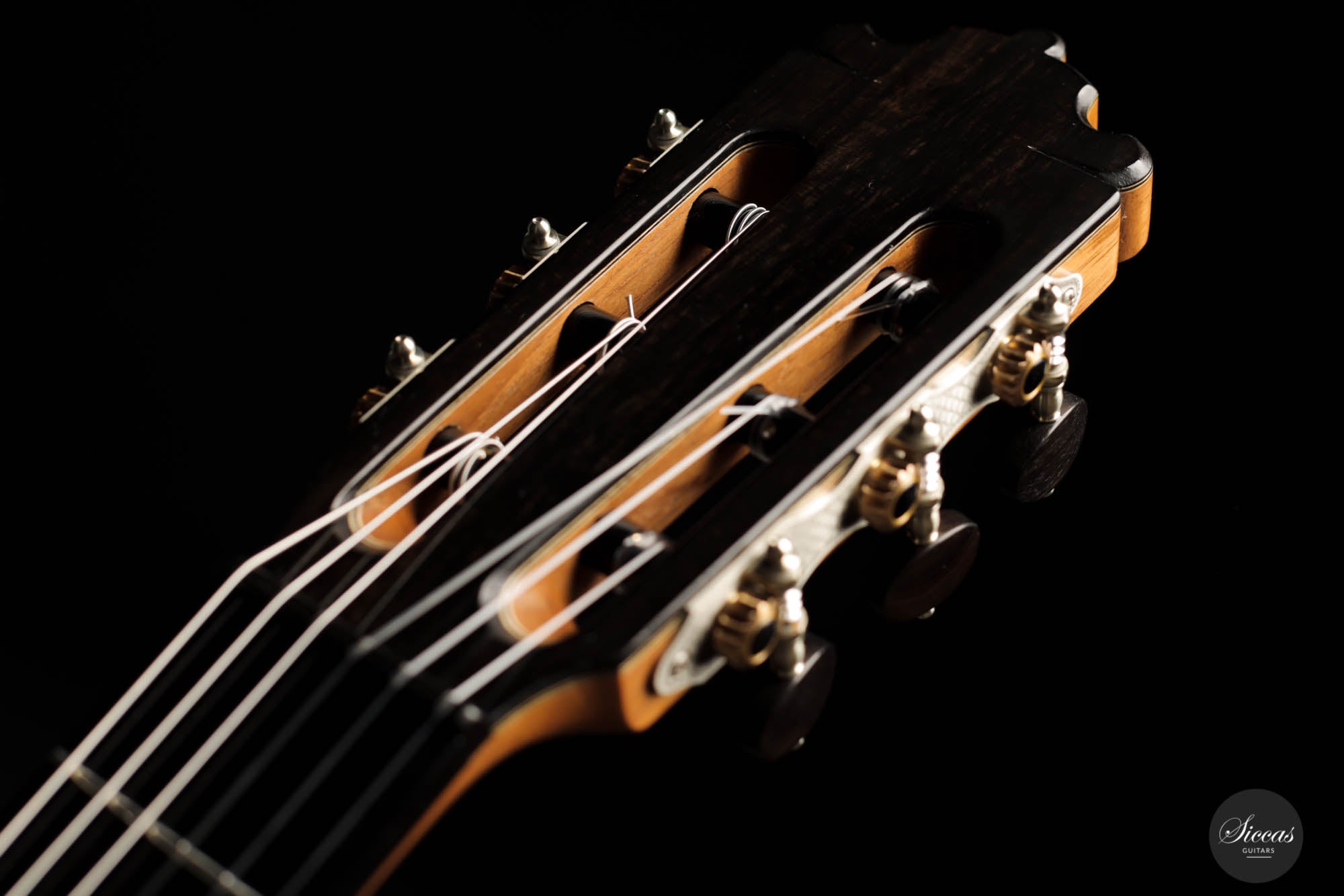 The Jubilee model is a beautiful special edition by Paulino Bernabé Jr. commemorating his 60th birthday this year 2020. This Jubilee guitar is also a reminder of the Maestro's many years of passionate work, combining all his experience and craftsmanship with specially selected and rare woods, from old stocks that are a small treasure in themselves. This instrument is the tenth guitar in the Jubilee Series and the only one built with Cites-certified Rio Rosewood. It is a great instrument with filigree and generous ornamentation. It has all the depth and subtlety of the typical Bernabé sound, with excellent and expressive volume and perfect playability.