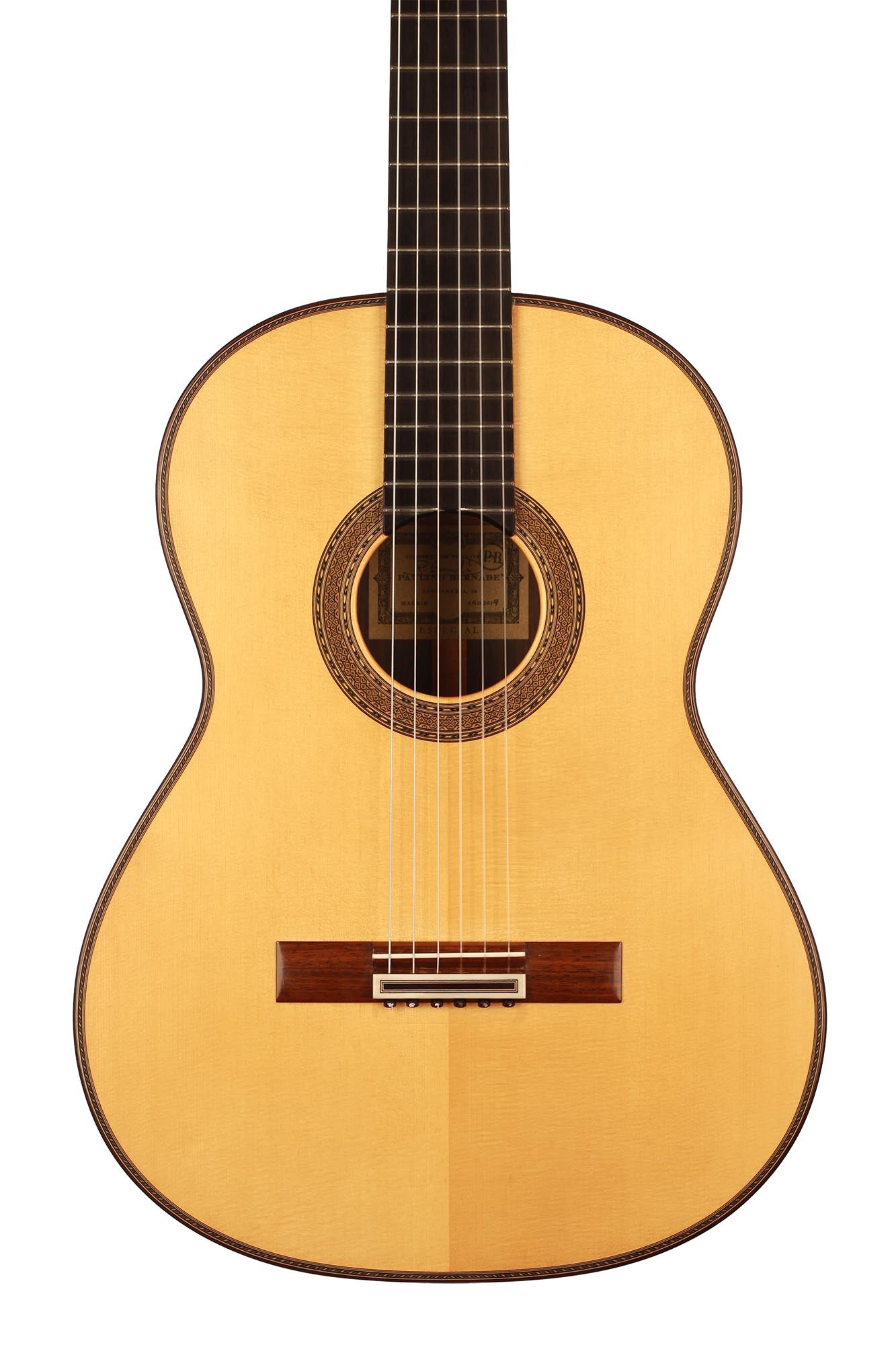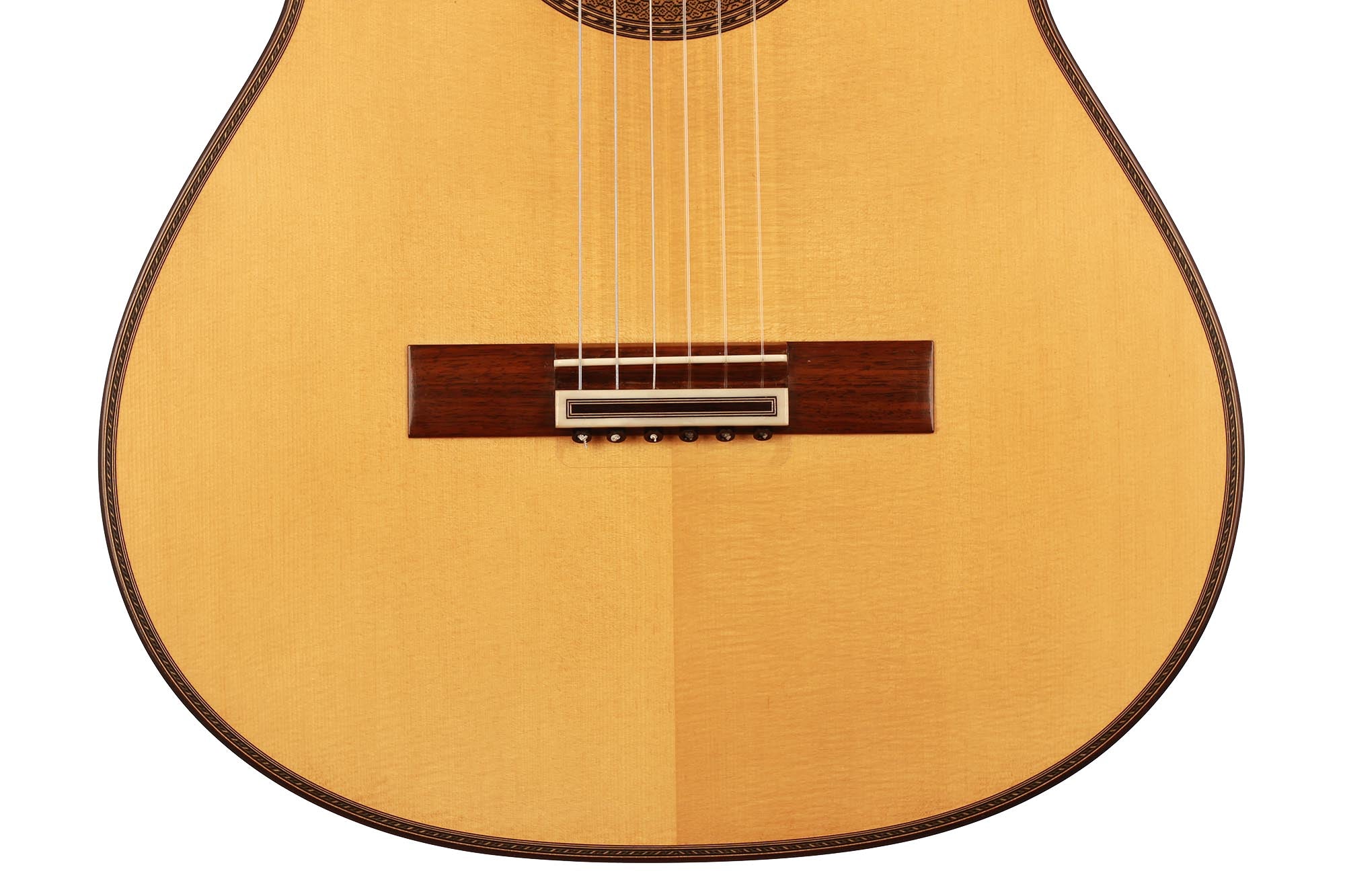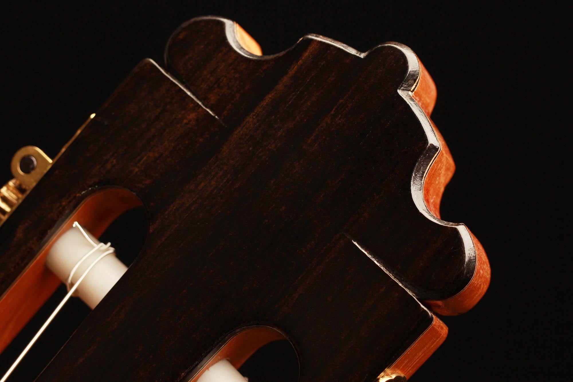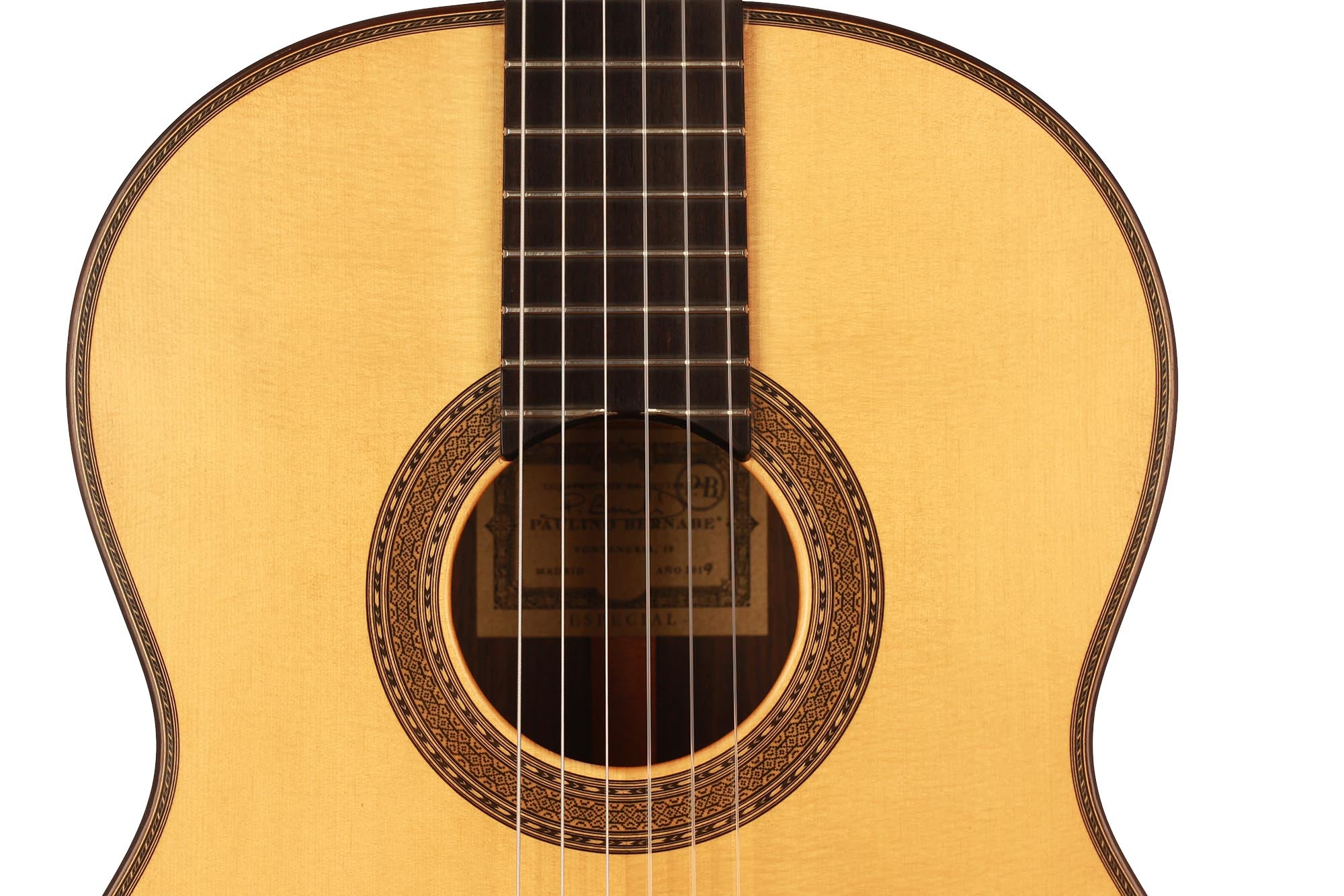 Das Especial-Modell ist eine der charakteristischsten Gitarren aus dem Hause Paulino Bernabe. Es handelt sich um eine erstklassige Konzertgitarre, die alle Eigenschaften eines großen Instruments vereint und einen brillanten, kraftvollen Klang, ein überaus breites Spektrum an Klangfarbenmöglichkeiten, einen großen Dynamikumfang und eine hervorragende Spielbarkeit bietet. Die Zargen des Especial-Modells sind innen mit Zypresse gedoppelt, und die Decke hat eine typische traditionelle Bernabe-Beleistung. Die Hölzer wurden nach den anspruchsvollsten Kriterien ausgewählt und das Setup bietet einen idealen Komfort für die linke Hand. Es ist definitiv ein etabliertes Modell unter professionellen Gitarristen und gerade diese Gitarre zeigt, weshalb die Gitarren von P. Bernabe zu den besten spanischen Instrumenten gehören.