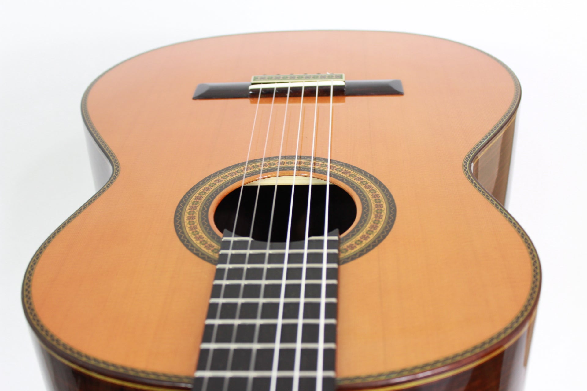 Die klassische Gitarre mit ihren weichen Nylonsaiten und ihrem charakteristischen Timbre ist zum Symbol der Kammermusik, der spanischen Tradition und des Konzertrepertoires geworden. Ihre moderne Form prägte Antonio de Torres im 19. Jahrhundert, indem er den Standard für Korpus, Fächerbeleistung und die 65-Zentimeter-Mensur setzte, die bis heute verwendet werden. Instrumente dieser Kategorie eröffnen eine reiche Palette von den feinen romantischen Miniaturen Tárregas bis zu den majestätischen Konzerten Rodrigos. Hier finden Sie Gitarren, die historische Kontinuität bewahren und zugleich zu neuen Interpretationen anregen.Alle Produkte der Kollektion ansehen -