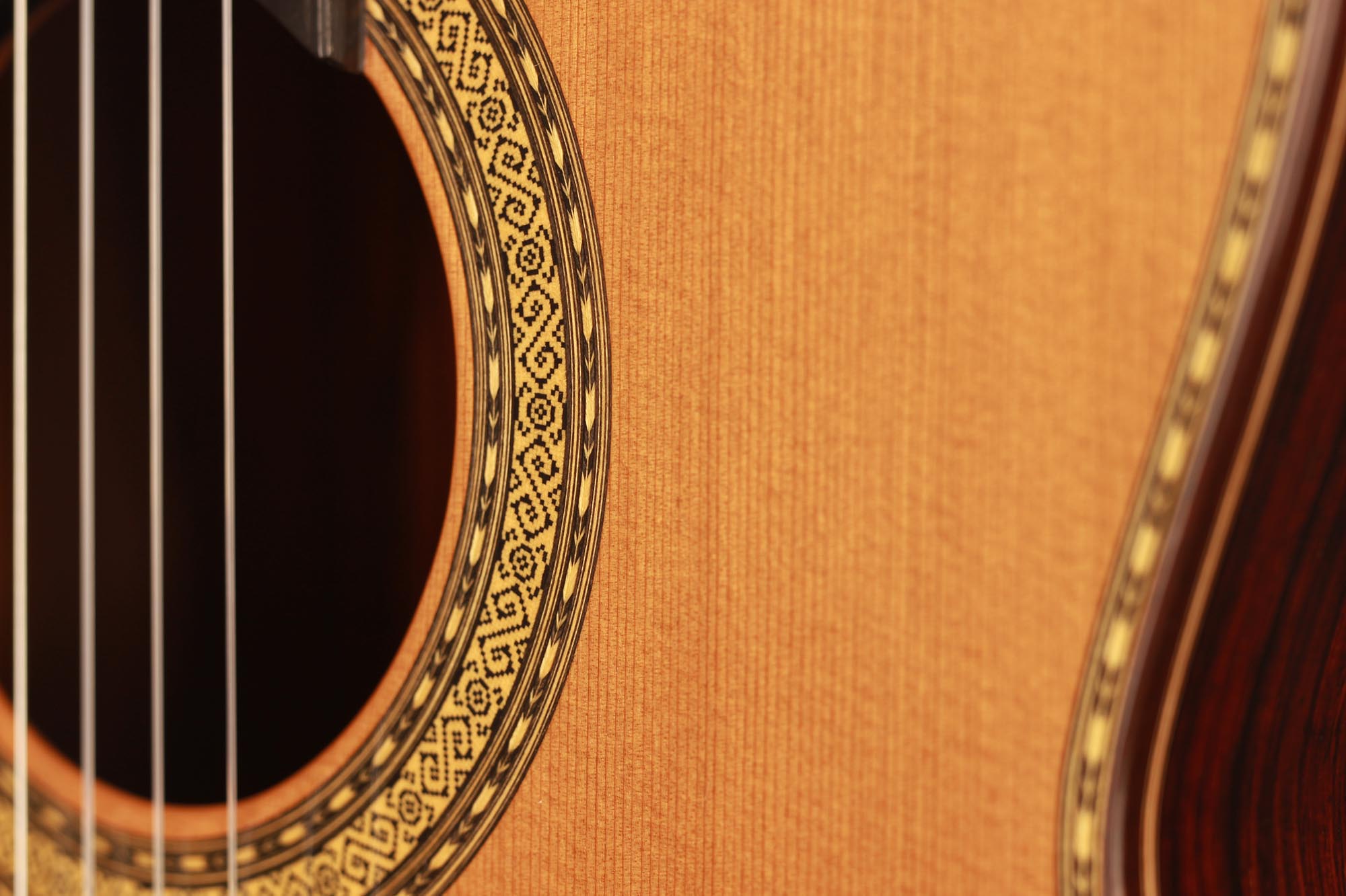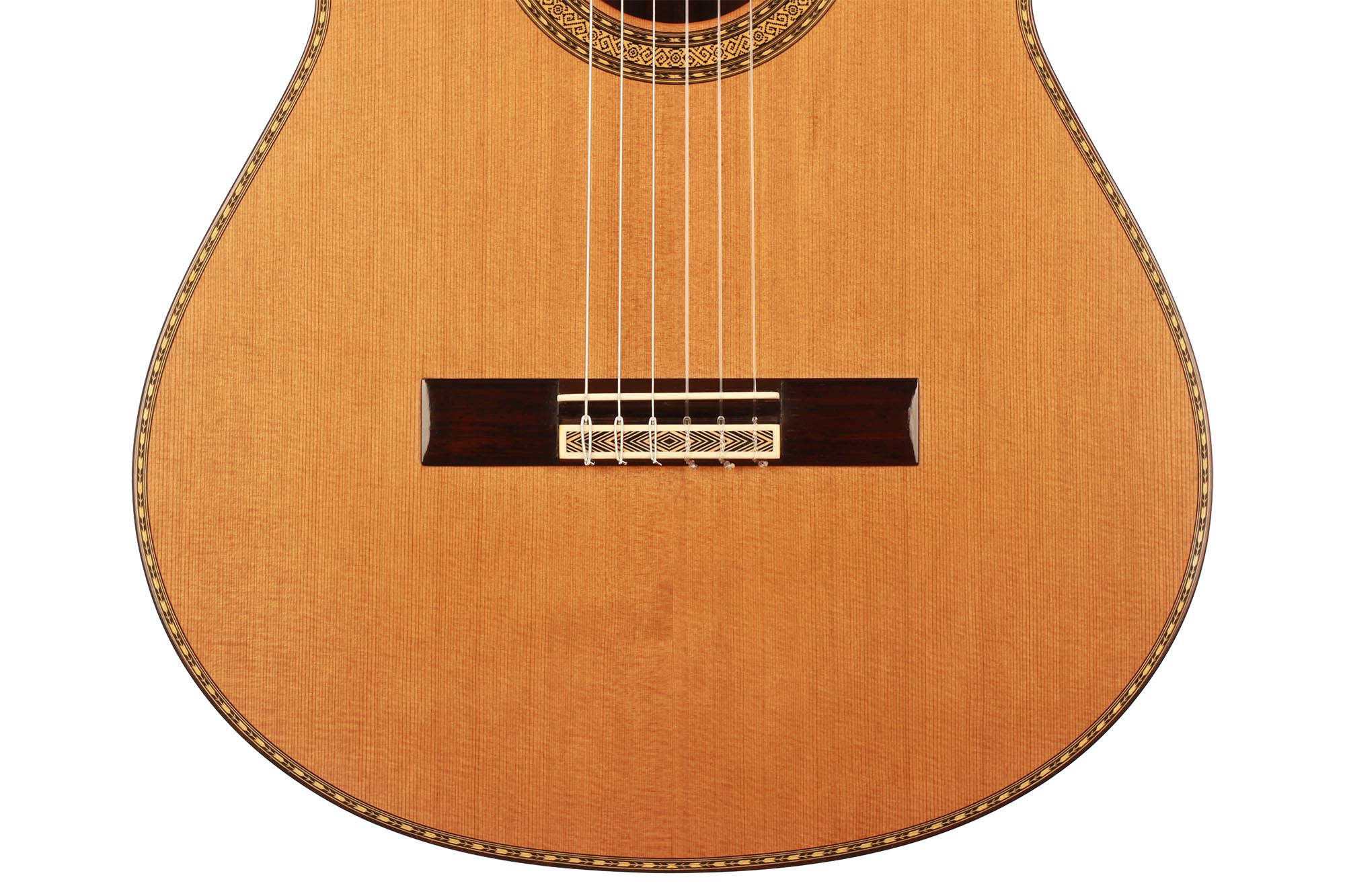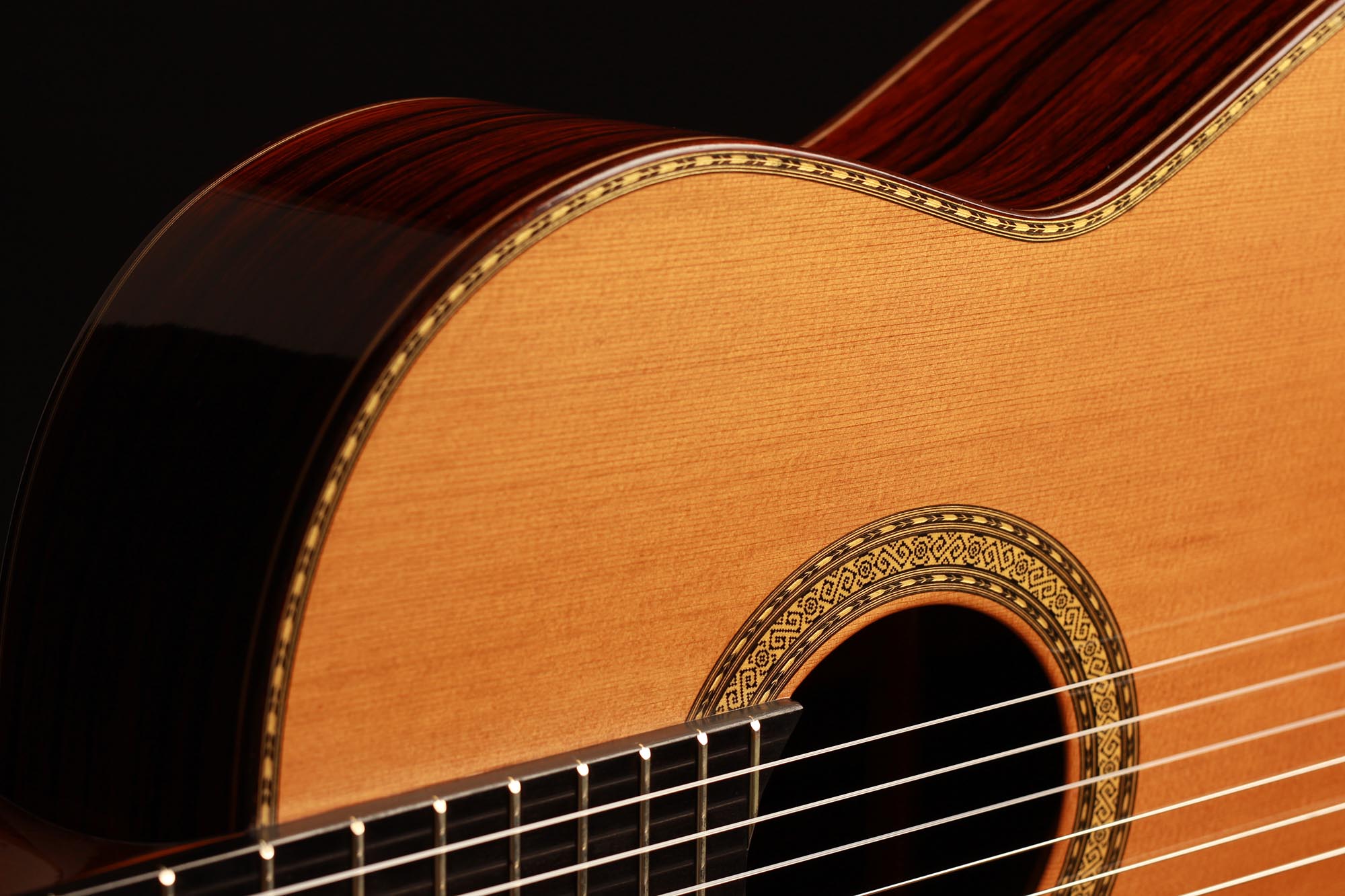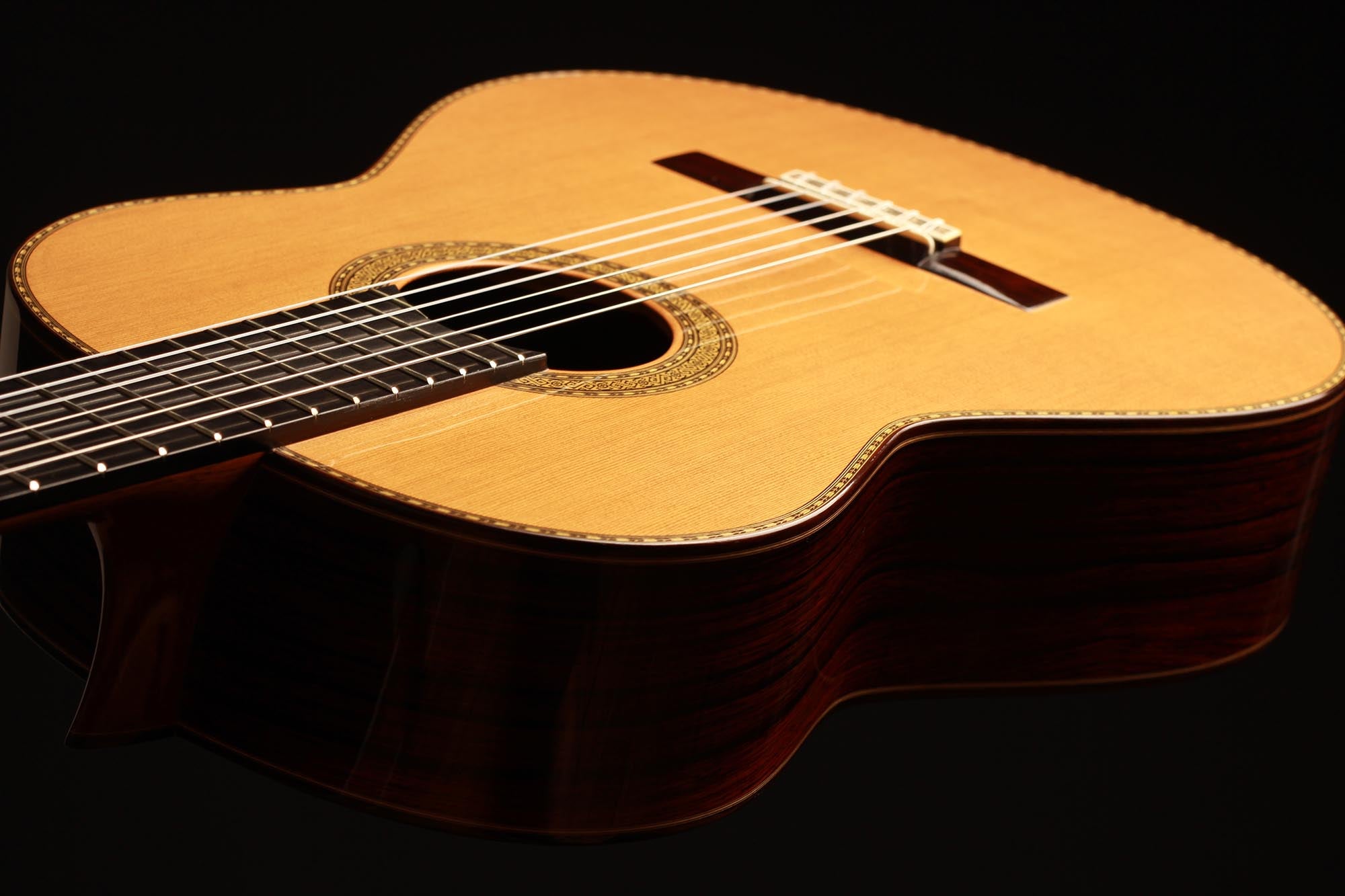 Ein kraftvoller, klarer und großzügiger Klang geht von diesem ganz besonderen Instrument aus. Die Reaktivität und Präzision des Klangs ermöglicht es dem Spieler, jede Art von Repertoire zu meistern, von südamerikanischer Musik bis hin zu barocken Tanzsuiten. Insgesamt ist dies eine sehr musikalische und lyrische Gitarre mit einem warmen, charmanten Ton und viel Eleganz im Ausdruck.