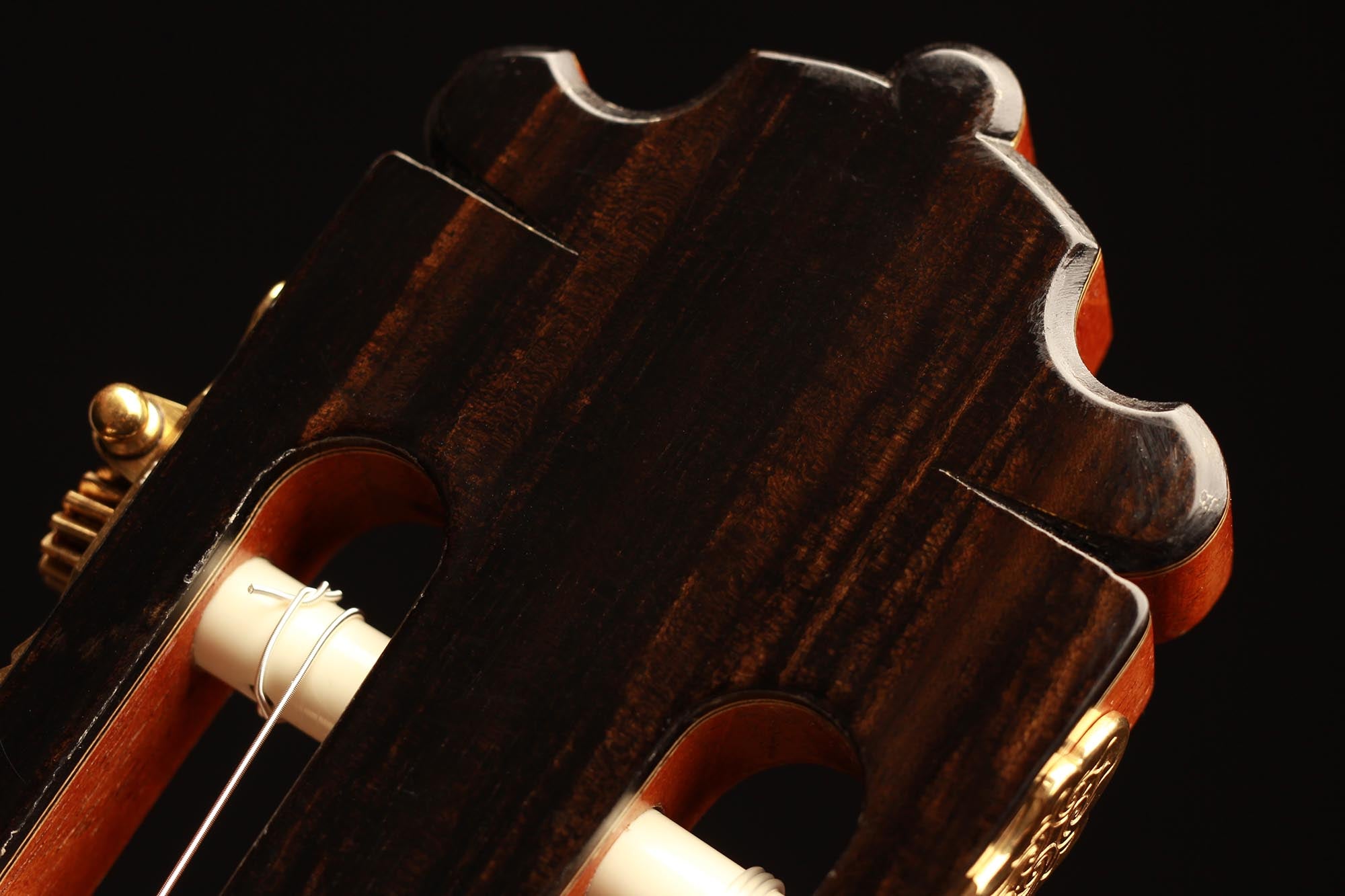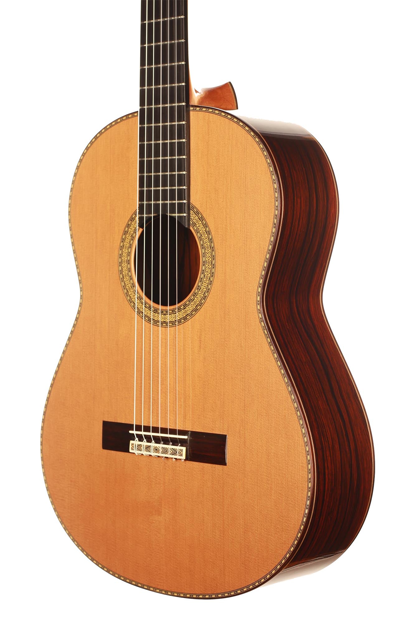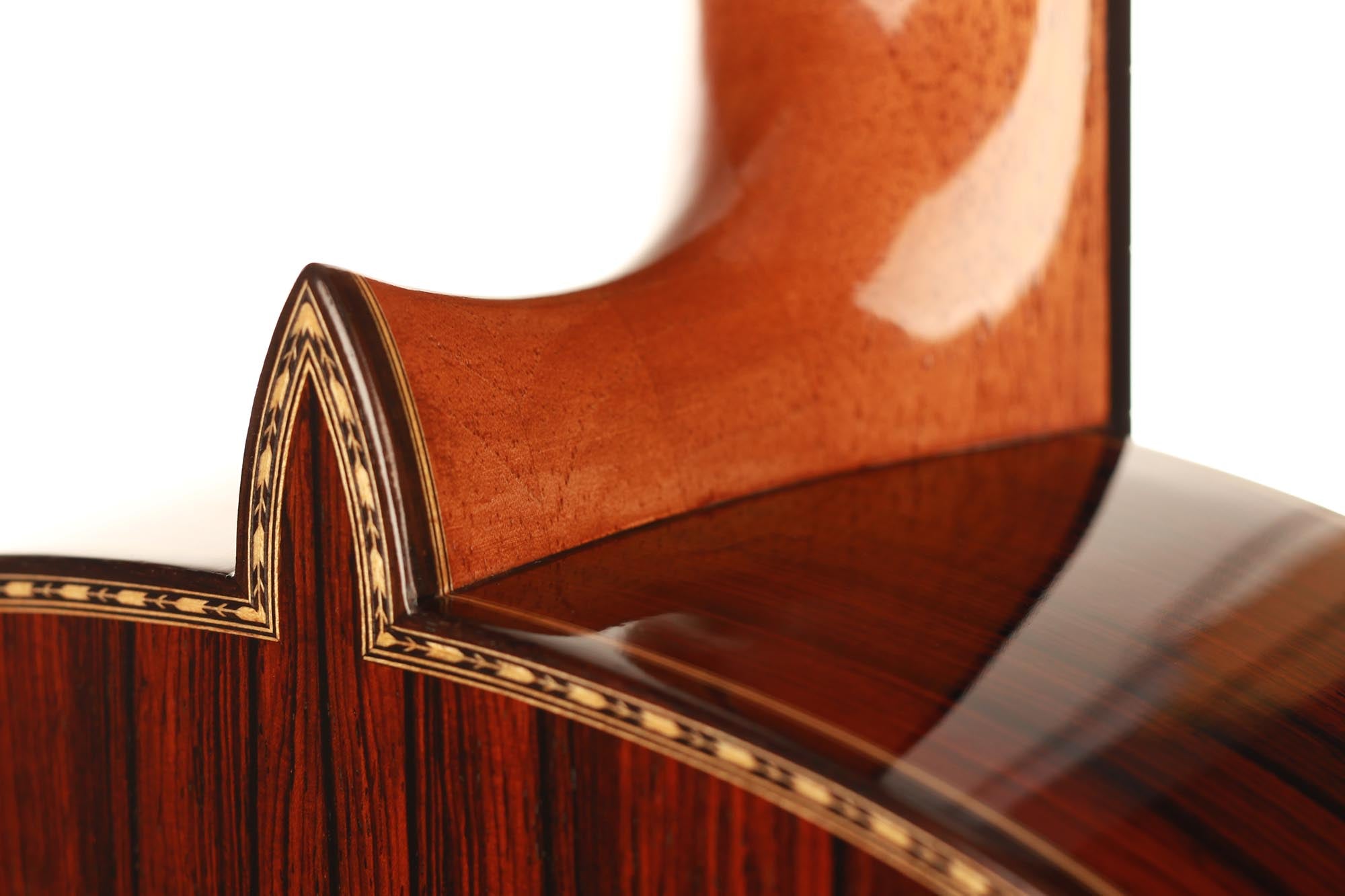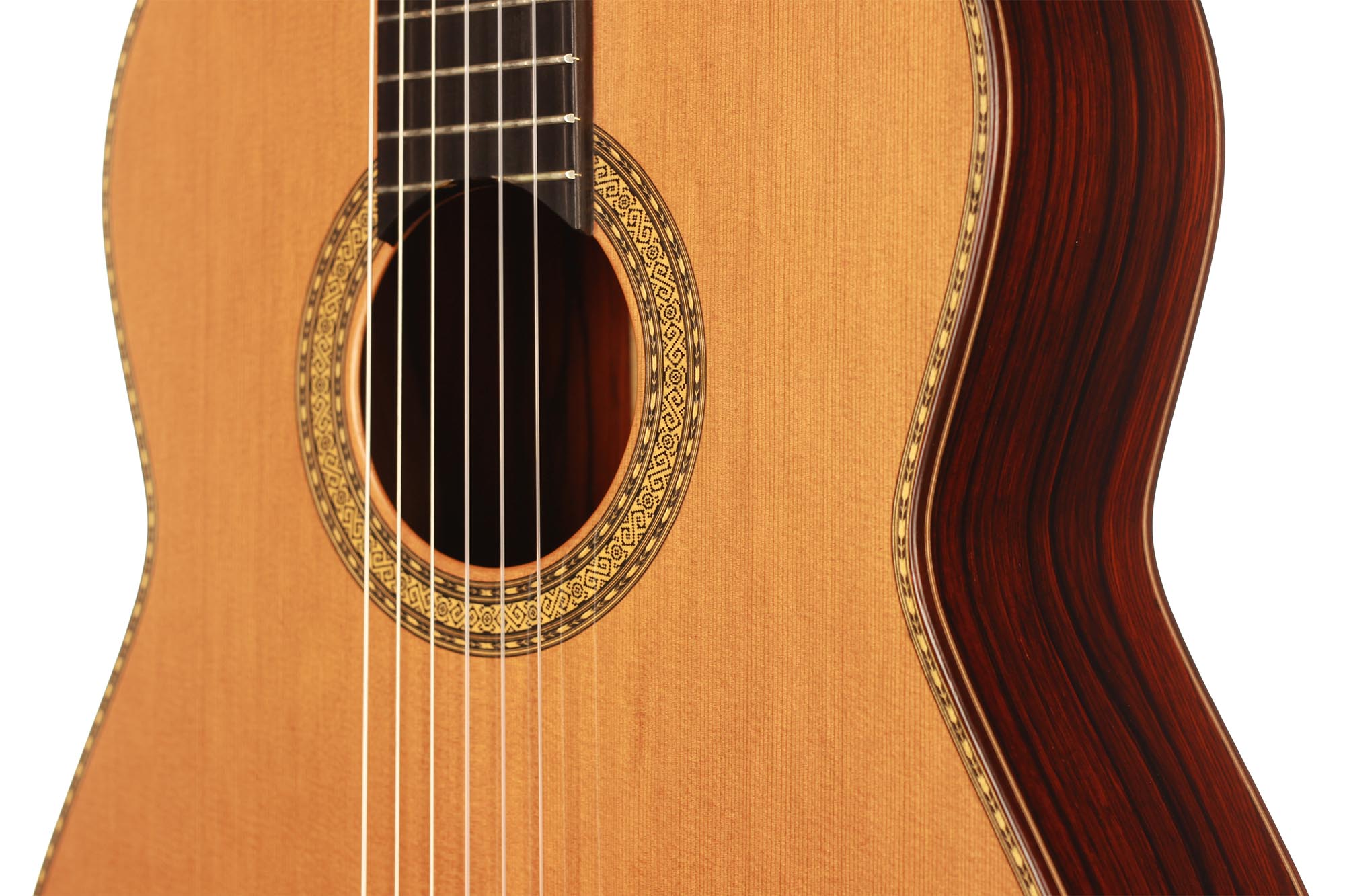 Ein kraftvoller, klarer und großzügiger Klang geht von diesem ganz besonderen Instrument aus. Die Reaktivität und Präzision des Klangs ermöglicht es dem Spieler, jede Art von Repertoire zu meistern, von südamerikanischer Musik bis hin zu barocken Tanzsuiten. Insgesamt ist dies eine sehr musikalische und lyrische Gitarre mit einem warmen, charmanten Ton und viel Eleganz im Ausdruck.