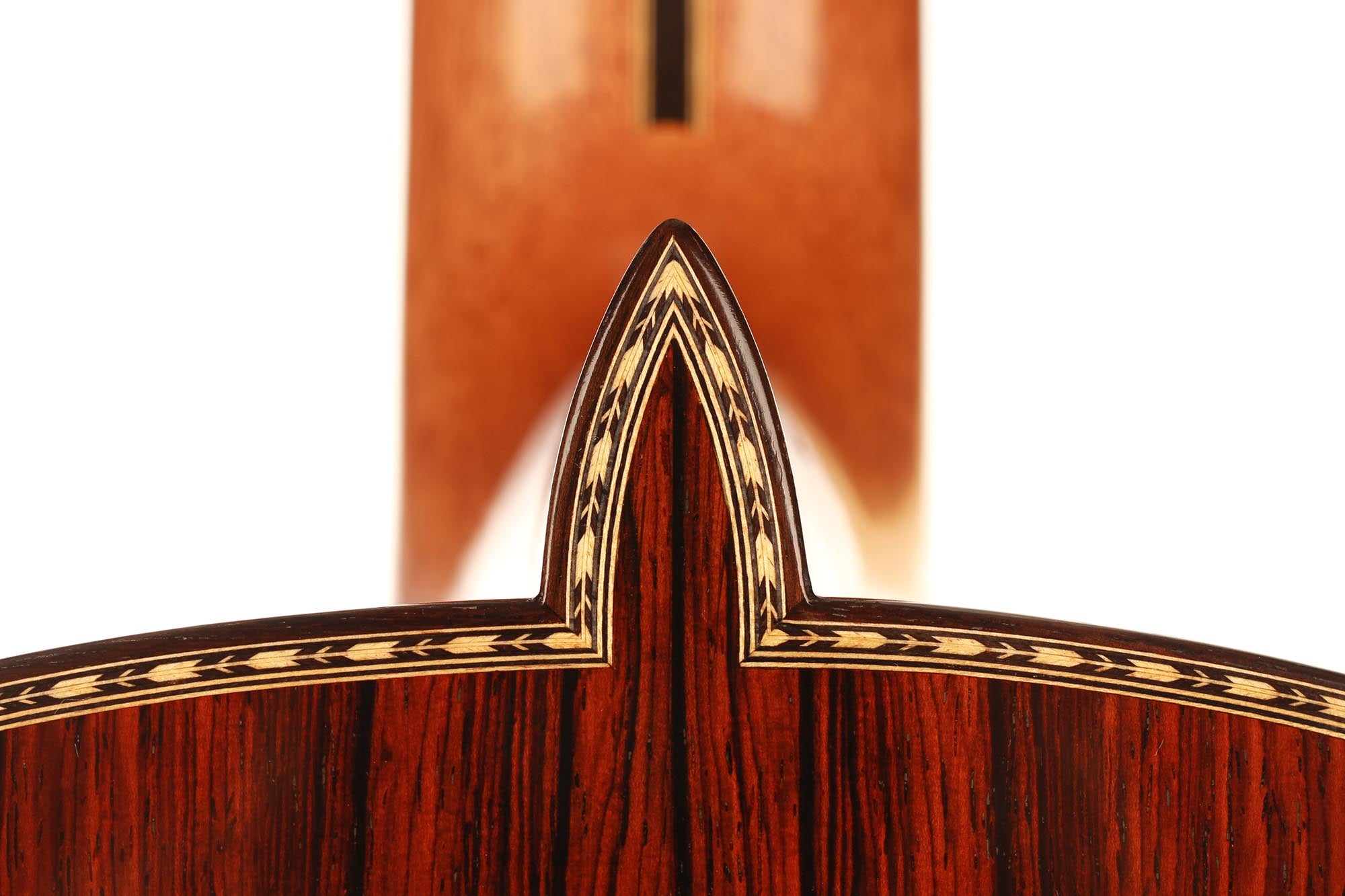 Diese fantastische Gitarre ist identisch mit der Gitarre von Thibaut Garcia, dem Royal-Modell, dem höchsten Modell von Paulino Bernabe. Sie ist fast wie neu uns hat nur sehr wenige Spilspuren. Für den Korpus dieser Gitarre wurde ein fantastischer Satz an Cocobolo gewählt und die Zargen sind wie bei diesem Modell üblich mit Zypresse gedoppelt. Schöne handgefertigte Rodgers Mechaniken unterstreichen die hohe Qualität dieser Gitarre.