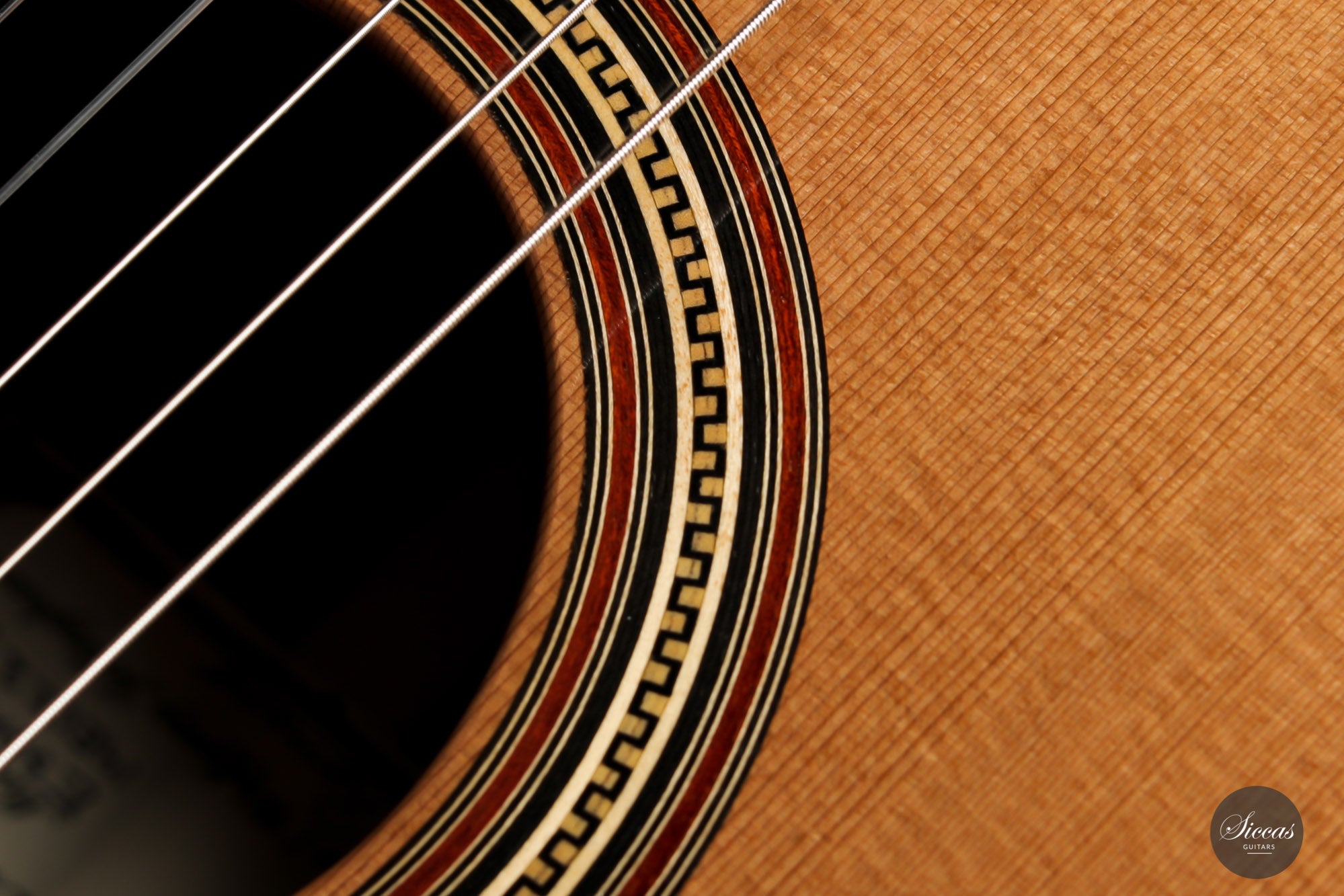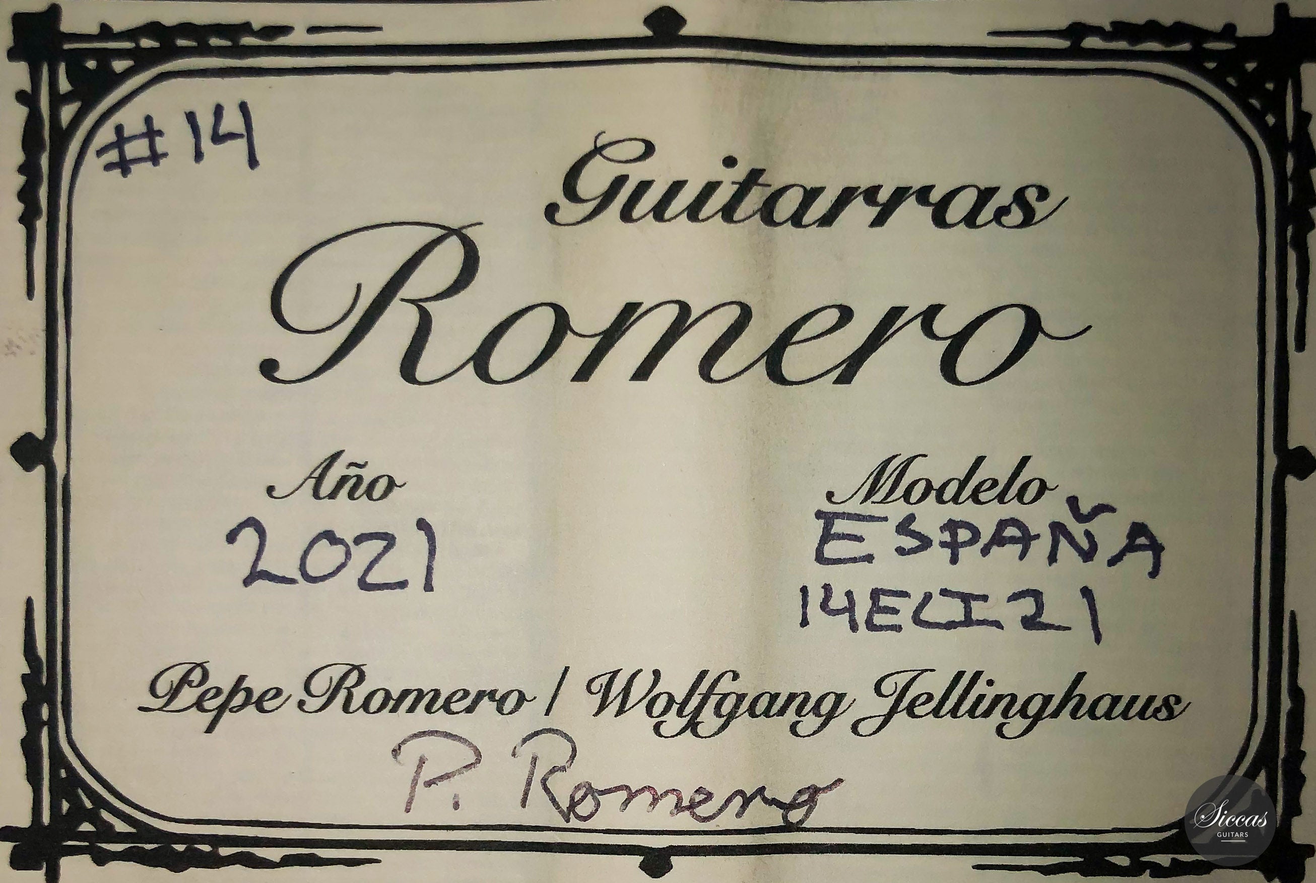 The España model is a traditional Spanish design inspired by the renowned guitars of Miguel Rodriguez, Santos Hernandez and Romero's own custom builds. These guitars have tremendous power, sustain, and clarity. They are available with premium German spruce or Western red cedar tops and have traditional five-fan bracing. Interestingly, the bracing is fine-tuned with two V-shaped braces and a crossbar to favor treble resonance.