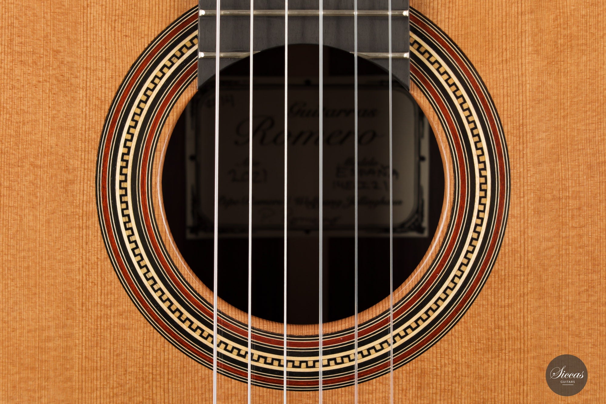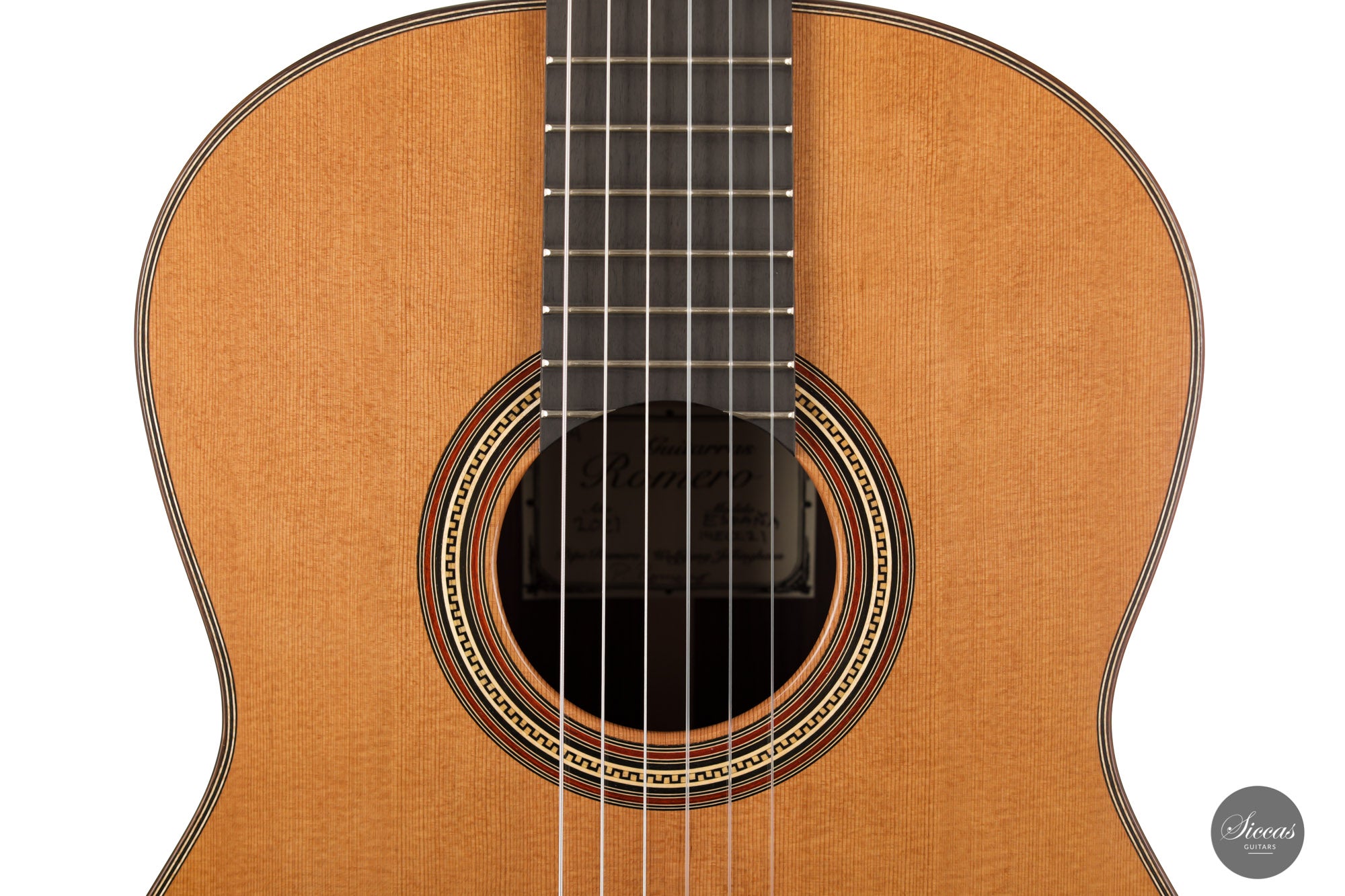 The Romero Espagna Cedar is extremely responsive, with great power and a full, clear tone. The trebles respond immediately and precisely, with a wide range of timbres. The basses are also very present, with a lot of dynamics and a very Spanish timbre. With its great acoustic characteristics and easy playability due to a very comfortable neck, this guitar is a really excellent choice in this price range.