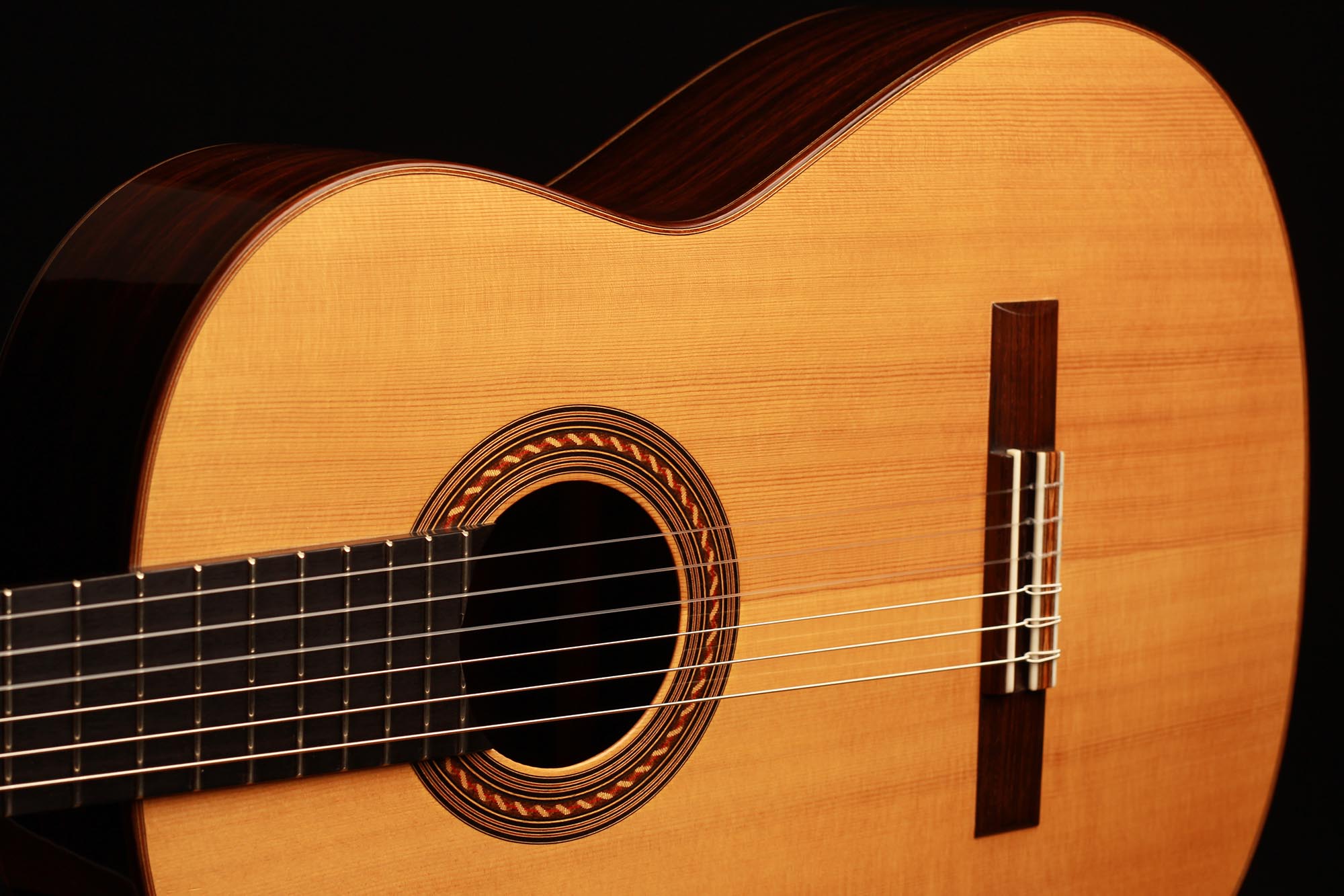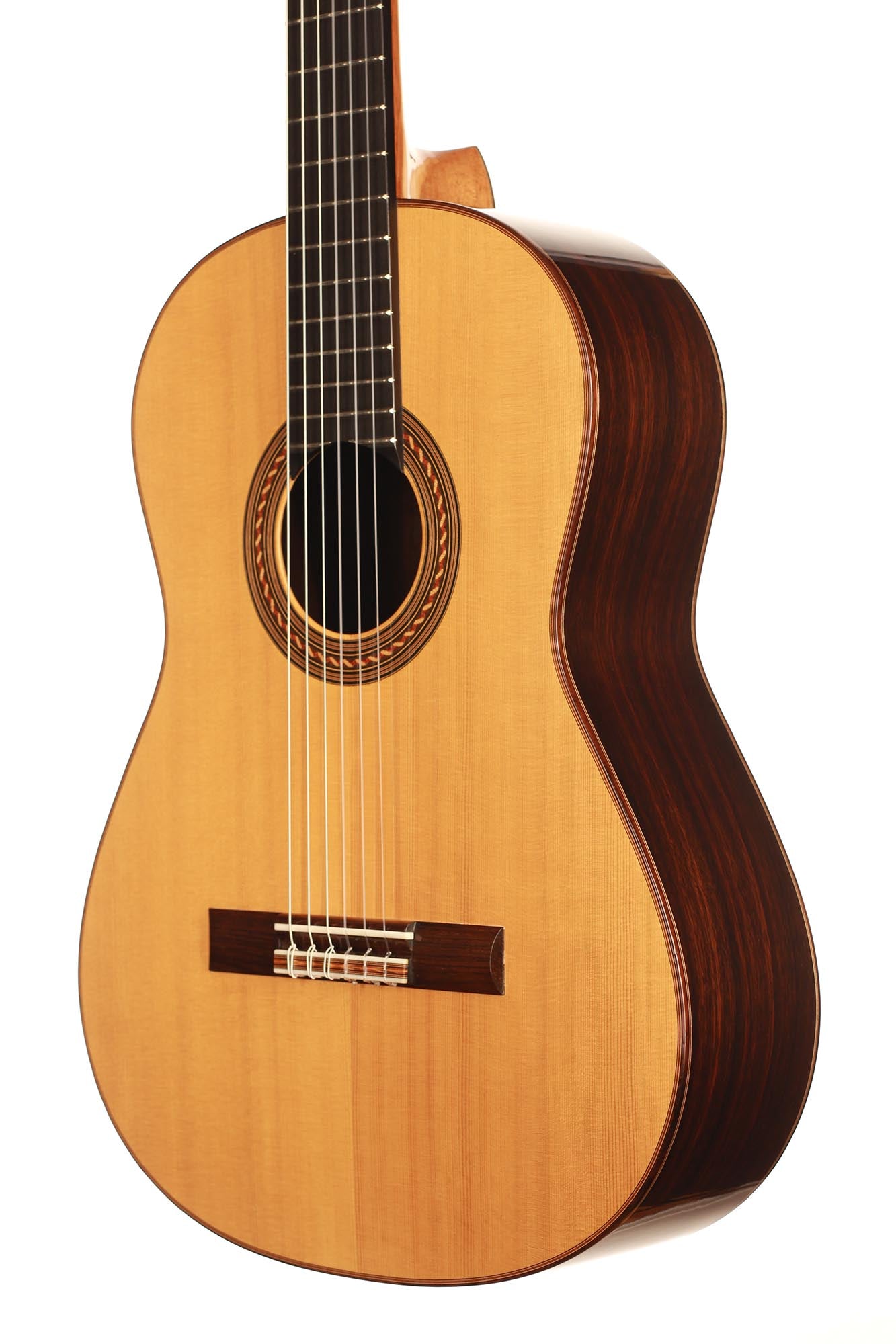 Die klassische Gitarre mit ihren weichen Nylonsaiten und ihrem charakteristischen Timbre ist zum Symbol der Kammermusik, der spanischen Tradition und des Konzertrepertoires geworden. Ihre moderne Form prägte Antonio de Torres im 19. Jahrhundert, indem er den Standard für Korpus, Fächerbeleistung und die 65-Zentimeter-Mensur setzte, die bis heute verwendet werden. Instrumente dieser Kategorie eröffnen eine reiche Palette von den feinen romantischen Miniaturen Tárregas bis zu den majestätischen Konzerten Rodrigos. Hier finden Sie Gitarren, die historische Kontinuität bewahren und zugleich zu neuen Interpretationen anregen.