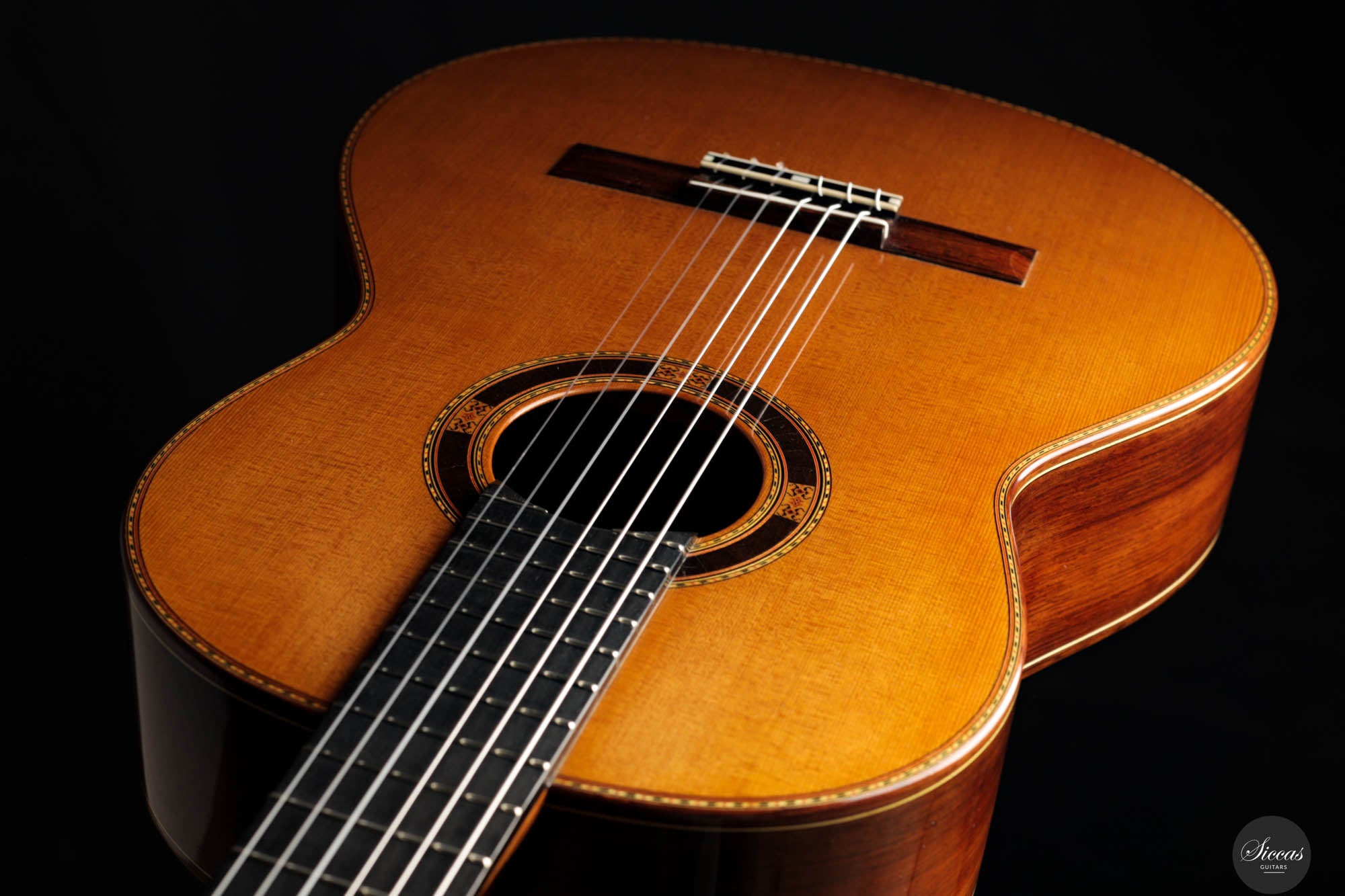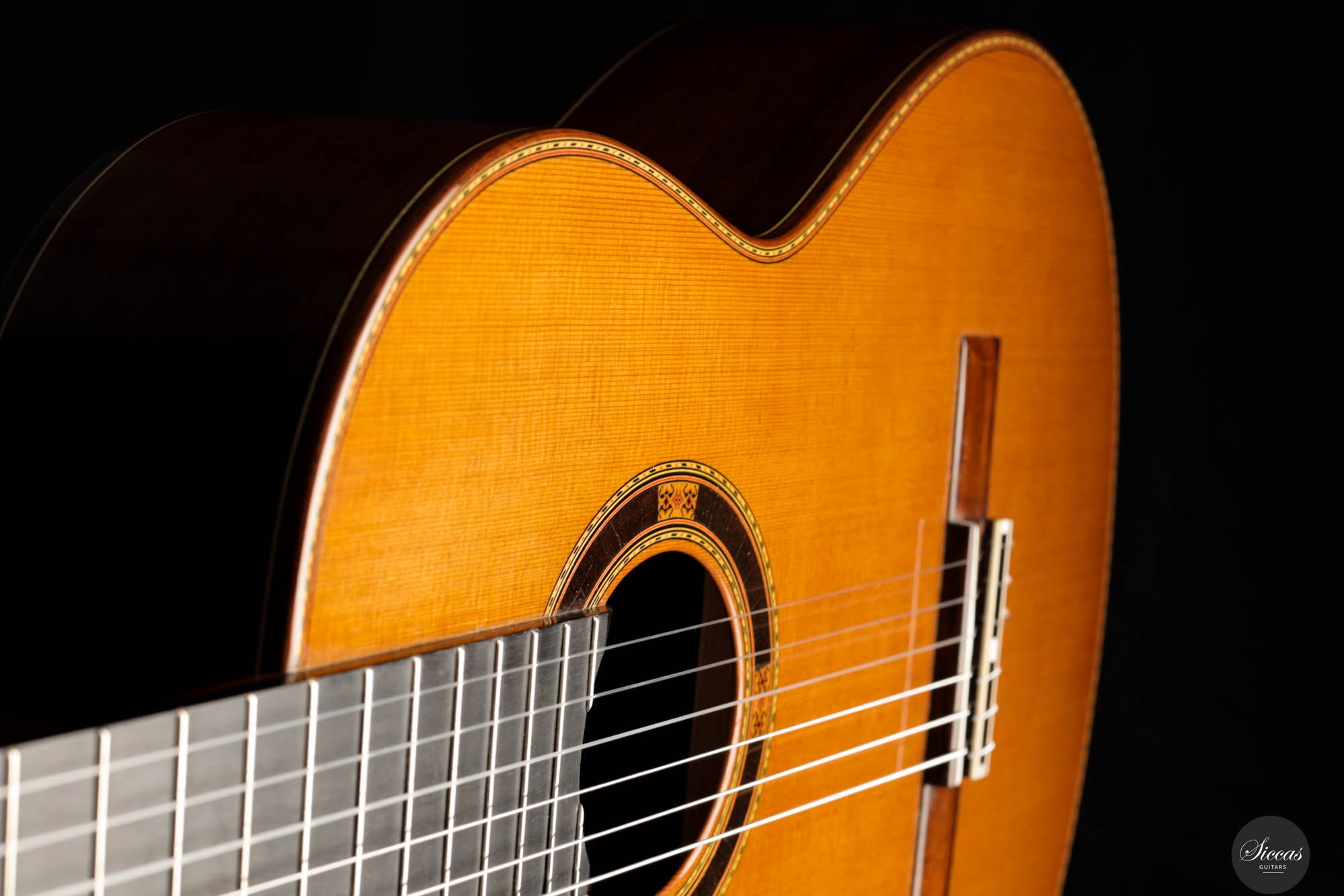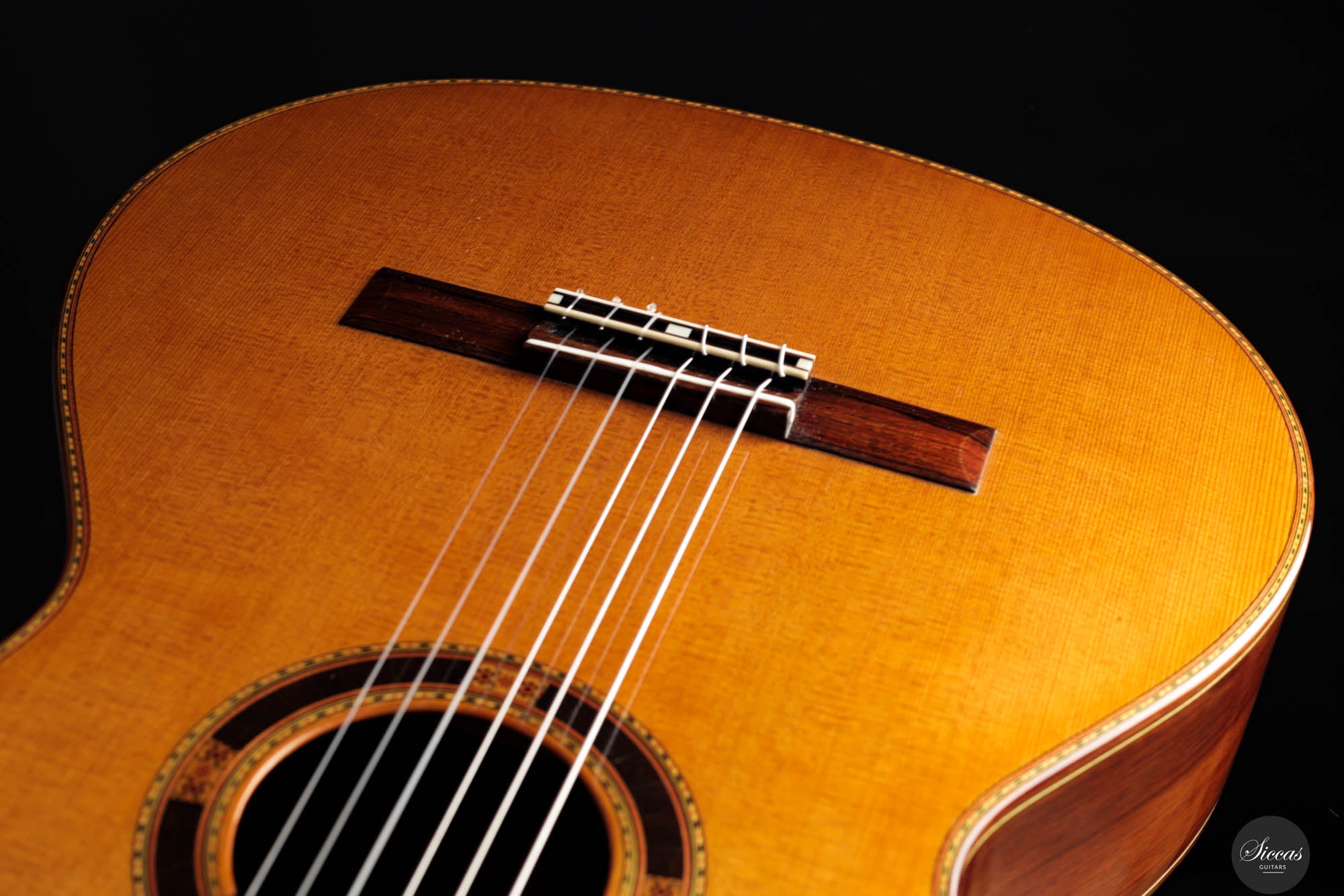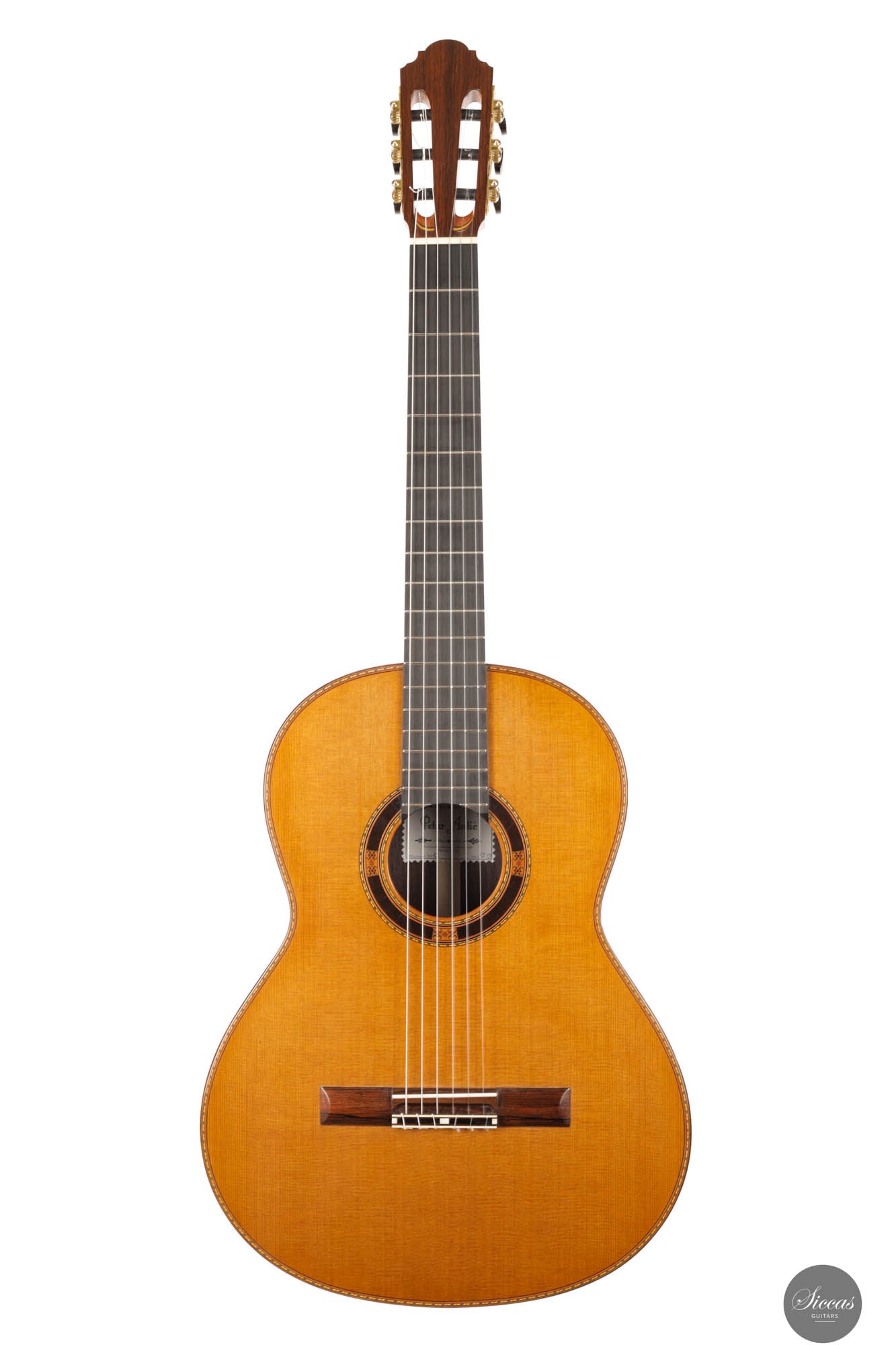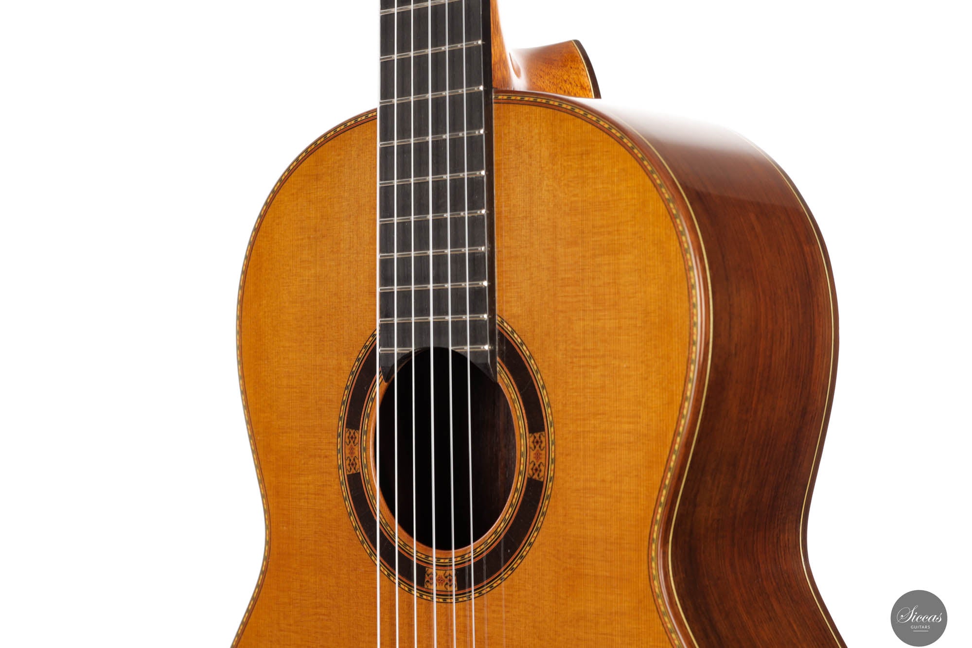 The No. 17.12 guitar by the late Petar Antic is not only a musical instrument but a cherished embodiment of his exceptional craftsmanship and legacy. Featuring a cedar top and indian rosewood back and sides, the guitar resonates with warm and rounded tonal qualities. The guitar's construction, from the beautifully crafted ornaments to its expertly executed setup, showcases Antic’s meticulous attention to detail, ensuring ease of play and comfort. This instrument excels in both volume and response, making it incredibly versatile across various musical styles and settings. The condition of the guitar is very good. There are some shallow playing marks on the top.