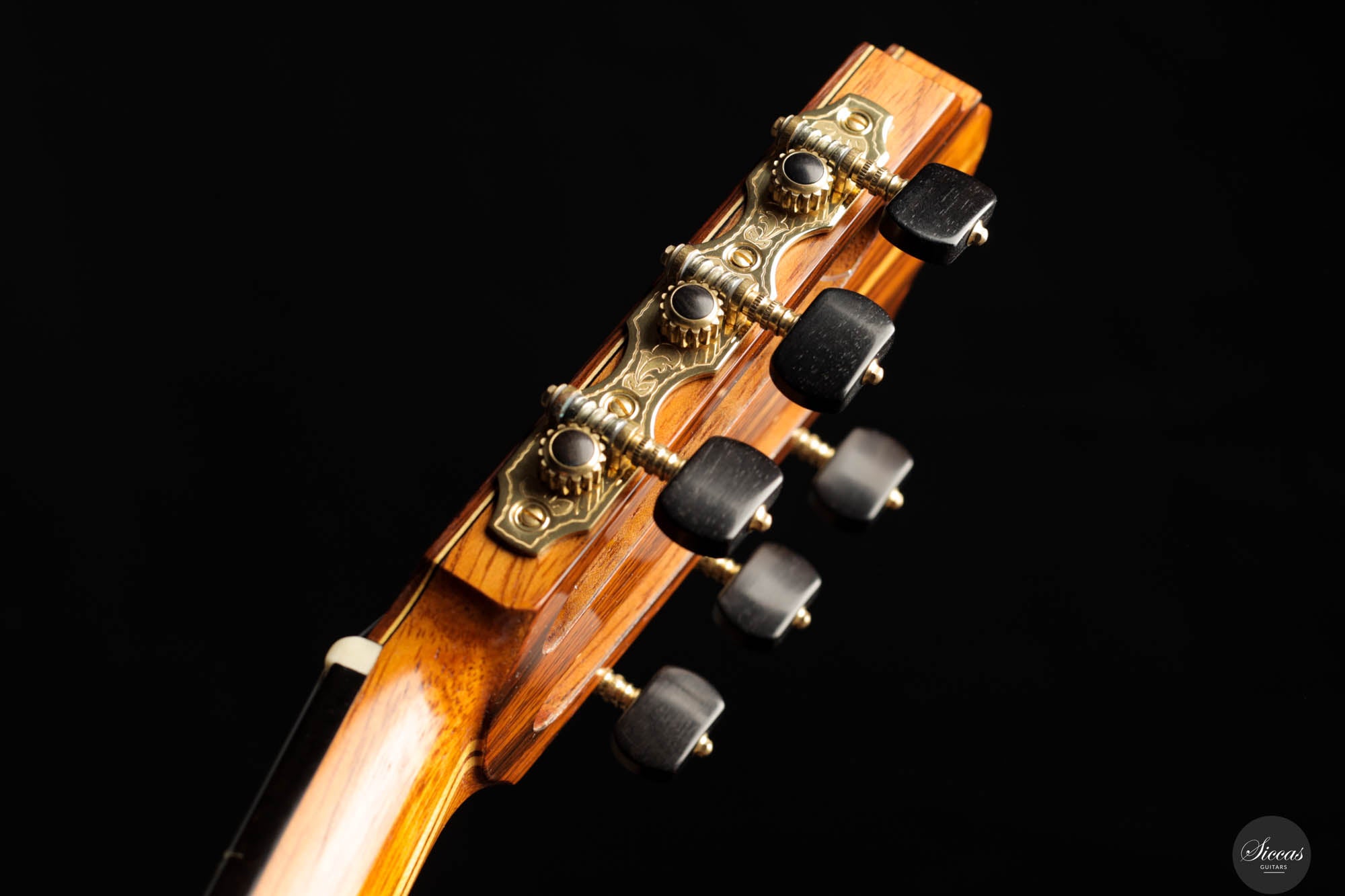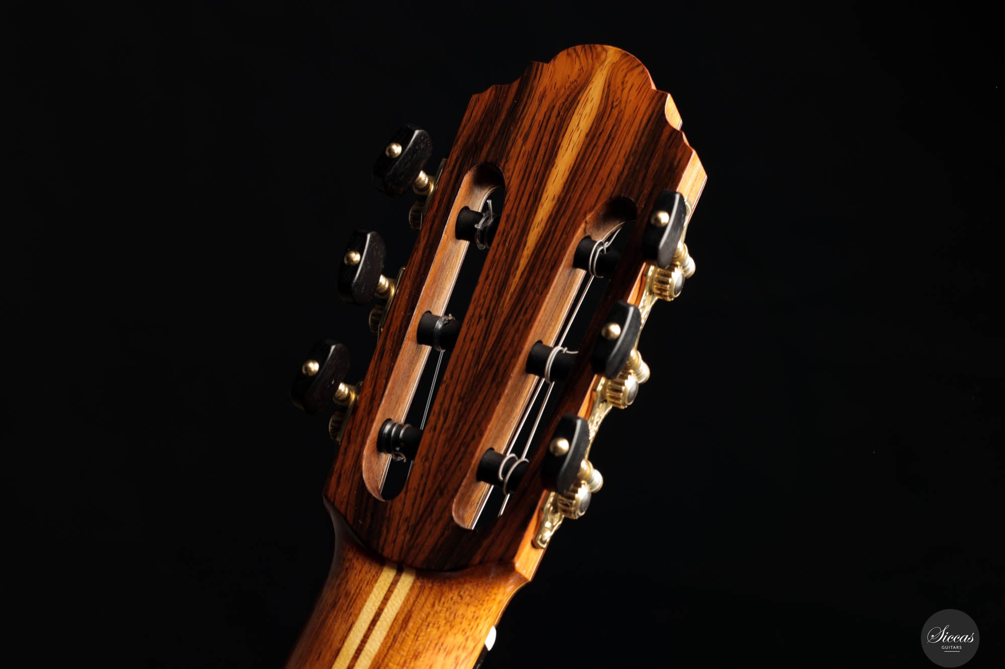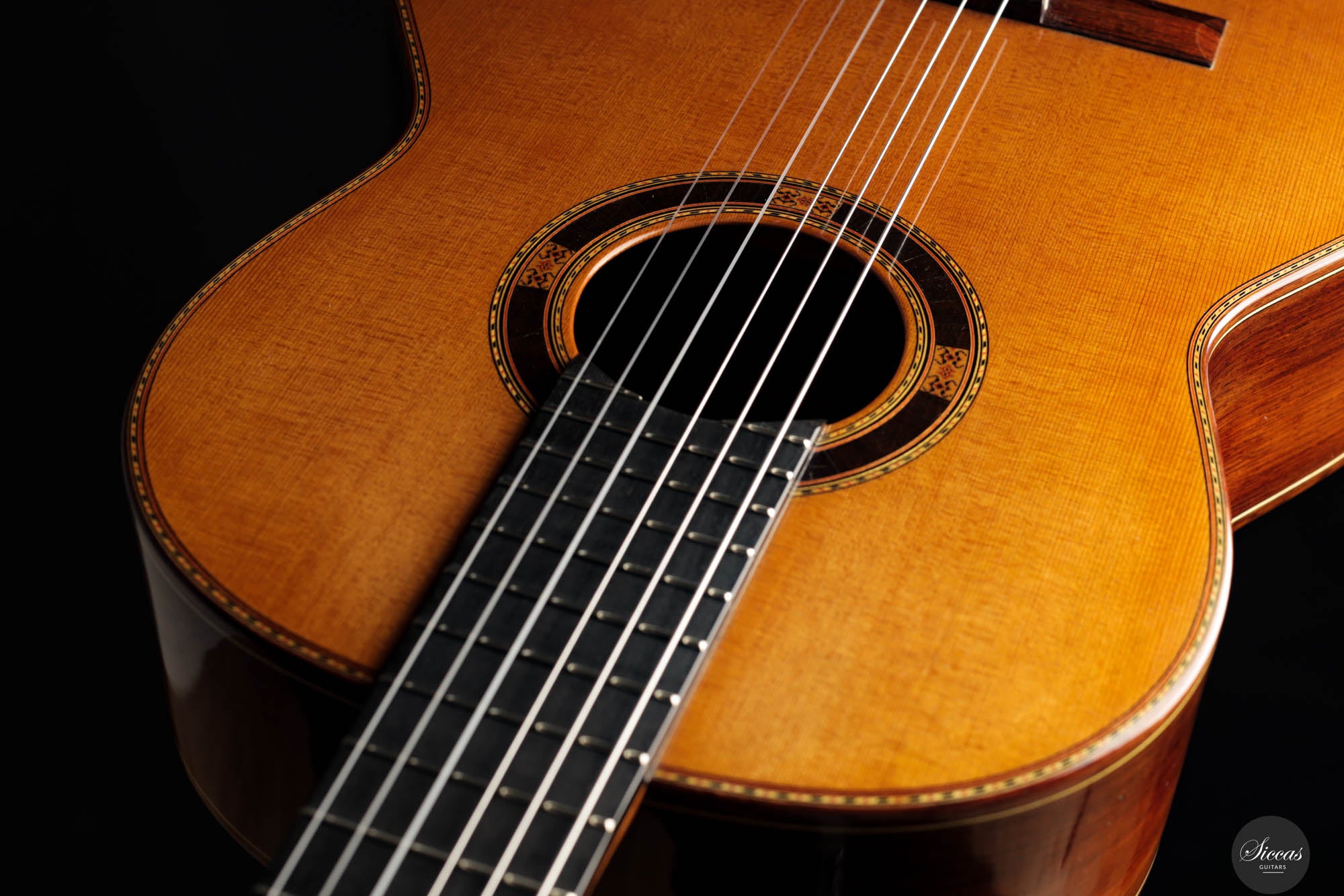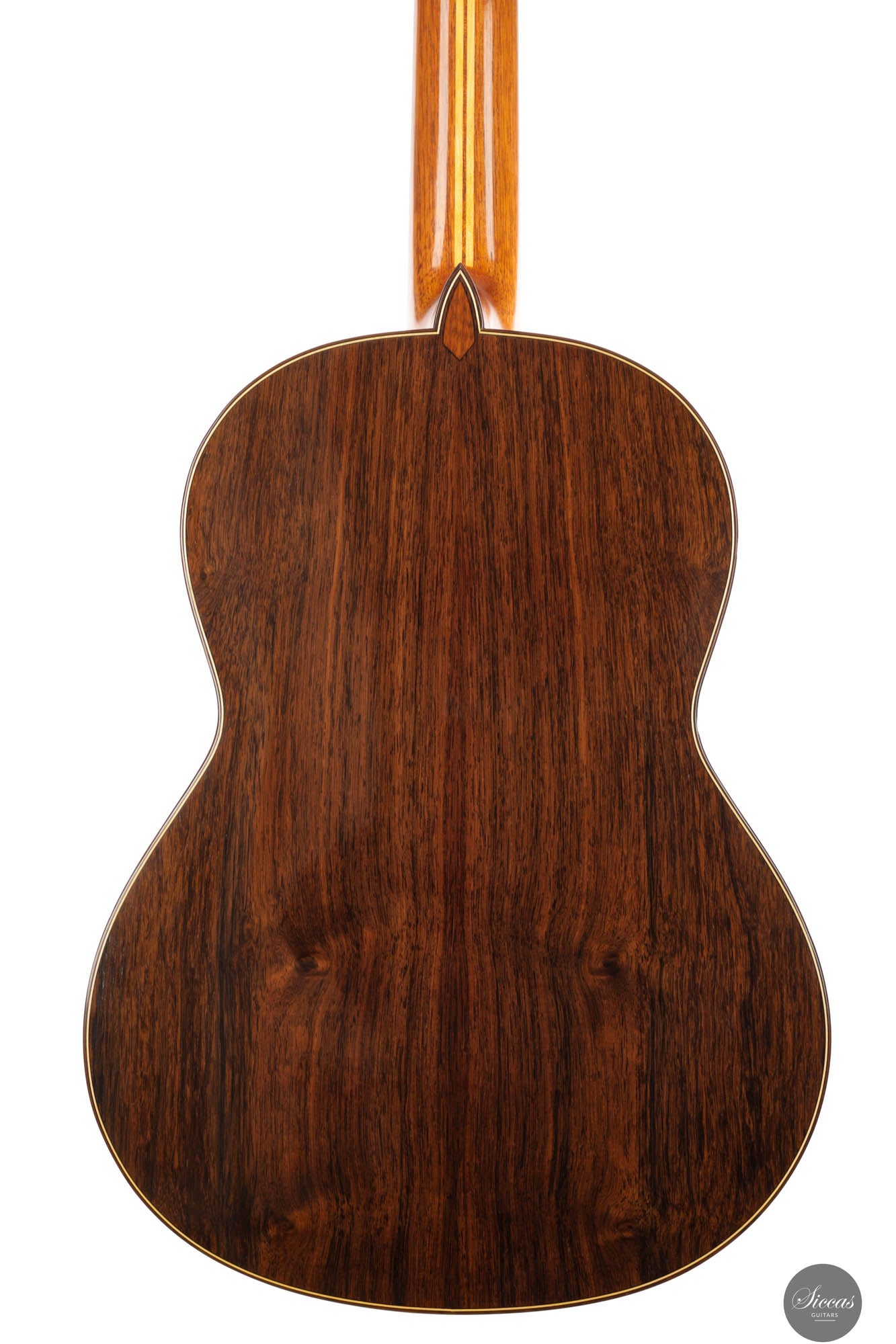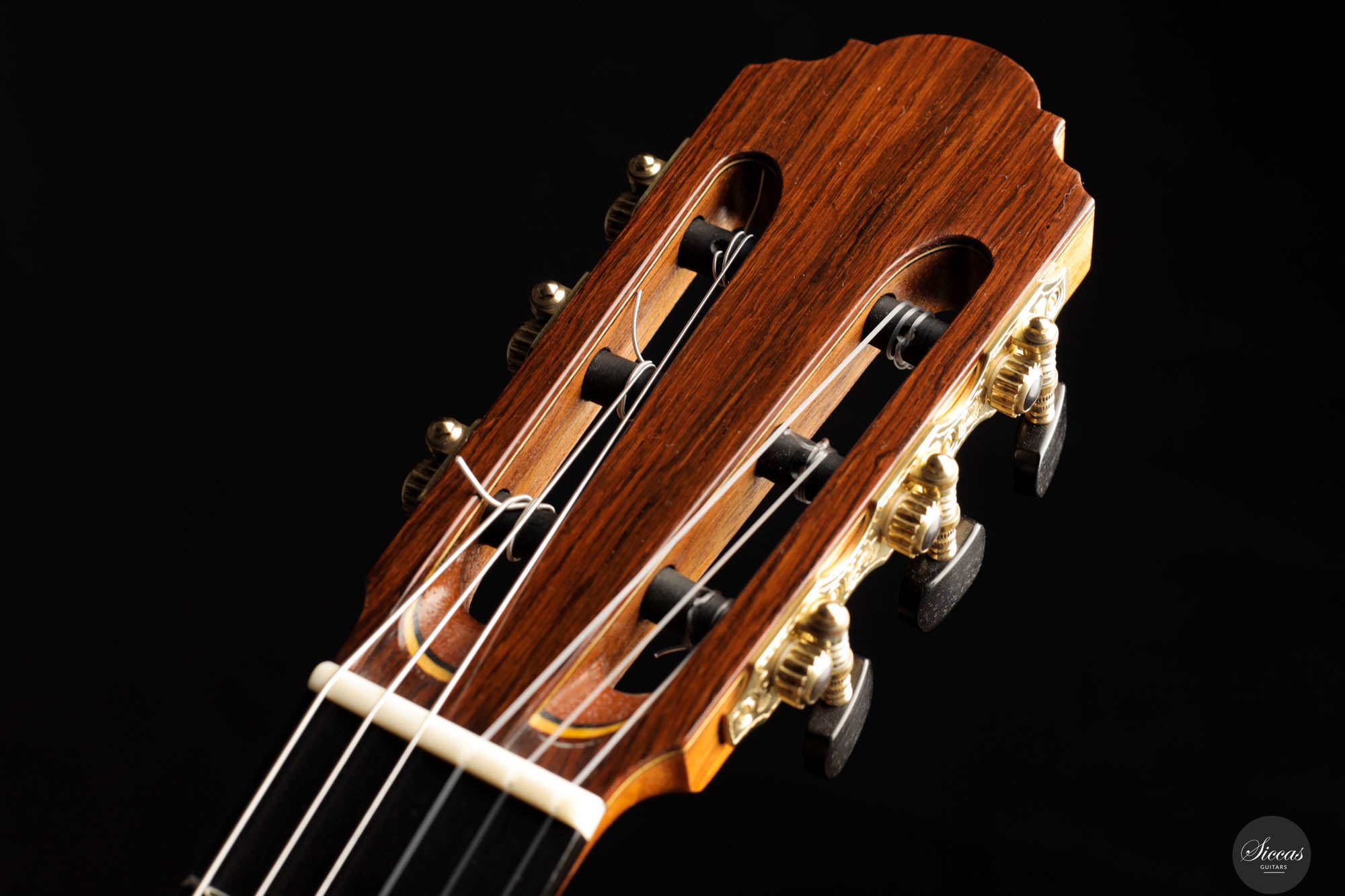 The No. 17.12 guitar by the late Petar Antic is not only a musical instrument but a cherished embodiment of his exceptional craftsmanship and legacy. Featuring a cedar top and indian rosewood back and sides, the guitar resonates with warm and rounded tonal qualities. The guitar's construction, from the beautifully crafted ornaments to its expertly executed setup, showcases Antic’s meticulous attention to detail, ensuring ease of play and comfort. This instrument excels in both volume and response, making it incredibly versatile across various musical styles and settings. The condition of the guitar is very good. There are some shallow playing marks on the top.