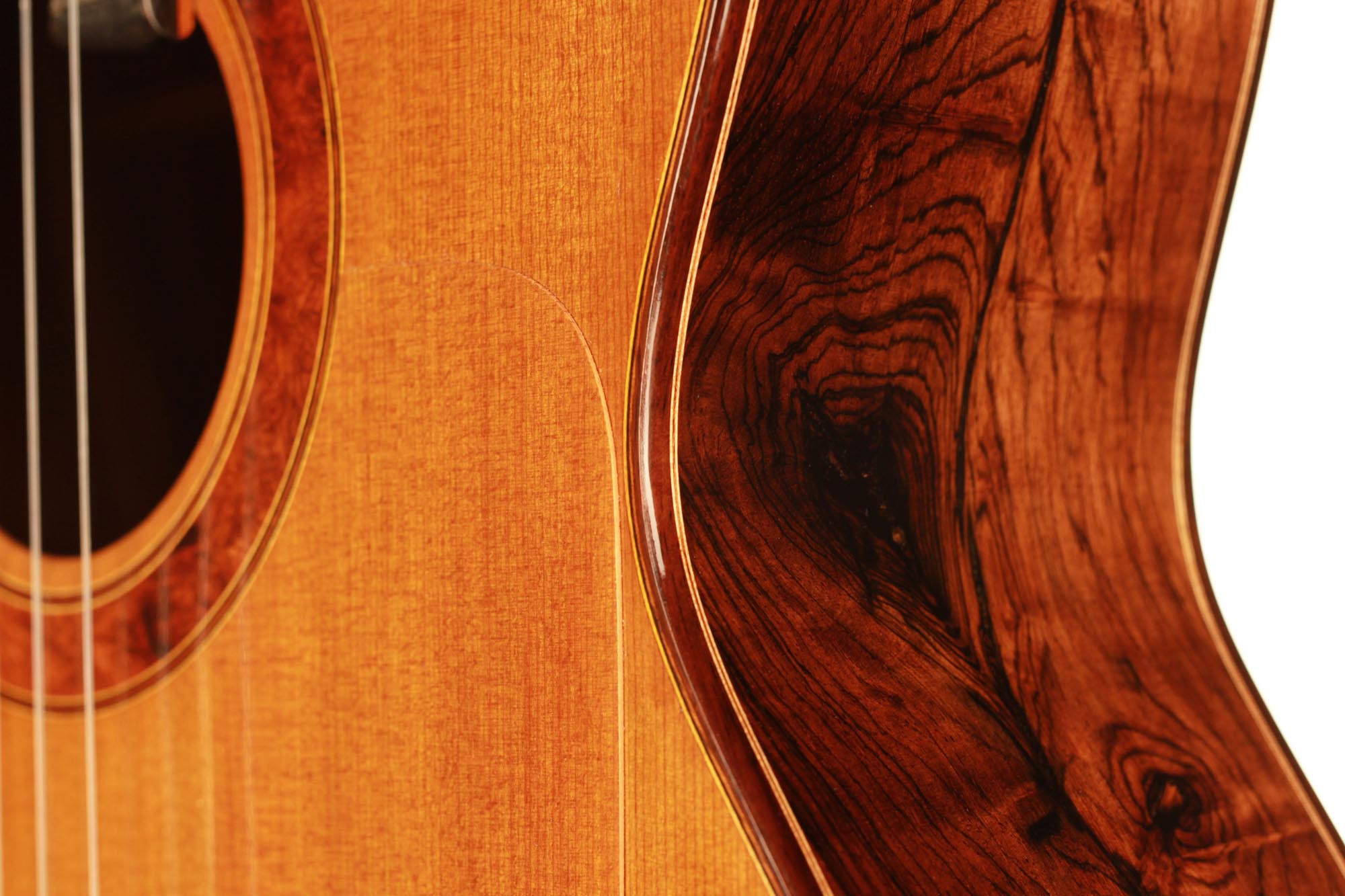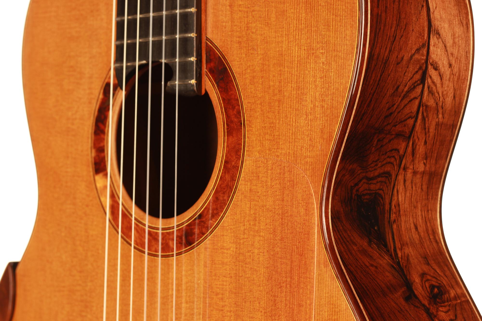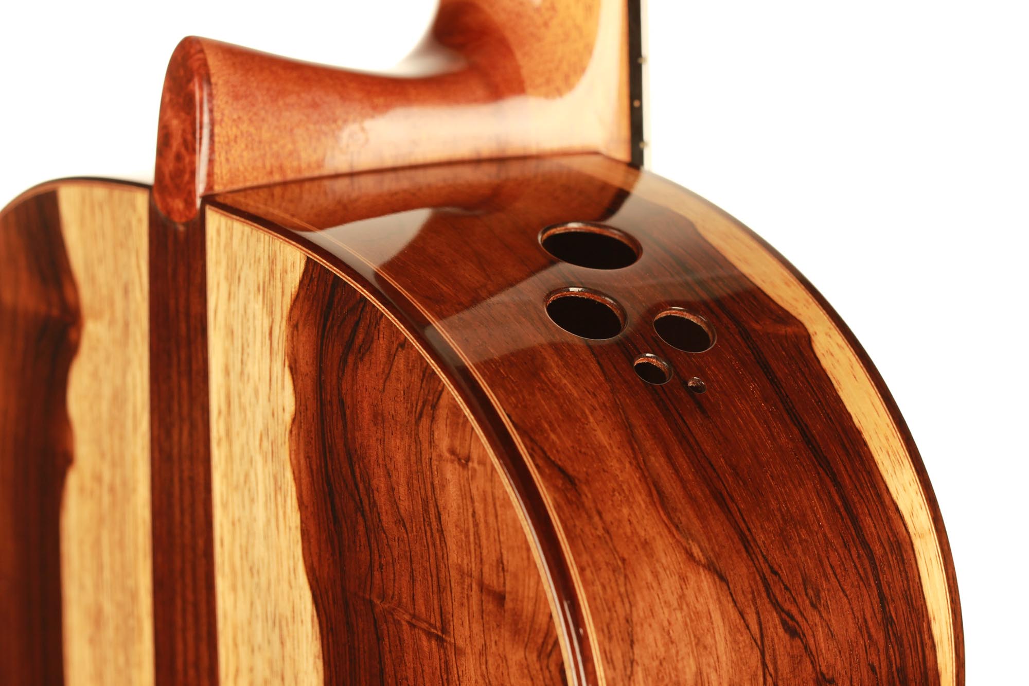 A thin piece of cedar was added to the top in order to protect this section. Nevertheless, this top is perfectly stable and the sound unchanged. This guitar is a great opportunity to get a well-built, powerful, and comfortable double-top at a very attractive price.