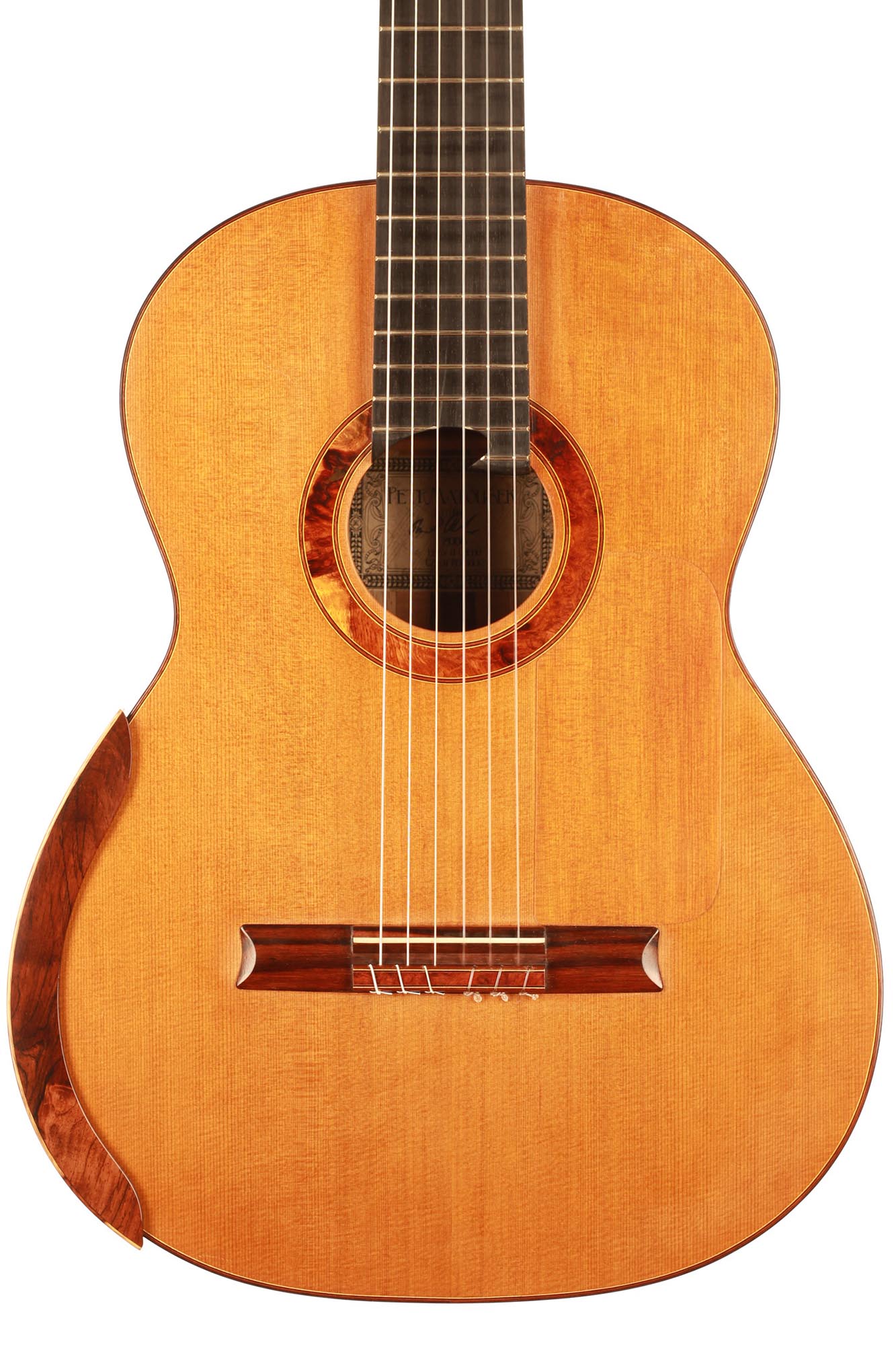 Die klassische Gitarre mit ihren weichen Nylonsaiten und ihrem charakteristischen Timbre ist zum Symbol der Kammermusik, der spanischen Tradition und des Konzertrepertoires geworden. Ihre moderne Form prägte Antonio de Torres im 19. Jahrhundert, indem er den Standard für Korpus, Fächerbeleistung und die 65-Zentimeter-Mensur setzte, die bis heute verwendet werden. Instrumente dieser Kategorie eröffnen eine reiche Palette von den feinen romantischen Miniaturen Tárregas bis zu den majestätischen Konzerten Rodrigos. Hier finden Sie Gitarren, die historische Kontinuität bewahren und zugleich zu neuen Interpretationen anregen.Alle Klassische Gitarren ansehen -