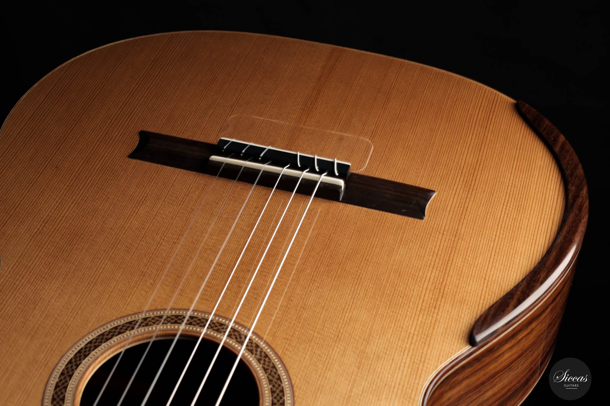 Concert artists widely play Petr Matousek's guitar throughout Europe. It is a concert guitar meant to be played regularly in concert settings. This brand-new guitar has a cedar double-top soundboard and Indian rosewood back and sides. Due to its double-top design, it possesses tremendous power to fulfill any concert situation. The 640 mm scale makes this easy-to-play guitar even more enjoyable, especially for those with smaller hands. This guitar's great overall "feel" is achieved by an ideal level of tension in the guitar, making it easy to play on the right hand. Acoustically, this instrument is a dream for all guitar players. The balance between the warm trebles and the deep basses allows the musician to explore many kinds of sounds one can imagine.