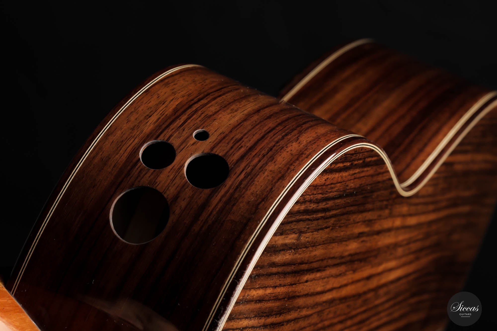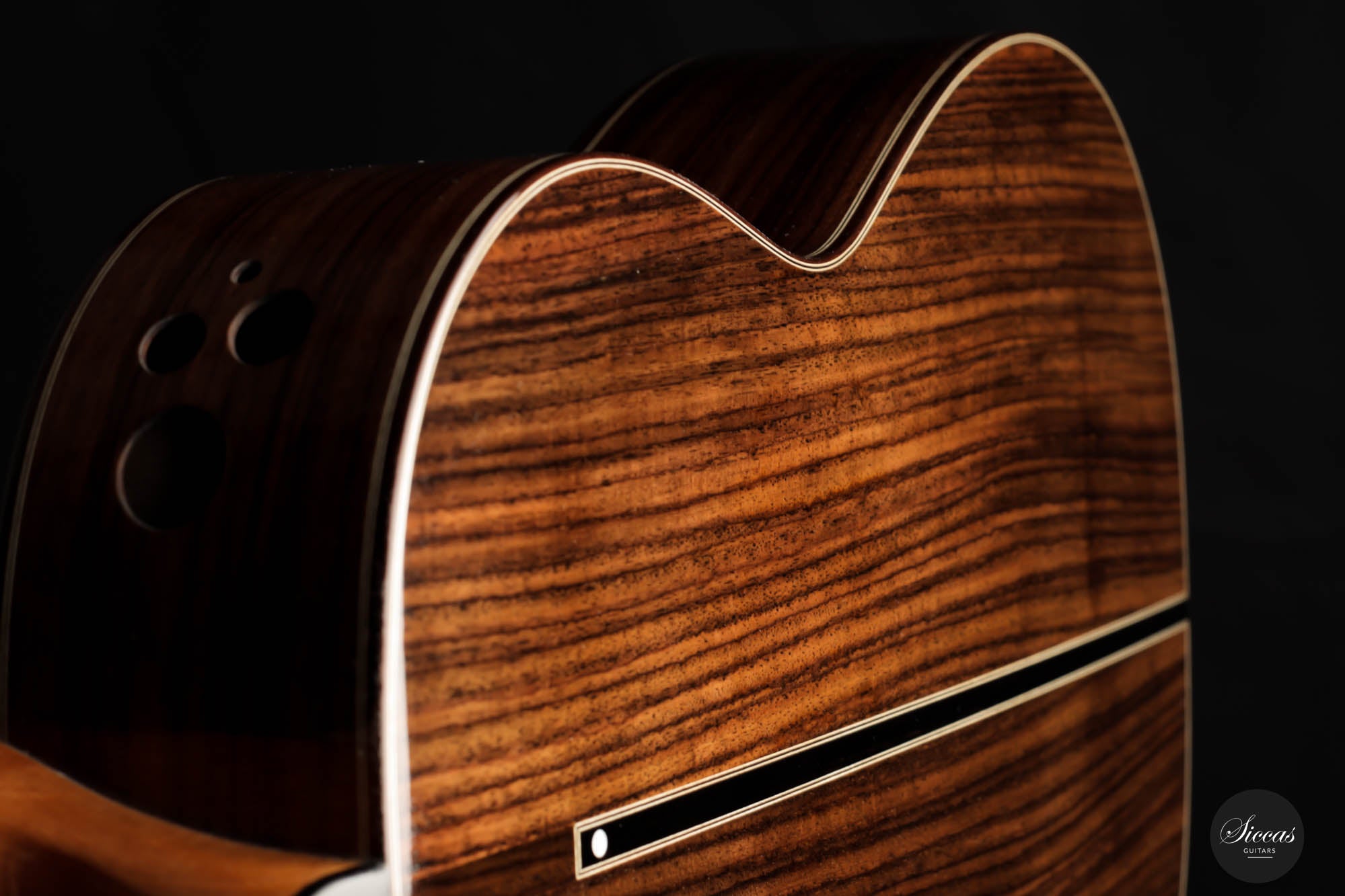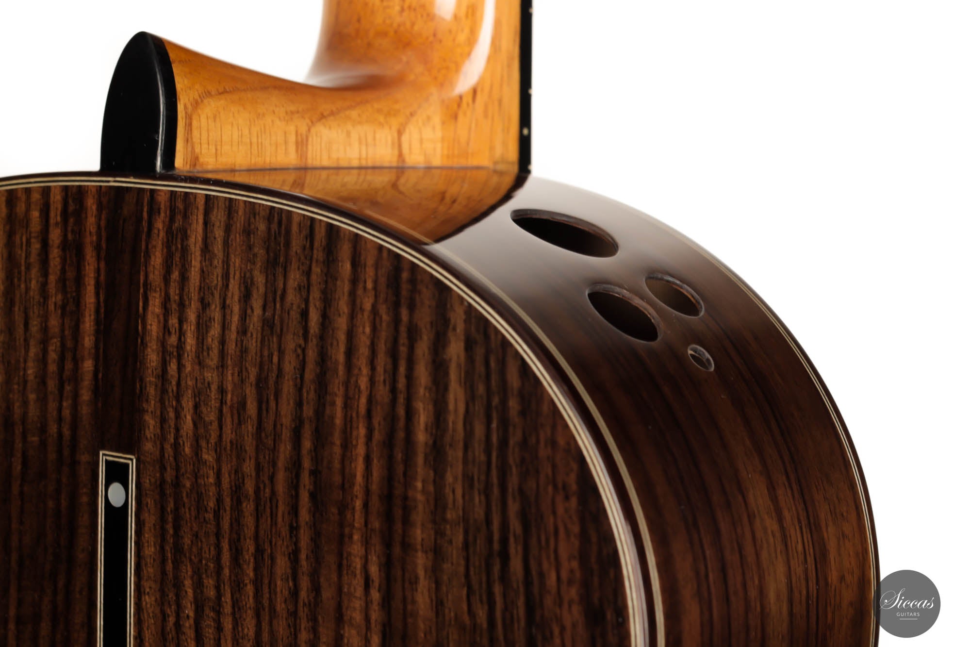 A thin cedar was added to the top to protect this section. Nevertheless, this top is perfectly stable, and the sound is unchanged. This guitar is an excellent opportunity to get a well-built, powerful, and comfortable double-top at a very attractive price.
