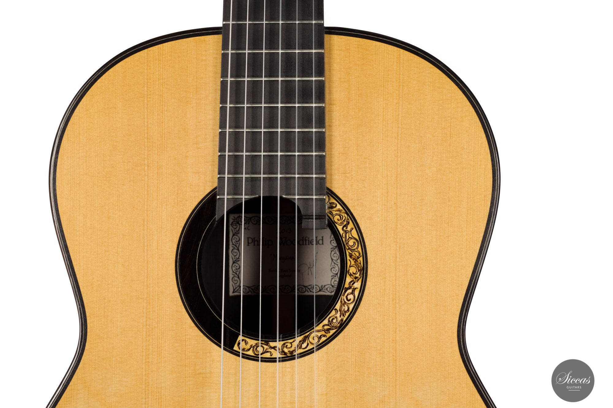 Philip Woodfield ist ein in Großbritannien ansässiger Gitarrenbauer, der seit über 30 Jahren Gitarren fertigt, die sich durch Klarheit, Sustain und gute Tontrennung auszeichnen. Ihr Klang ist rein und süß mit viel Klangvolumen. Da er auch ein ausgezeichneter Spieler ist, weiß er, wie wichtig es für einen Gitarristen ist, ein Instrument zu haben, das ausdrucksstark ist und eine umfangreiche Klangpalette hat. Philip Woodfields Gitarren sind sehr selten, und seine Warteliste für ein neues Instrument beträgt derzeit etwa fünf Jahre.
