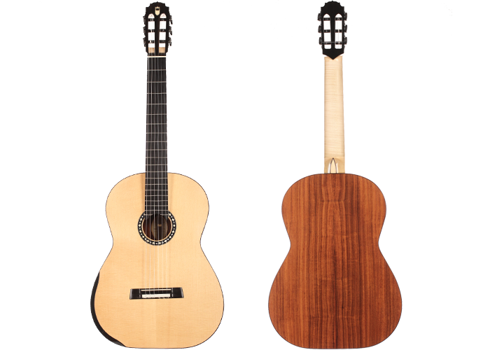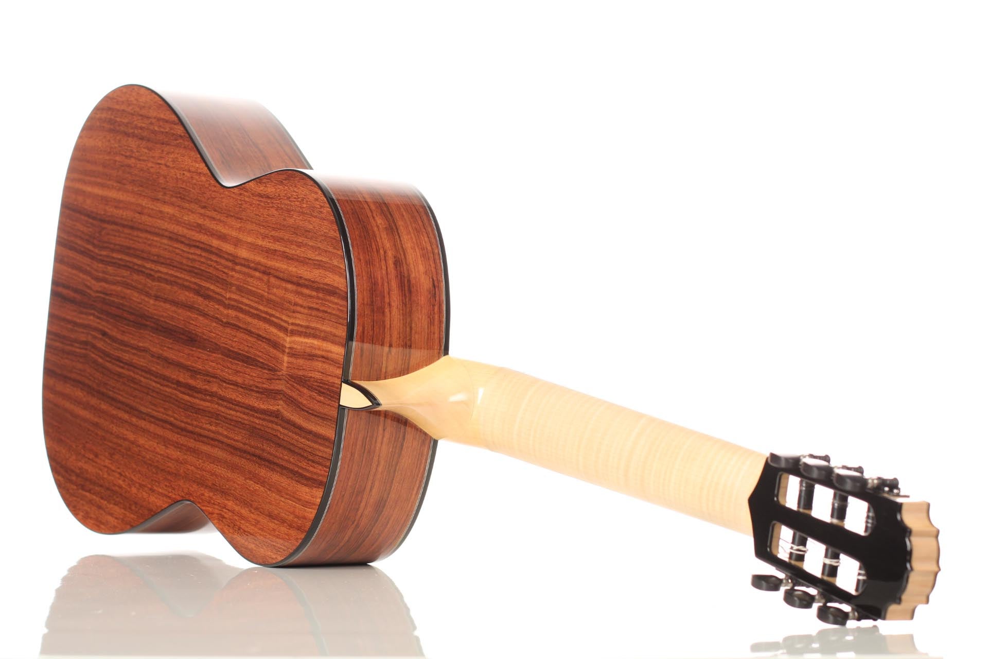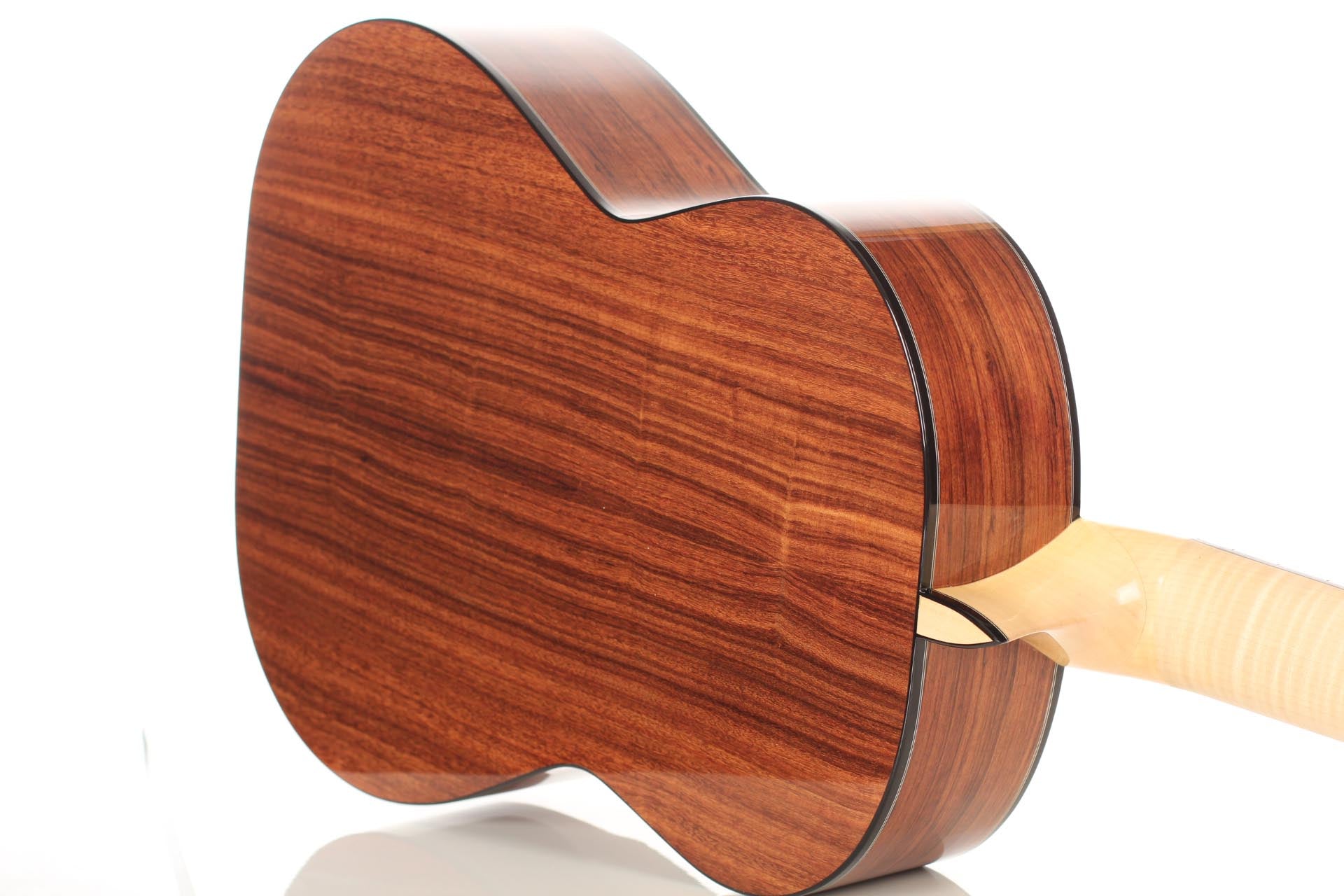 This guitar was built in 2010 and is in excellent condition. It has a spruce top and Granadillo back and sides. It is therefore a Cites-free guitar. This instrument is very easy and comfortable to play: the waxed maple neck makes left hand motion easy and smooth, the access to the trebles is improved by an elevated fingerboard and an arm-rest rounds the top-side edge. The guitar has a huge volume and an incredible sustain. A hard-shell case is included.