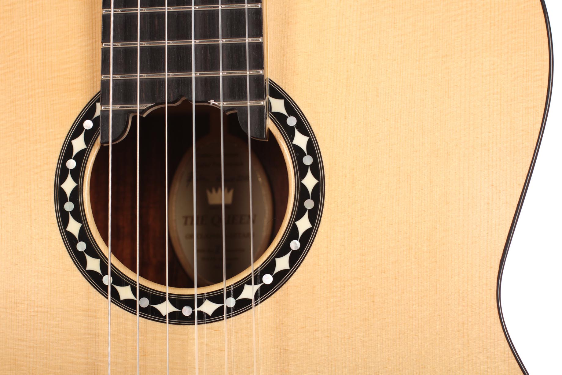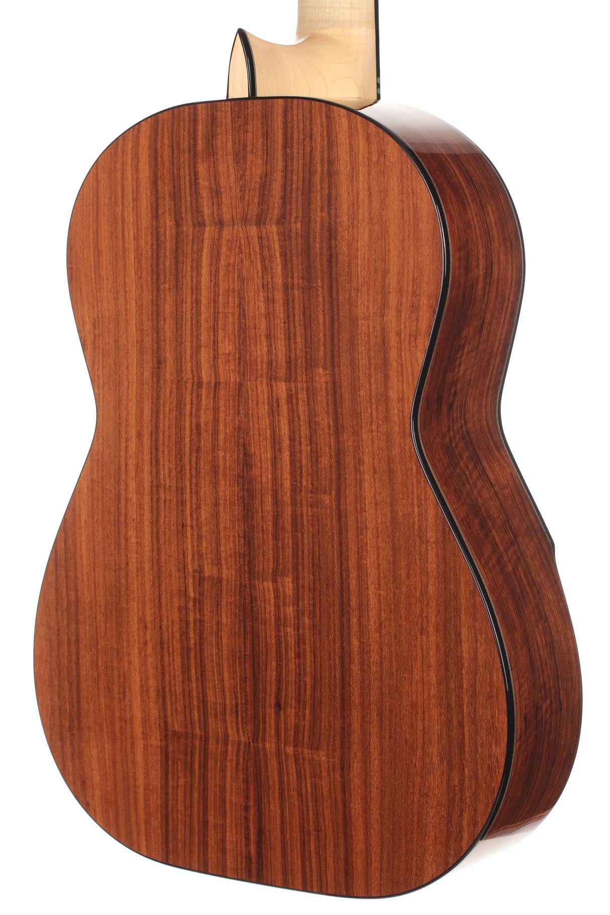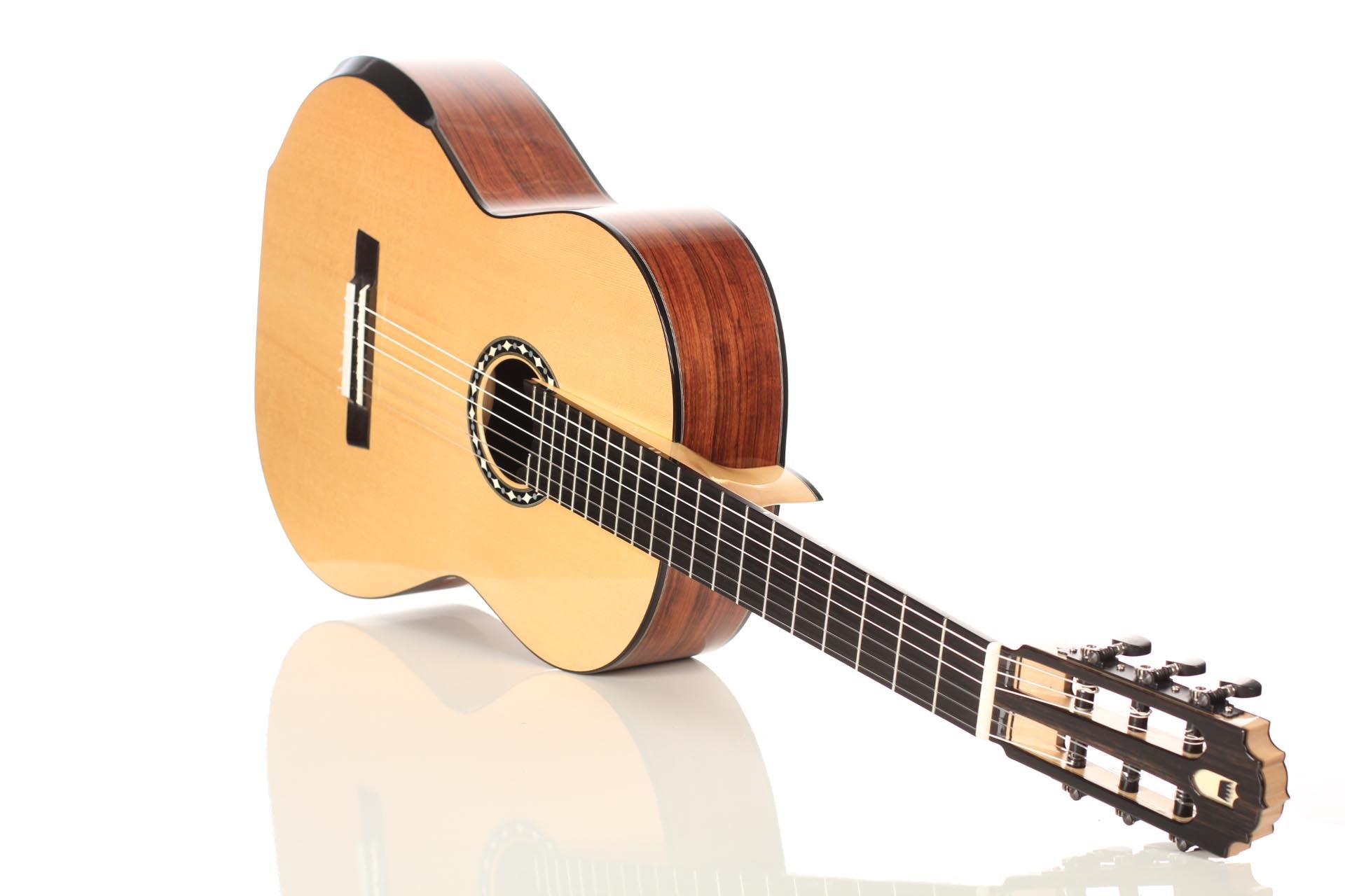 This guitar was built in 2010 and is in excellent condition. It has a spruce top and Granadillo back and sides. It is therefore a Cites-free guitar. This instrument is very easy and comfortable to play: the waxed maple neck makes left hand motion easy and smooth, the access to the trebles is improved by an elevated fingerboard and an arm-rest rounds the top-side edge. The guitar has a huge volume and an incredible sustain. A hard-shell case is included.