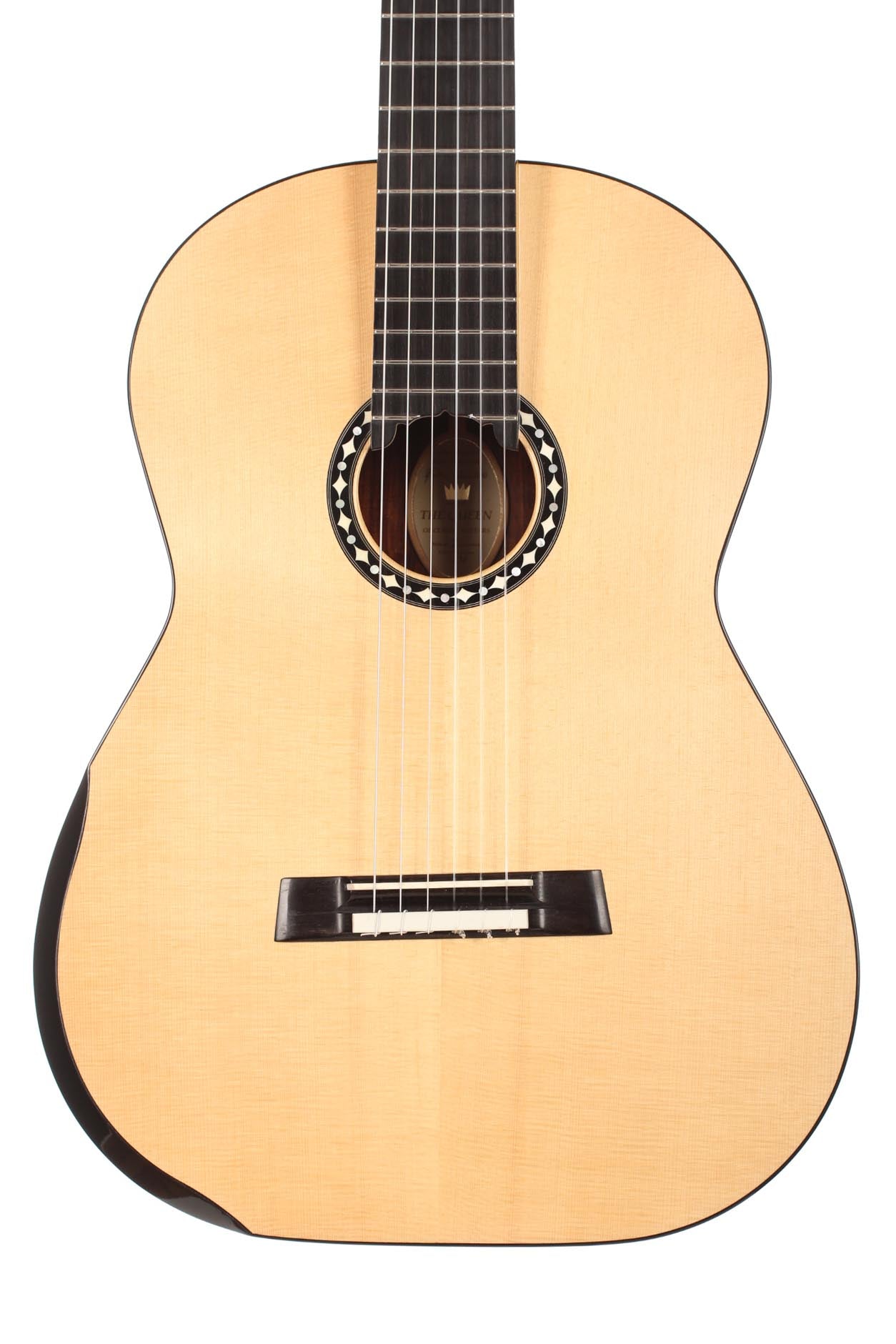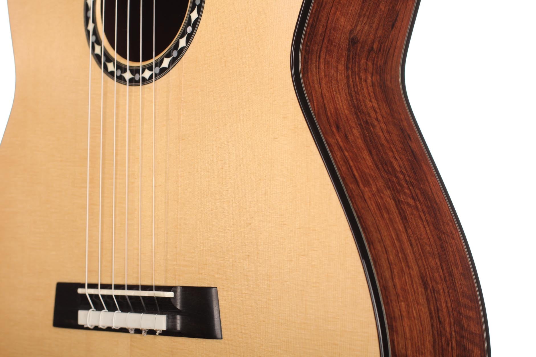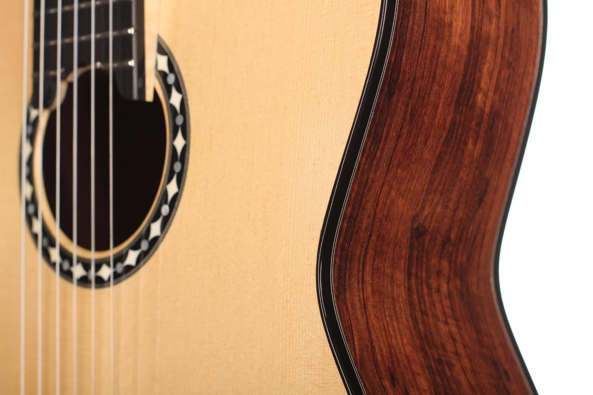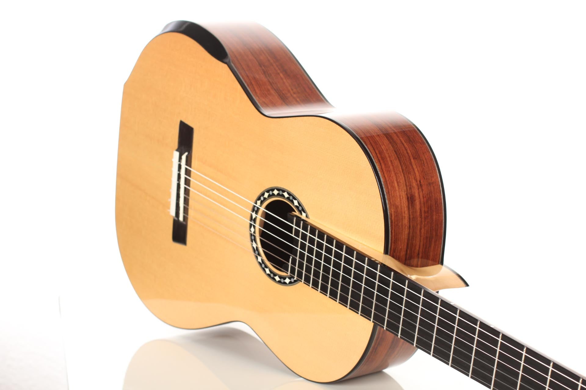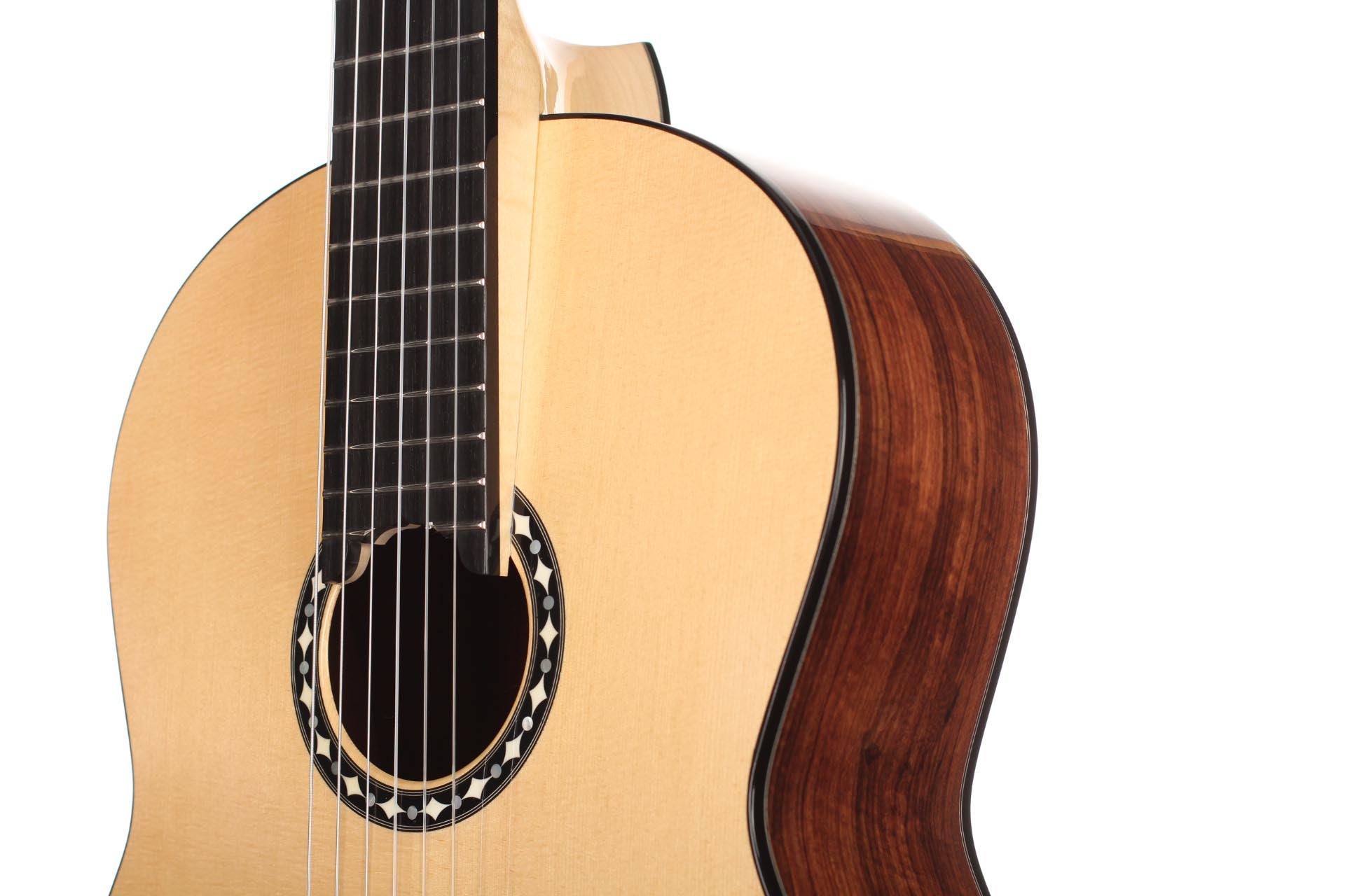 Die klassische Gitarre mit ihren weichen Nylonsaiten und ihrem charakteristischen Timbre ist zum Symbol der Kammermusik, der spanischen Tradition und des Konzertrepertoires geworden. Ihre moderne Form prägte Antonio de Torres im 19. Jahrhundert, indem er den Standard für Korpus, Fächerbeleistung und die 65-Zentimeter-Mensur setzte, die bis heute verwendet werden. Instrumente dieser Kategorie eröffnen eine reiche Palette von den feinen romantischen Miniaturen Tárregas bis zu den majestätischen Konzerten Rodrigos. Hier finden Sie Gitarren, die historische Kontinuität bewahren und zugleich zu neuen Interpretationen anregen.Alle Produkte der Kollektion ansehen -
