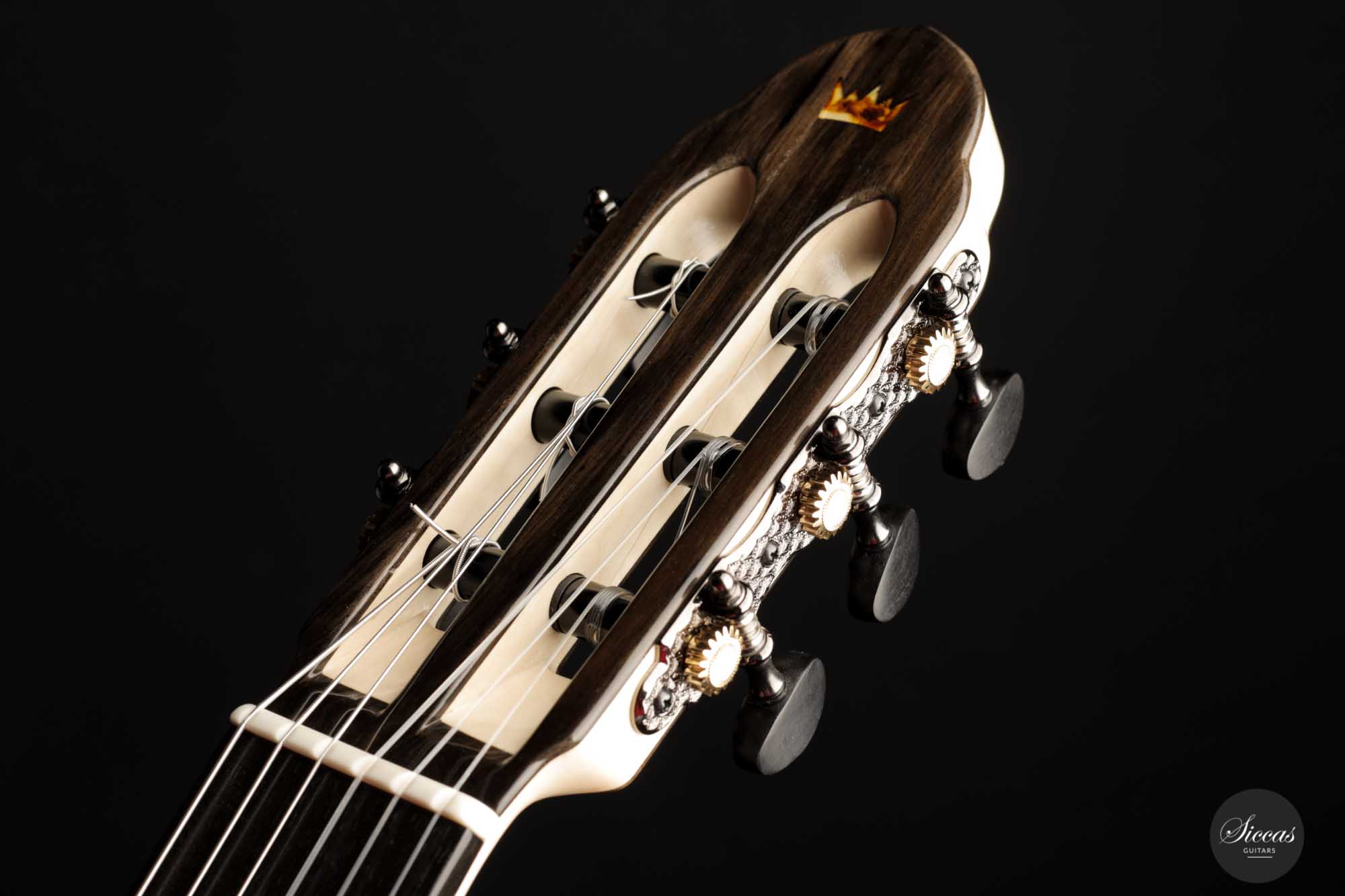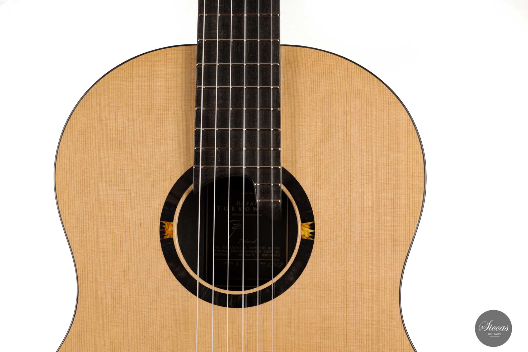 With its 64cm scale, thin and ergonomic neck shape, elevated fingerboard, and extremely responsive top, this guitar is remarkably easy to play. It is ideal for guitarists looking for a modern guitar offering premium playability and bold, powerful sound. Not only is its tone rich and steady, but it also develops abundant yet controlled overtones. Moreover, the first e-string offers a consistent sustain up to the highest notes. This feeling of consistency and evenness is to be found all around the registers of this guitar.