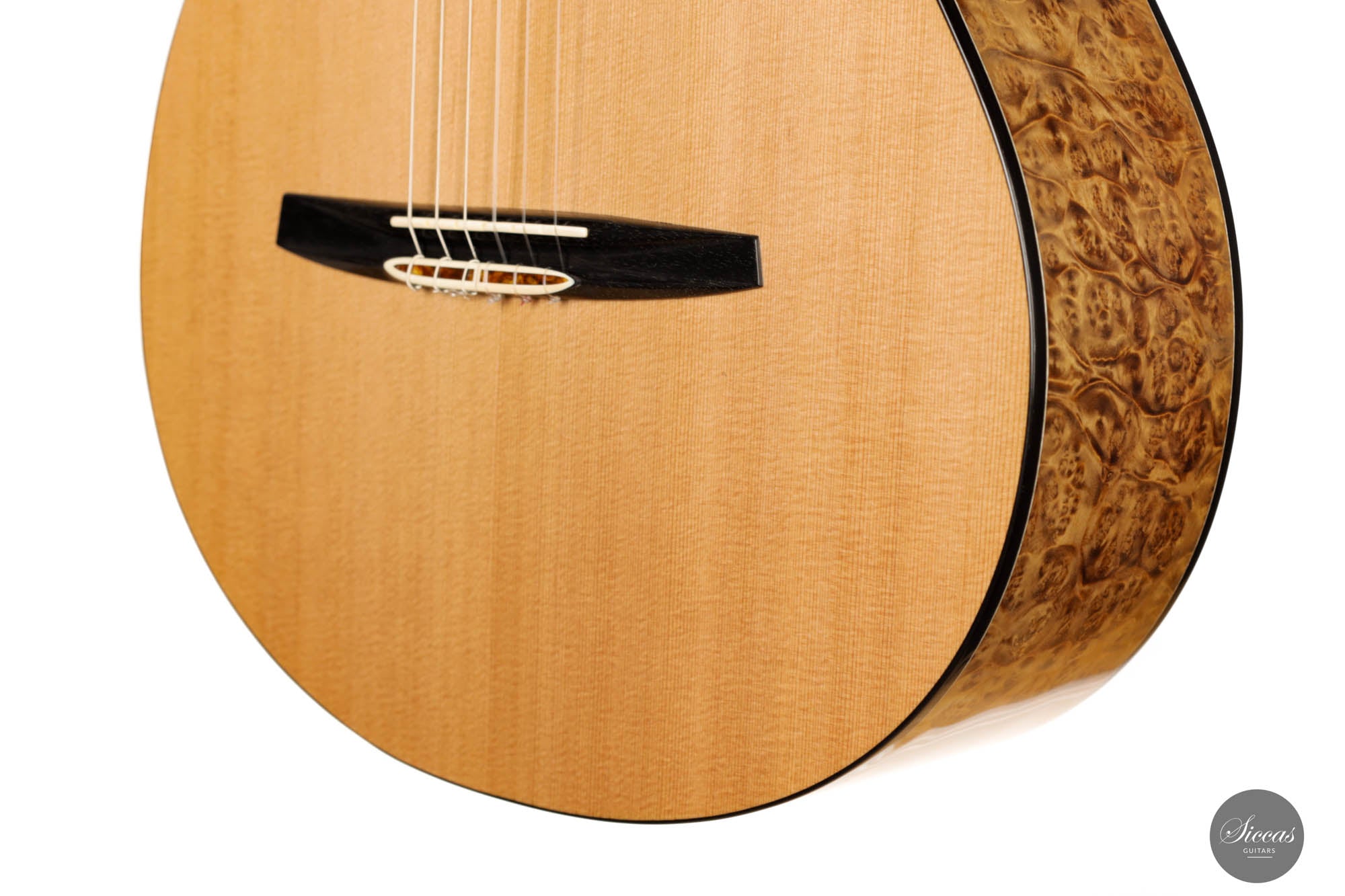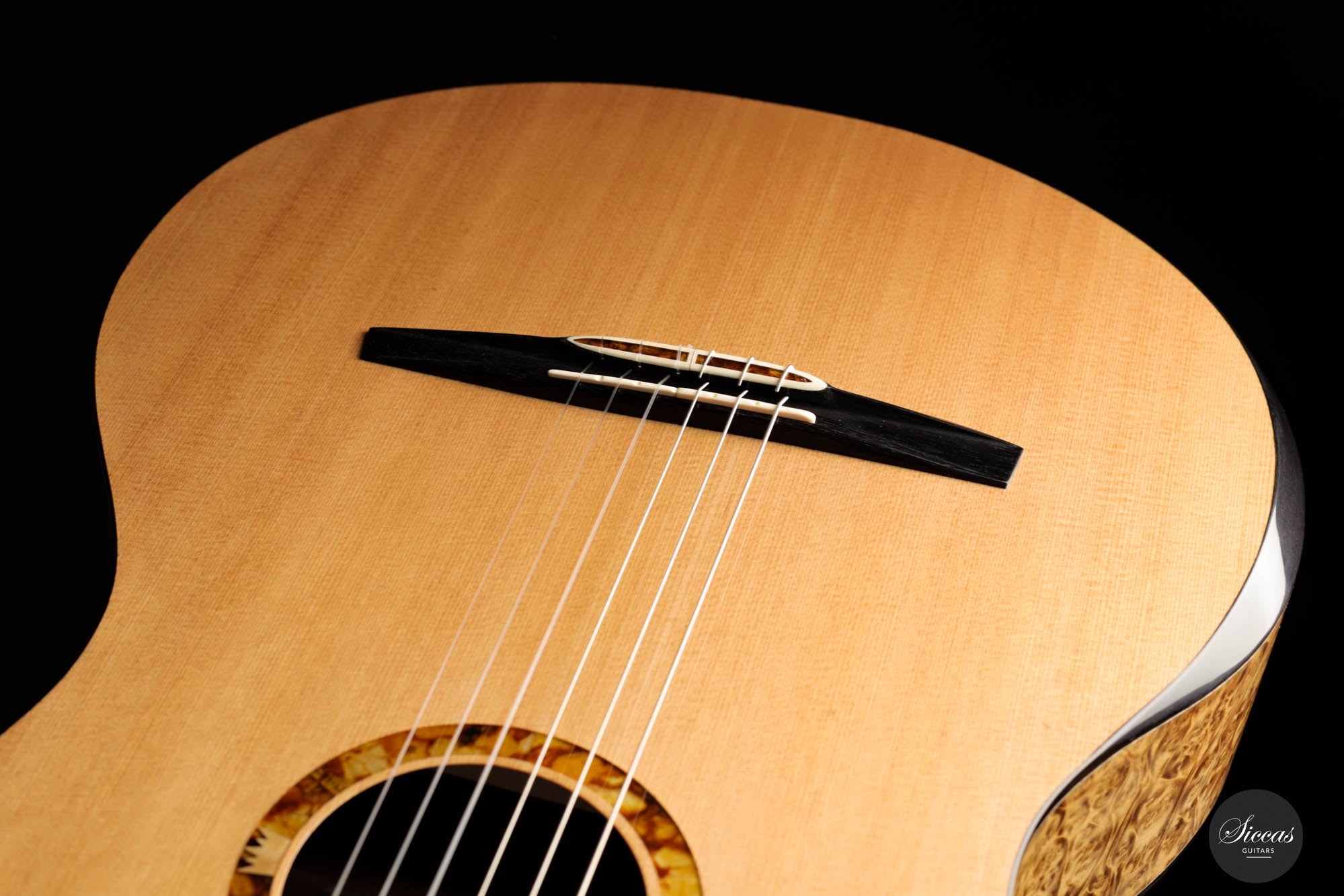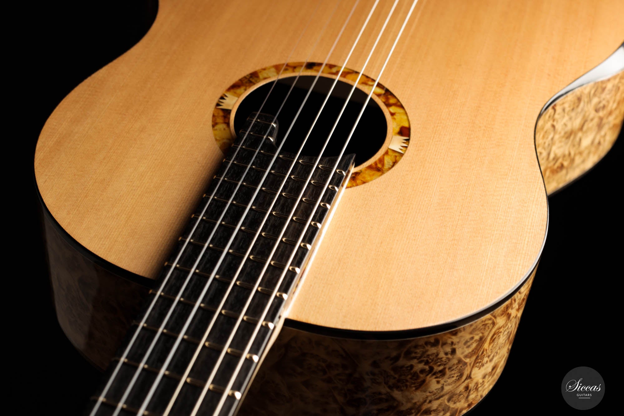 Die klassische Gitarre mit ihren weichen Nylonsaiten und ihrem charakteristischen Timbre ist zum Symbol der Kammermusik, der spanischen Tradition und des Konzertrepertoires geworden. Ihre moderne Form prägte Antonio de Torres im 19. Jahrhundert, indem er den Standard für Korpus, Fächerbeleistung und die 65-Zentimeter-Mensur setzte, die bis heute verwendet werden. Instrumente dieser Kategorie eröffnen eine reiche Palette von den feinen romantischen Miniaturen Tárregas bis zu den majestätischen Konzerten Rodrigos. Hier finden Sie Gitarren, die historische Kontinuität bewahren und zugleich zu neuen Interpretationen anregen.