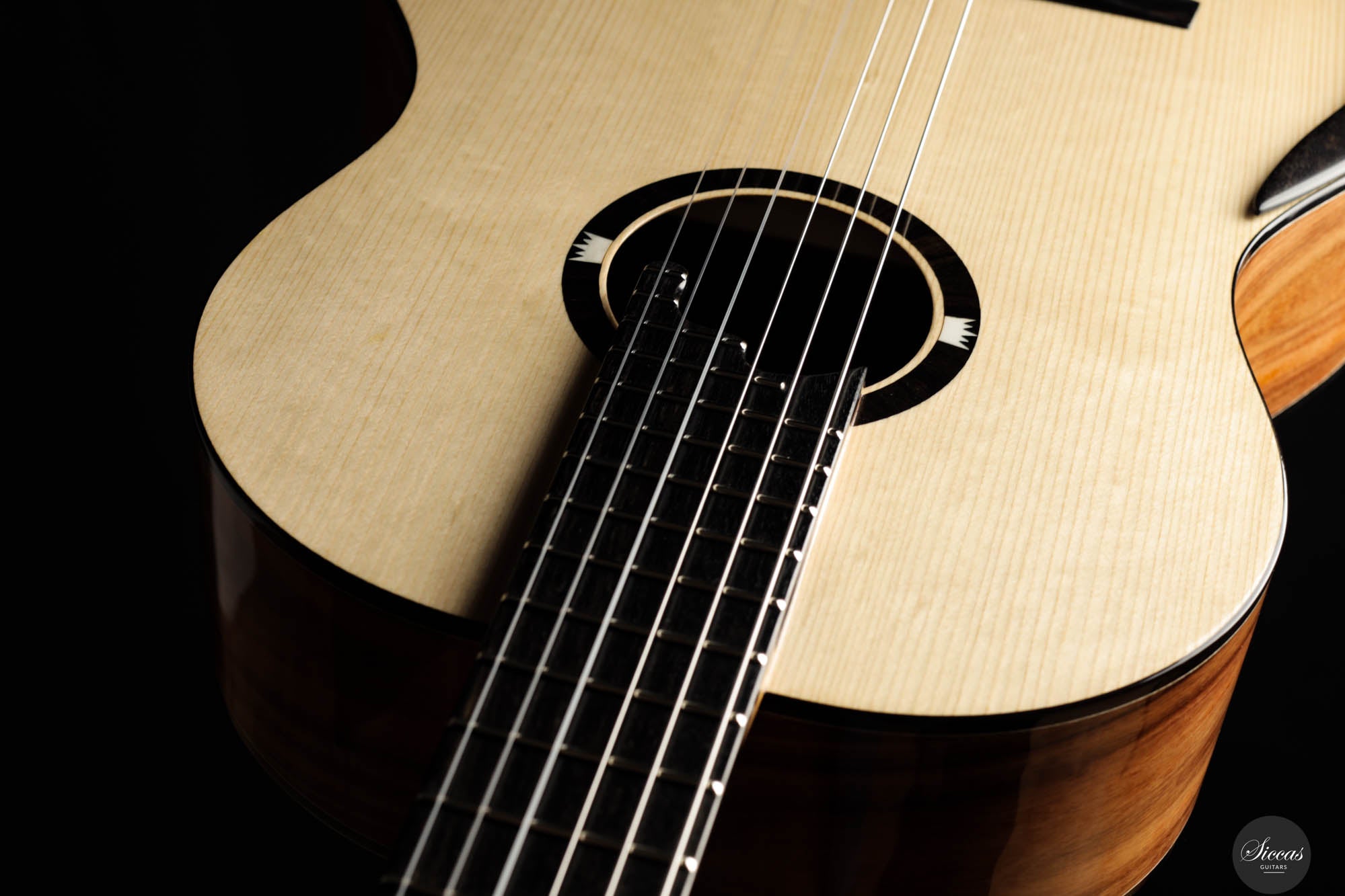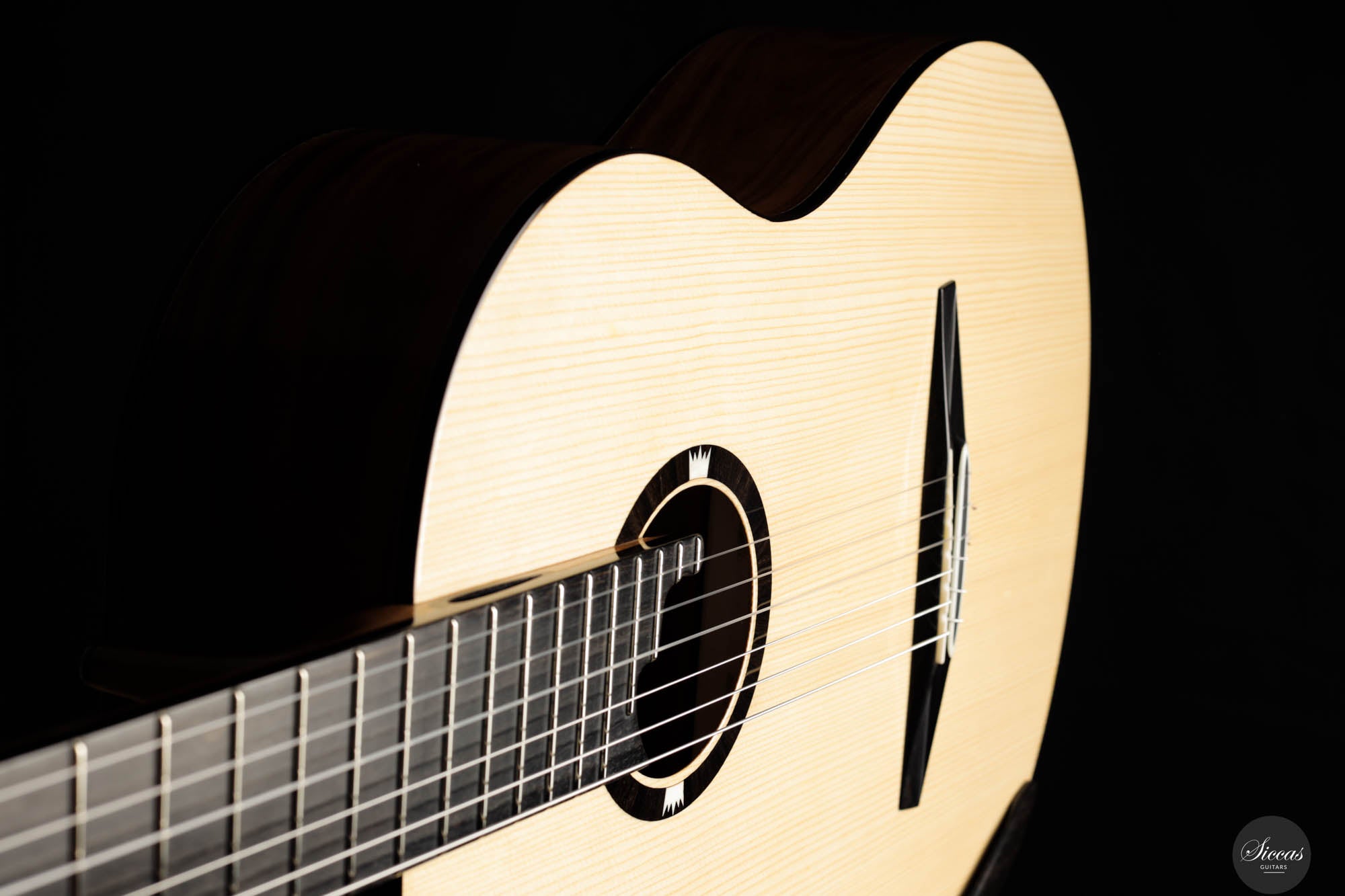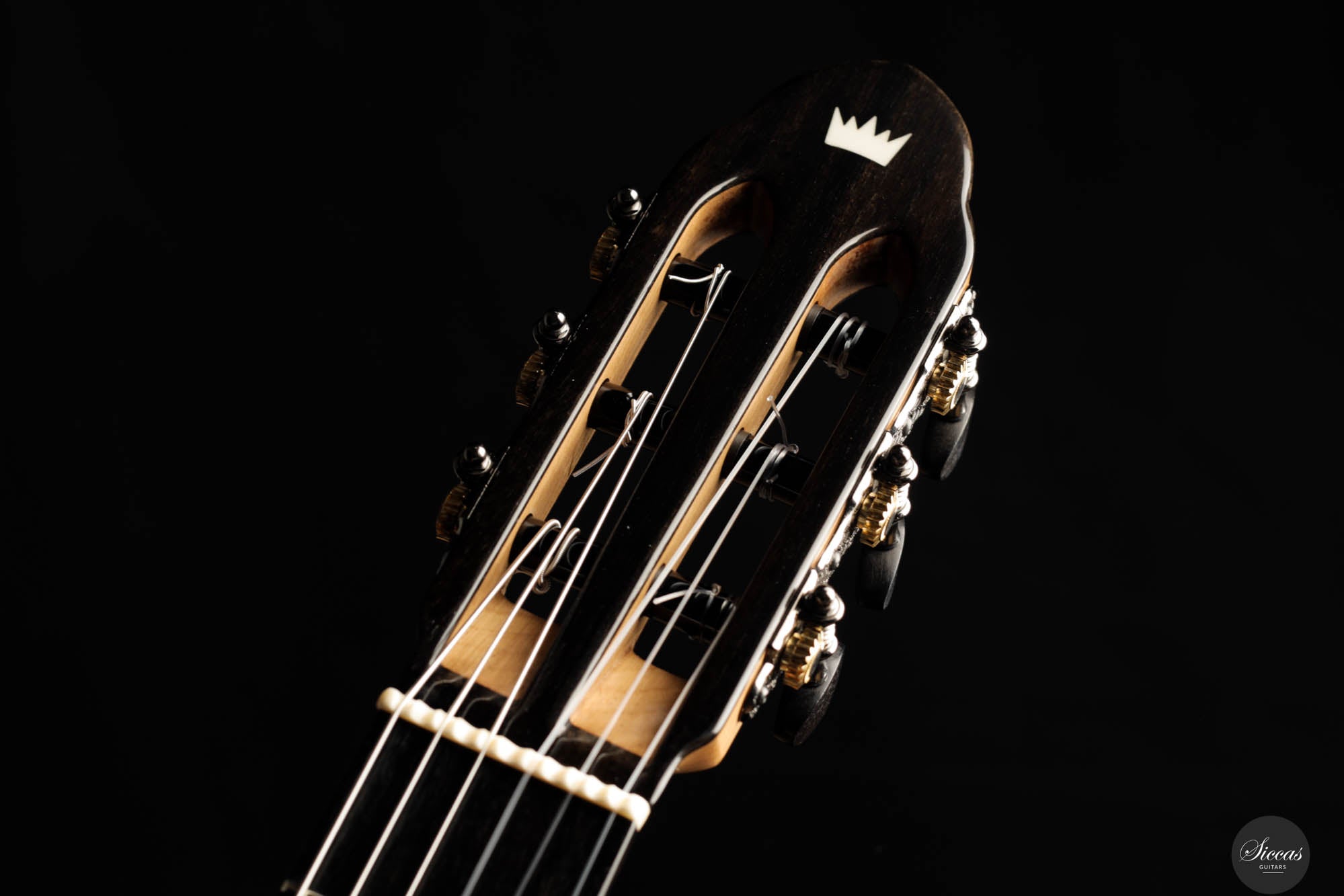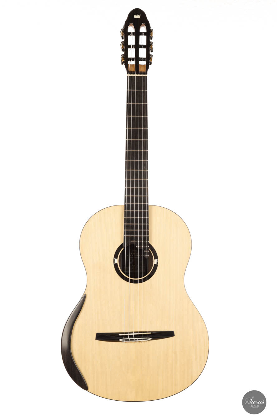 Die klassische Gitarre mit ihren weichen Nylonsaiten und ihrem charakteristischen Timbre ist zum Symbol der Kammermusik, der spanischen Tradition und des Konzertrepertoires geworden. Ihre moderne Form prägte Antonio de Torres im 19. Jahrhundert, indem er den Standard für Korpus, Fächerbeleistung und die 65-Zentimeter-Mensur setzte, die bis heute verwendet werden. Instrumente dieser Kategorie eröffnen eine reiche Palette von den feinen romantischen Miniaturen Tárregas bis zu den majestätischen Konzerten Rodrigos. Hier finden Sie Gitarren, die historische Kontinuität bewahren und zugleich zu neuen Interpretationen anregen.